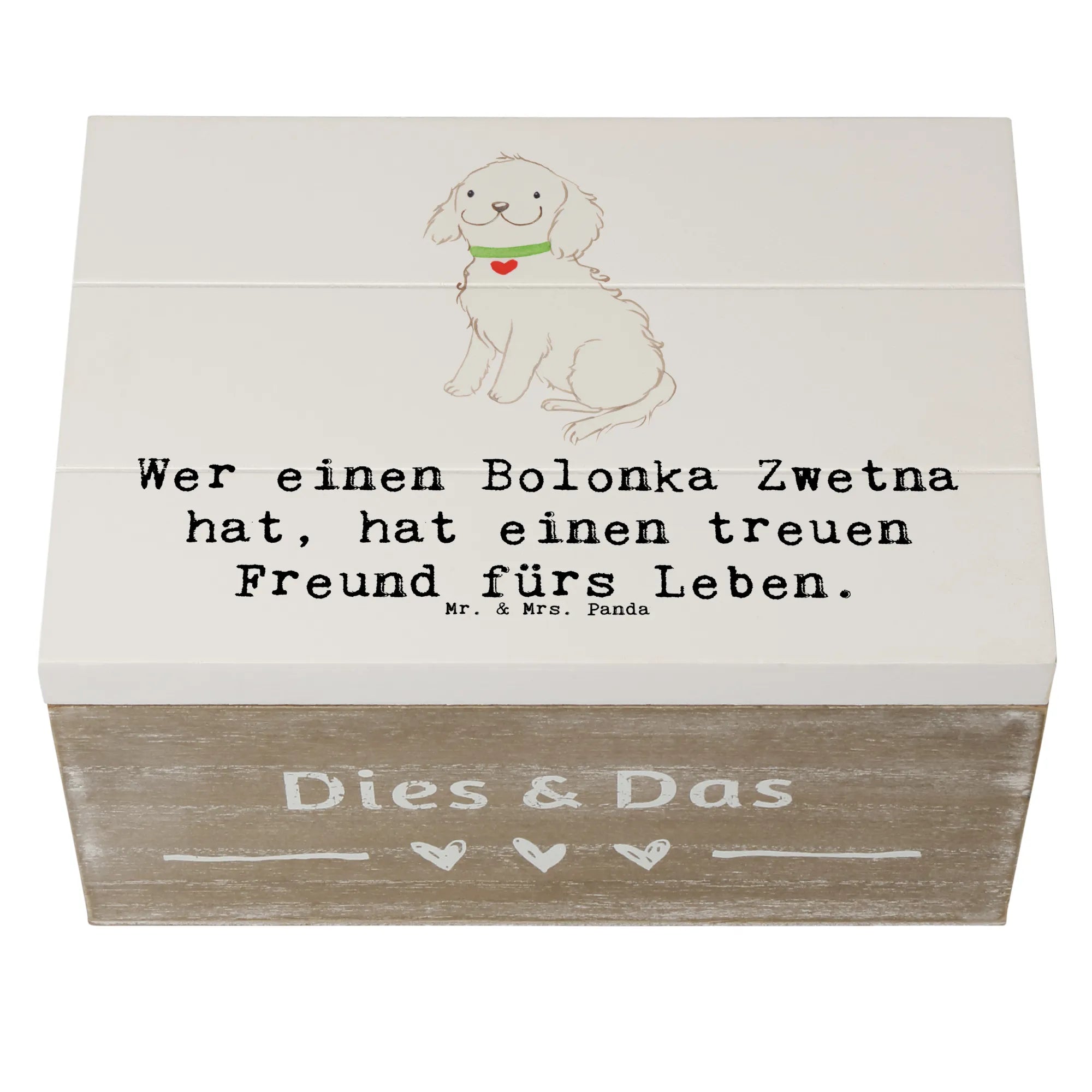 Diese entzückende Erinnerungskiste, die mit dem Slogan „Wer einen Bolonka Zwetna hat, hat einen treuen Freund fürs Leben“ verziert ist, bietet nicht nur einen schönen Blickfang, sondern auch einen praktischen Stauraum für all deine persönlichen Schätze. Ob Erinnerungsstücke aus der Kindheit, Fotos oder kleine Geschenke – hier ist alles bestens aufgehoben!