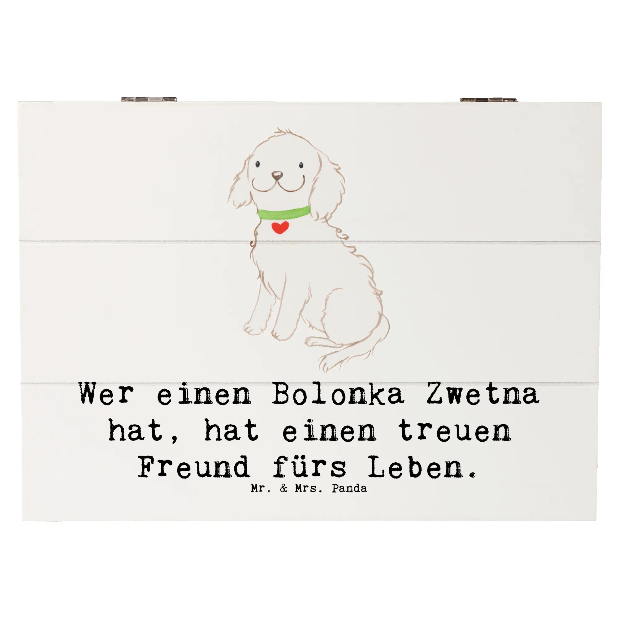 Die wunderschöne Holzkiste von Mr. & Mrs. Panda ist nicht nur ein praktischer Aufbewahrungsort, sondern ein echtes Schmuckstück für jeden Hundefan! Mit ihrem liebevoll gestalteten Motiv des Bolonka Zwetna und dem charmanten Spruch 'Wer einen Bolonka Zwetna hat, hat einen treuen Freund fürs Leben.' bringt sie Freude in jedes Zuhause. Diese Erinnerungskiste ist ideal, um kostbare Schätze wie Fotos, kleine Andenken oder auch die Erinnerungen an die Kindheit sicher und stilvoll aufzubewahren.