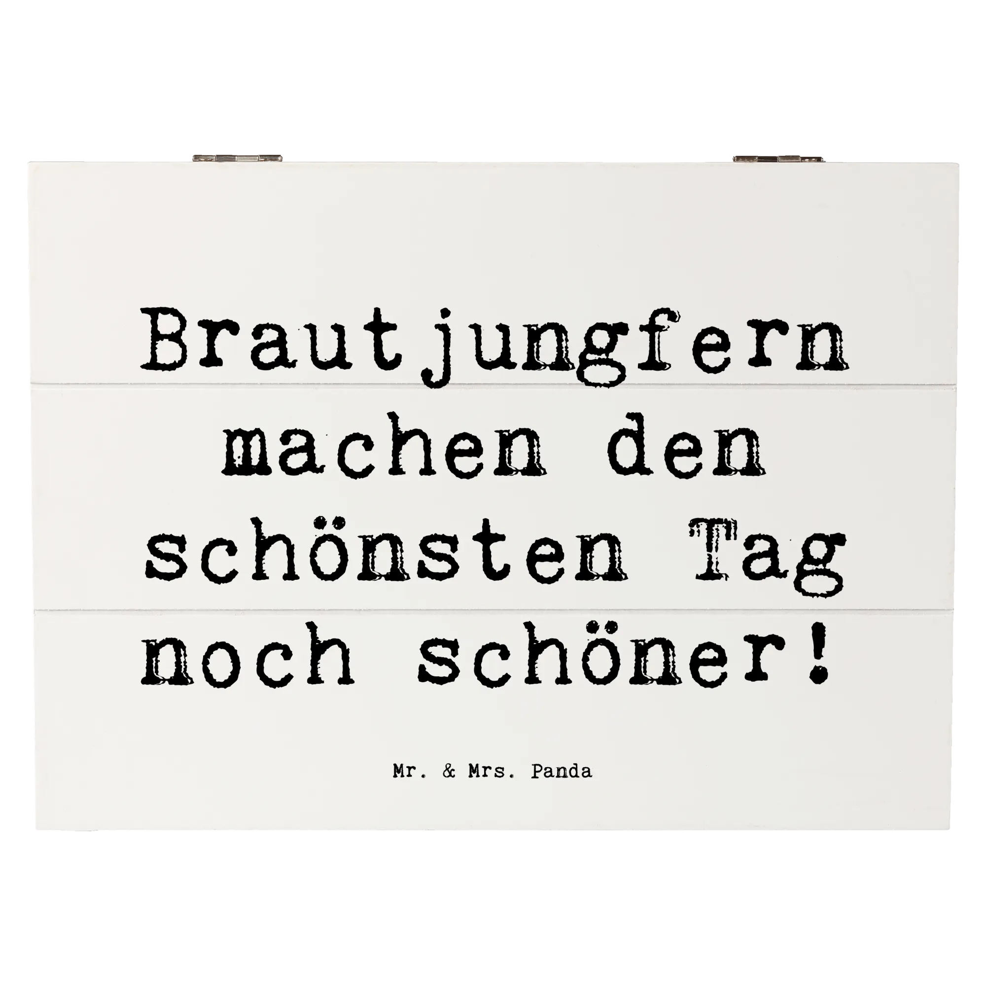 Die wunderschöne Holzkiste von Mr. & Mrs. Panda ist der perfekte Begleiter für all jene besonderen Momente im Leben. Ob als Aufbewahrungsbox für die Erinnerungen an den schönsten Tag deines Lebens oder als originelle Geschenkbox für deine Brautjungfern – diese Erinnerungskiste aus robuster Holzfaser ist nicht nur stabil, sondern auch ein echter Hingucker! Mit dem liebevollen Spruch 'Brautjungfern machen den schönsten Tag noch schöner!' wird diese Kiste zum idealen Geschenk für alle, die an Hochzeiten beteiligt sind.