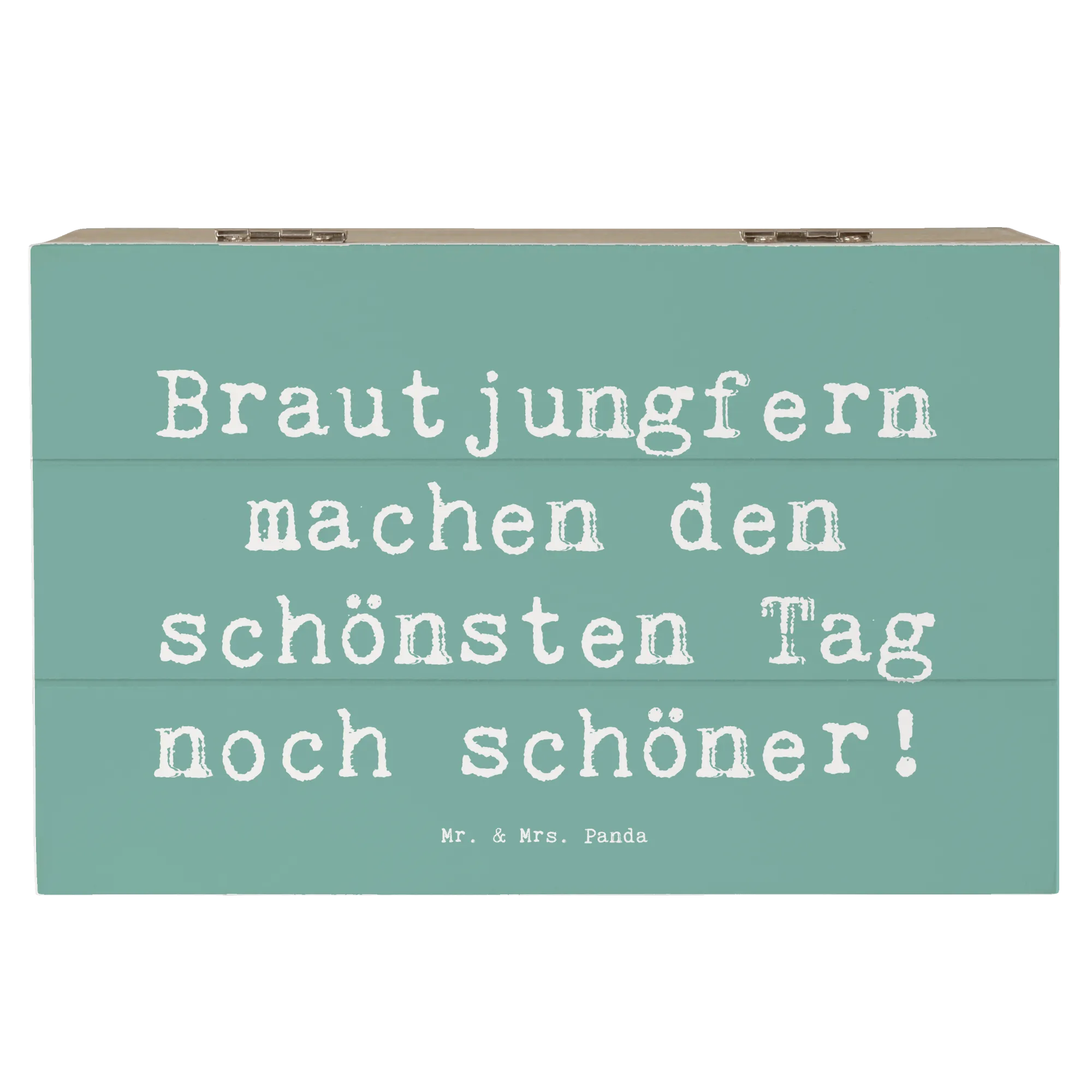 Die wunderschöne Holzkiste von Mr. & Mrs. Panda ist das perfekte Geschenk für Deine Brautjungfern und eine bezaubernde Ergänzung zu jedem Hochzeitsfest. Mit dem liebevollen Spruch 'Brautjungfern machen den schönsten Tag noch schöner!' ist diese Erinnerungskiste nicht nur ein praktischer Aufbewahrungsort, sondern auch ein ganz persönliches Stück der Hochzeit, das für immer bleibt.