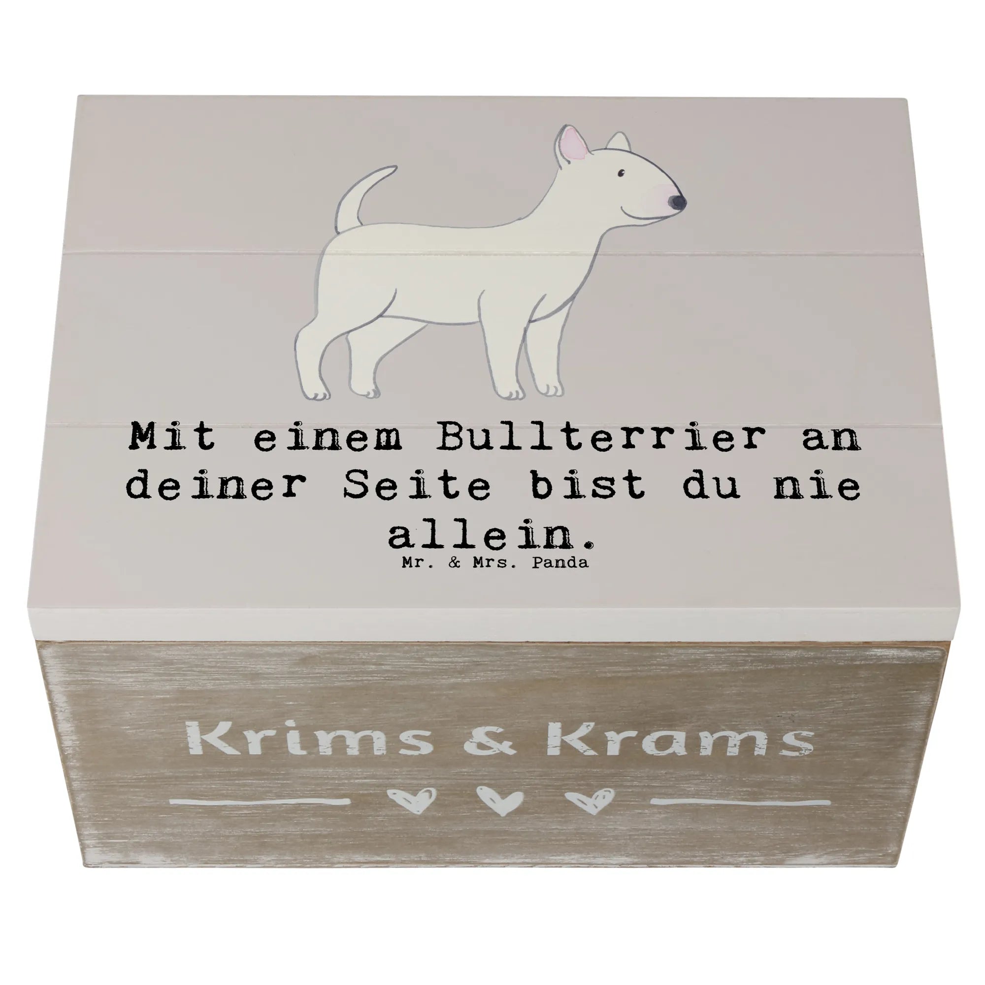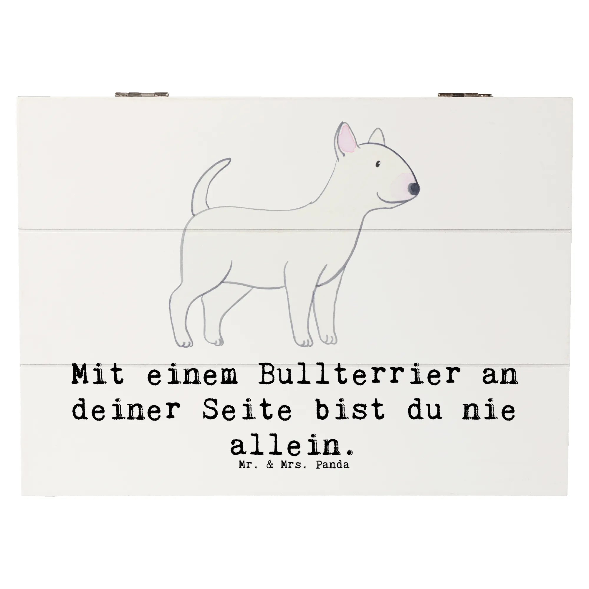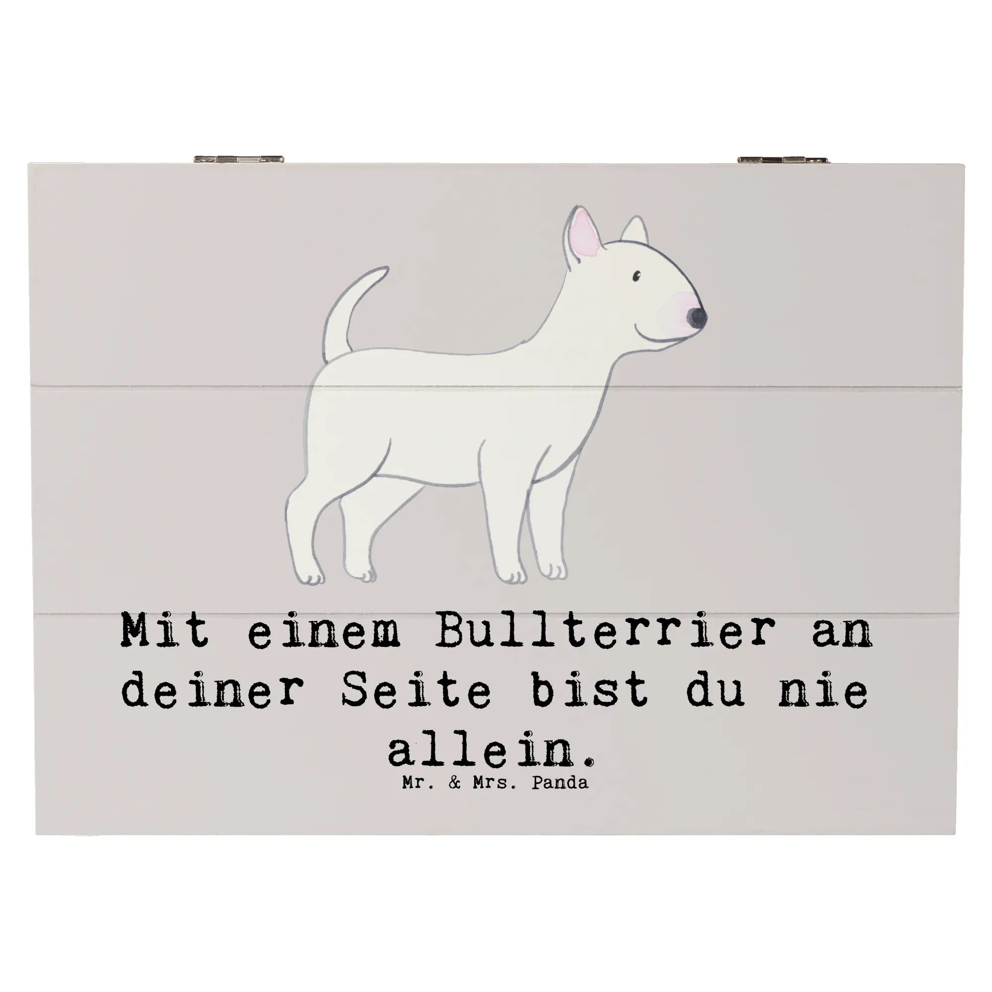Die wunderschöne Holzkiste von Mr. & Mrs. Panda ist das perfekte Geschenk für alle Hundeliebhaber, besonders für Fans des Bullterriers! Mit dem charmanten Motiv "Mit einem Bullterrier an deiner Seite bist du nie allein." wird jede Kiste zu einem besonderen Aufbewahrungsort für deine liebsten Erinnerungen.