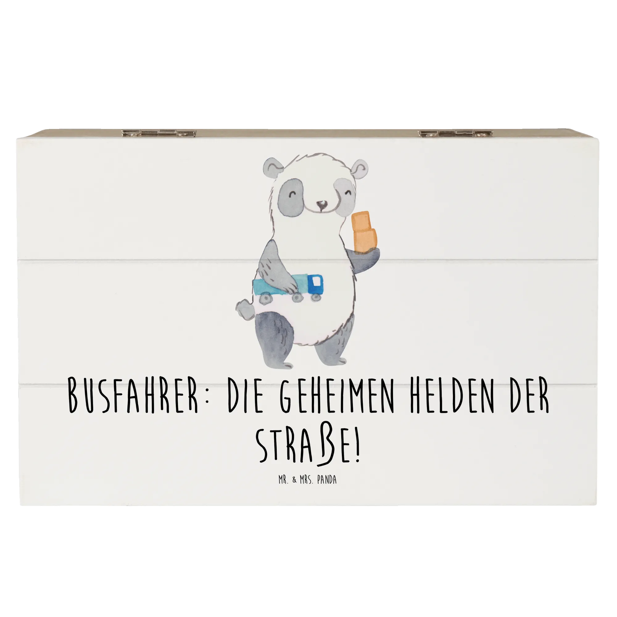 Eine wunderschöne Holzkiste von Mr. & Mrs. Panda – das perfekte Danke-Geschenk für alle Busfahrer, die täglich für uns unterwegs sind. Diese liebevoll designte Holzkiste trägt den Schriftzug „Busfahrer: Die geheimen Helden der Straße!“ und gehört zur warmen "Danke"-Kollektion. Sie kombiniert praktischen Nutzen mit emotionalem Charakter und ist ideal als Geschenkbox, Erinnerungskiste oder Schatztruhe.