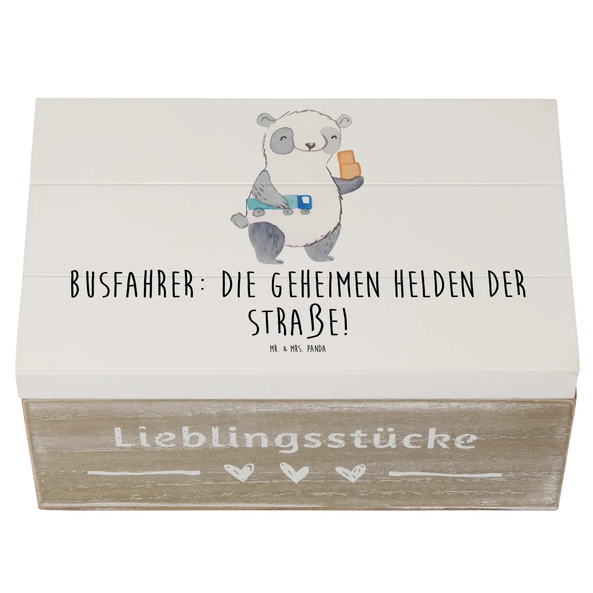 Die wunderschöne Holzkiste von Mr. & Mrs. Panda ist der perfekte Aufbewahrungsort für all Deine wertvollen Erinnerungen. Mit dem liebevollen Motiv "Busfahrer: Die geheimen Helden der Straße!" aus unserer Dankeschön-Kollektion ist diese Schatzkiste nicht nur praktisch, sondern auch ein echter Hingucker.