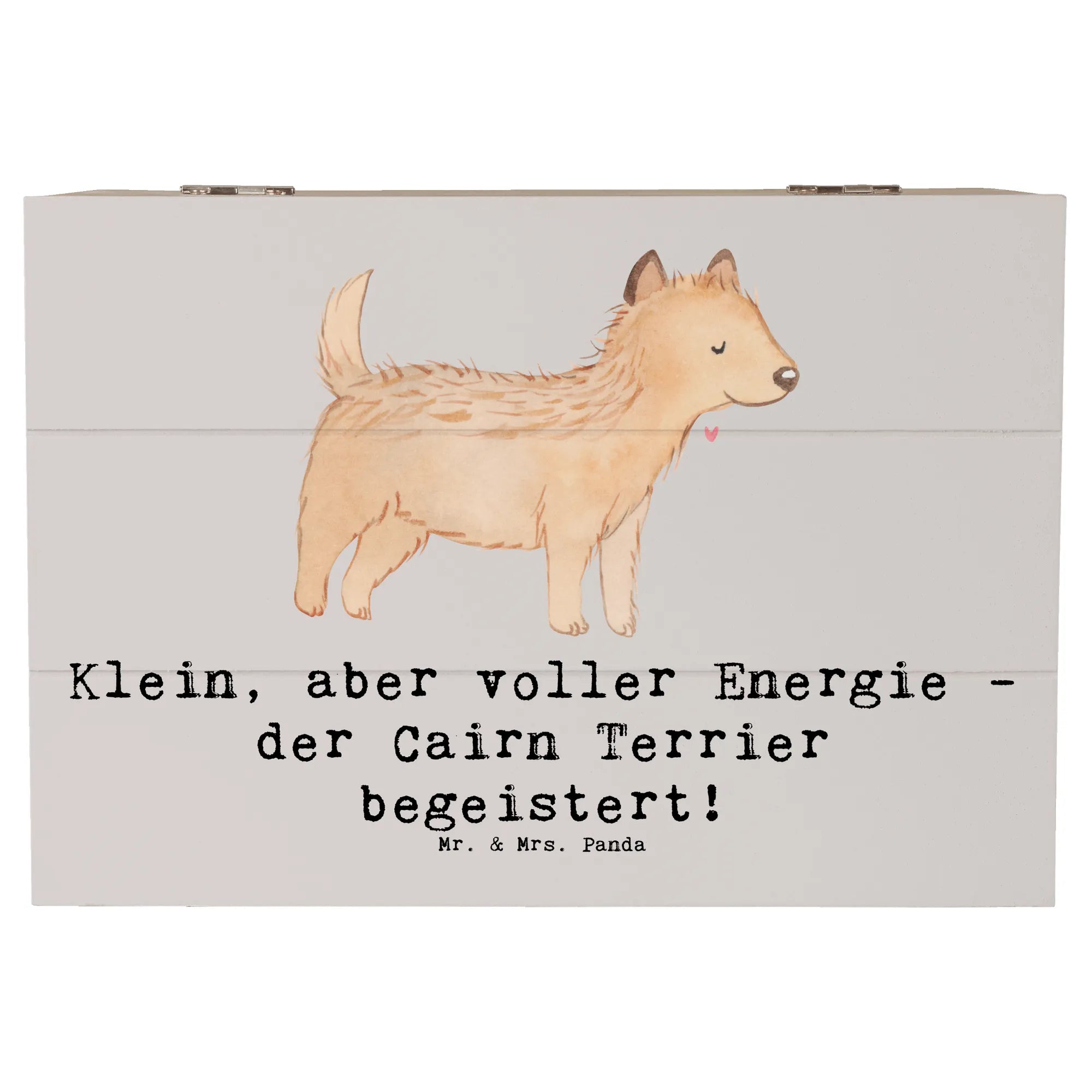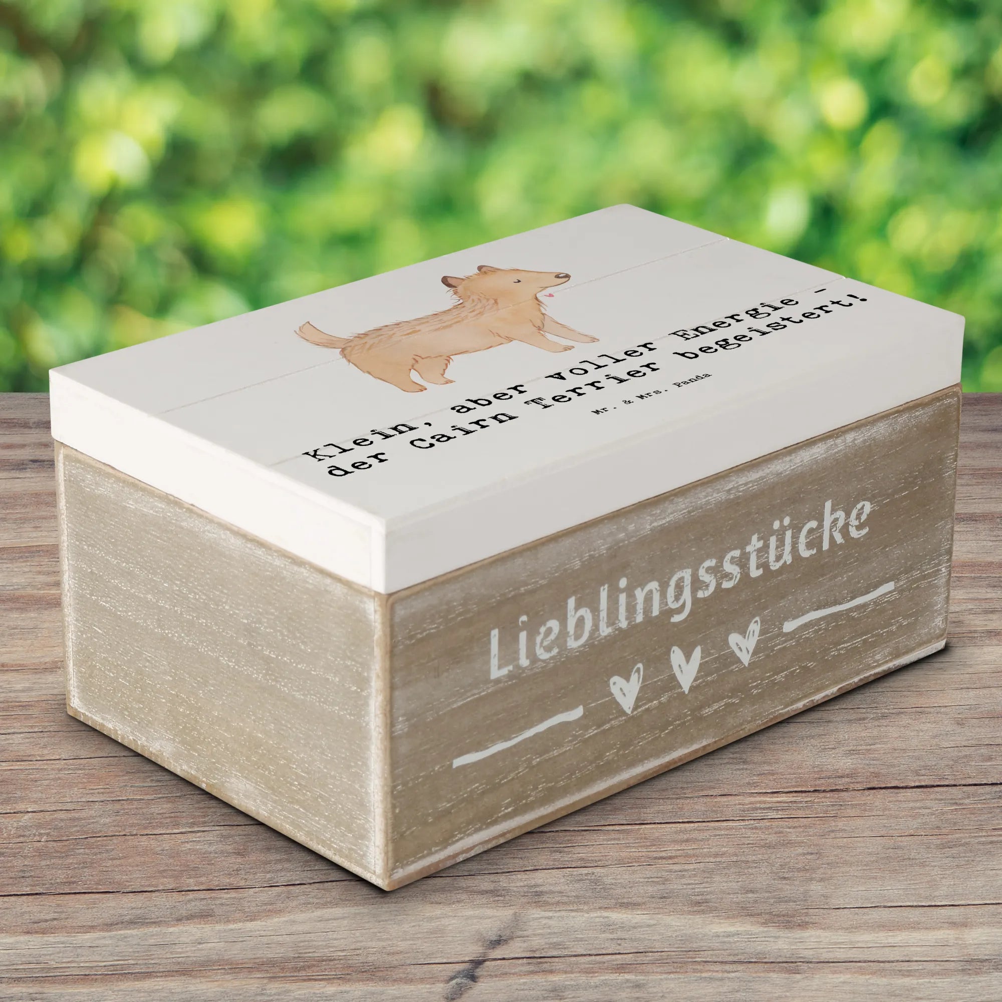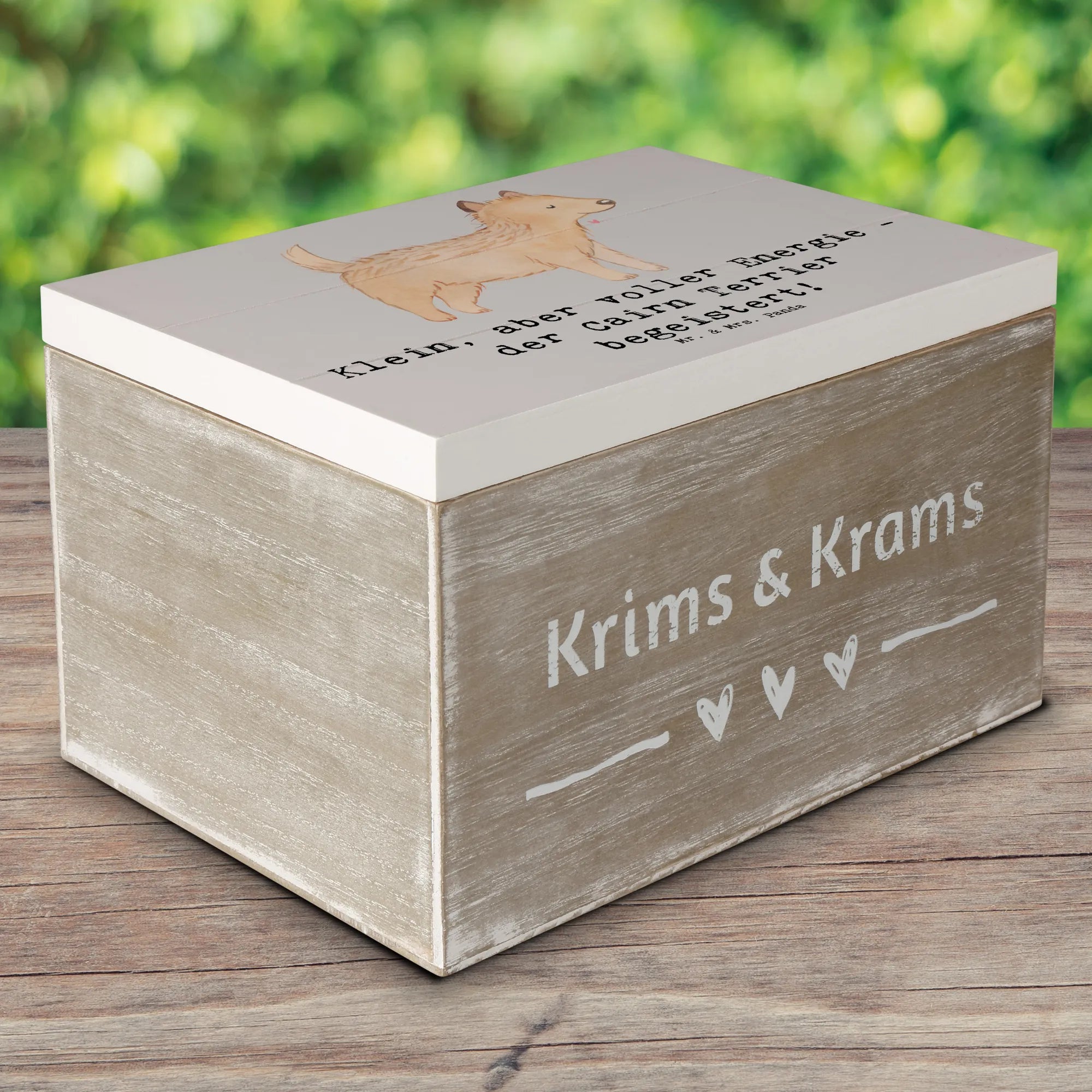 Die Kiste ziert das wunderschöne Motiv des Cairn Terriers, und der liebe Slogan "Klein, aber voller Energie - der Cairn Terrier begeistert!" wird dich immer wieder zum Schmunzeln bringen.