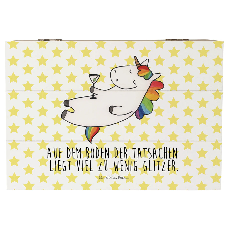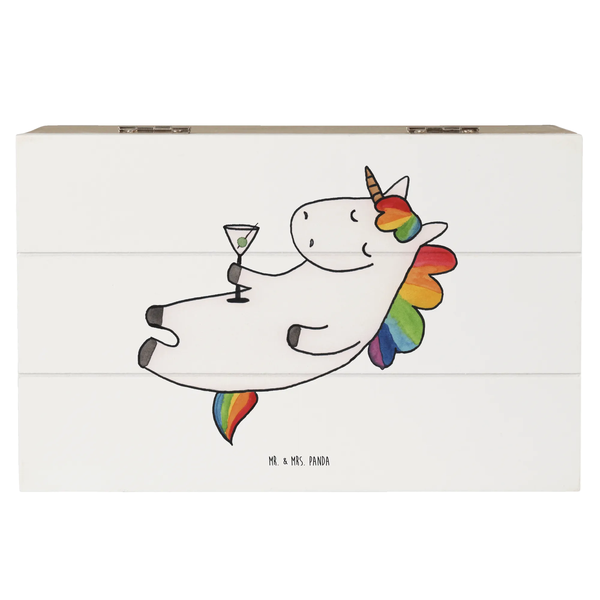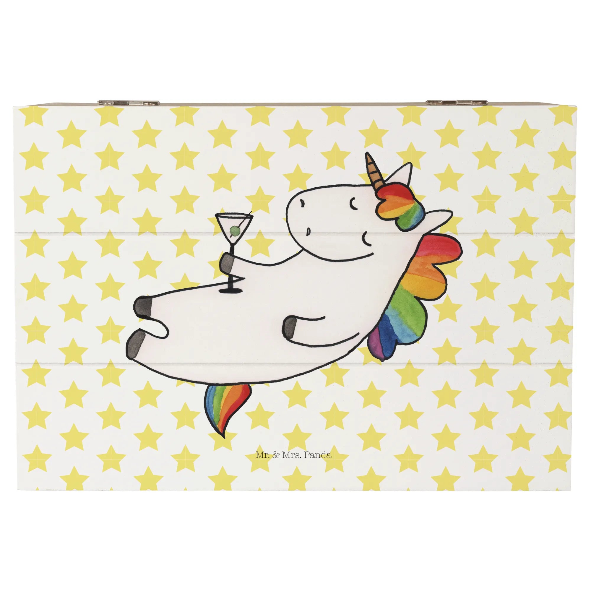 Die wunderschöne Holzkiste "Einhorn Cocktail" von Mr. & Mrs. Panda ist das perfekte Geschenk für deine beste Freundin, die Einhörner liebt und gerne feiert. Mit ihrem einzigartigen Motiv, das ein fröhliches Einhorn zeigt, das entspannt einen Cocktail hält, bringt diese Kiste jedem ein Lächeln ins Gesicht.