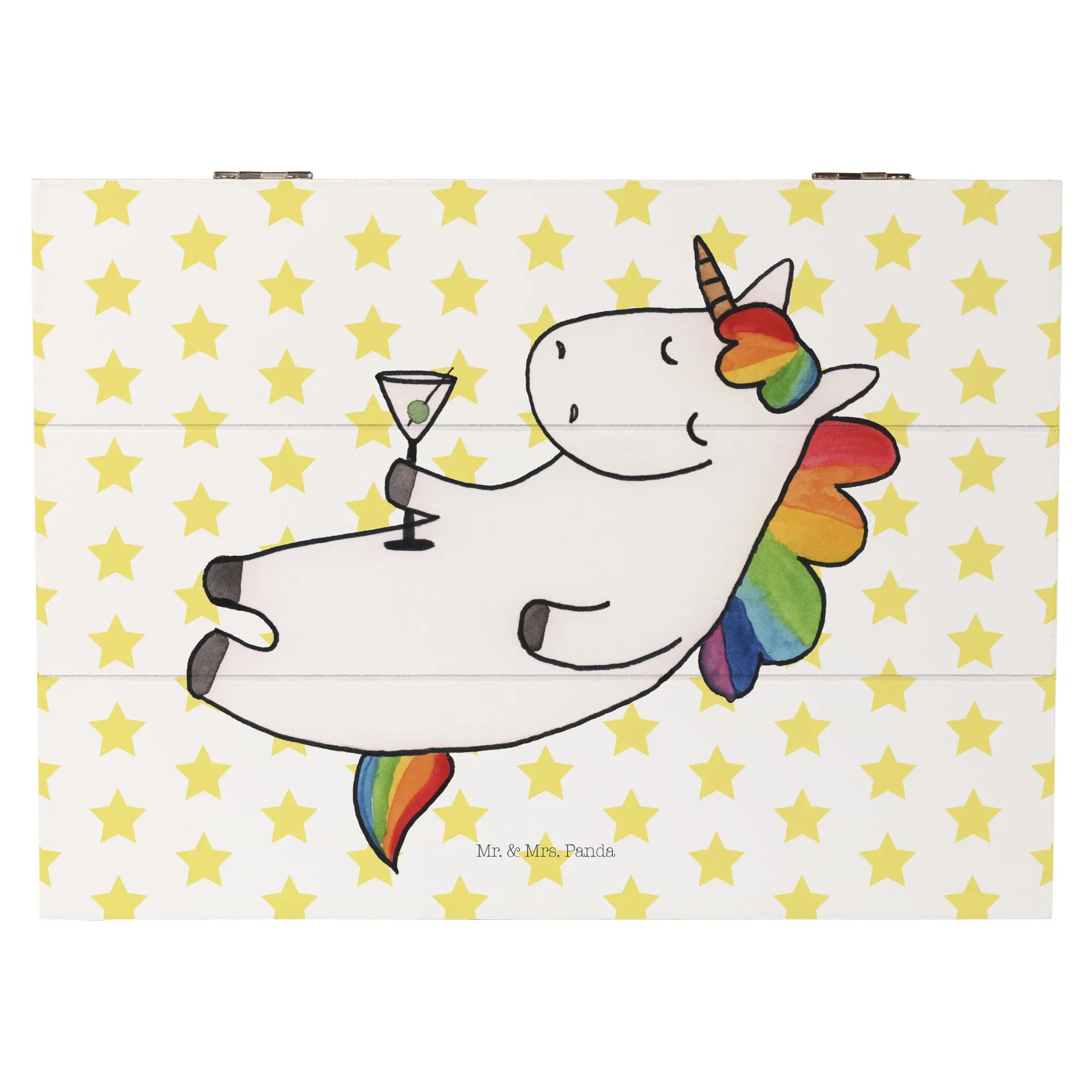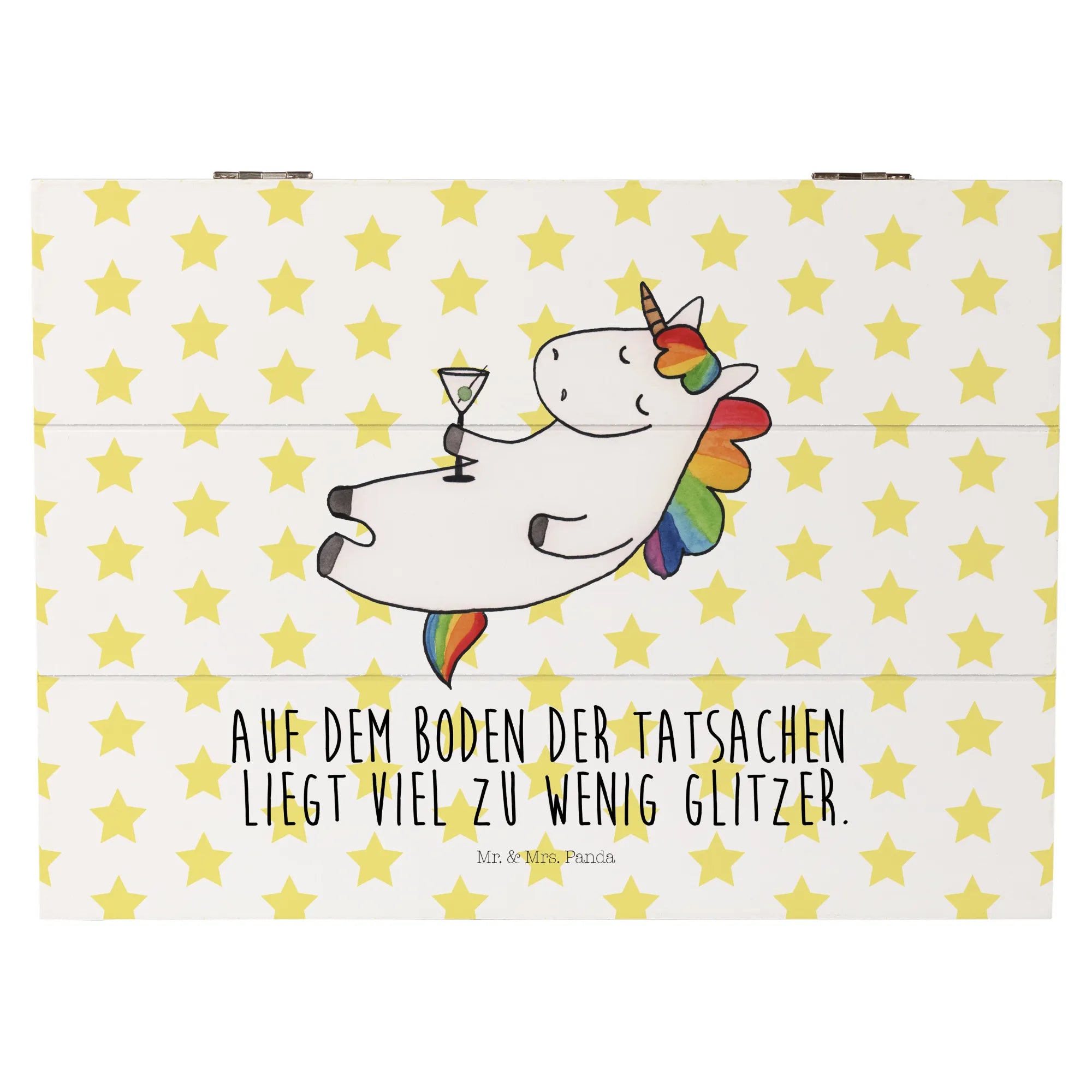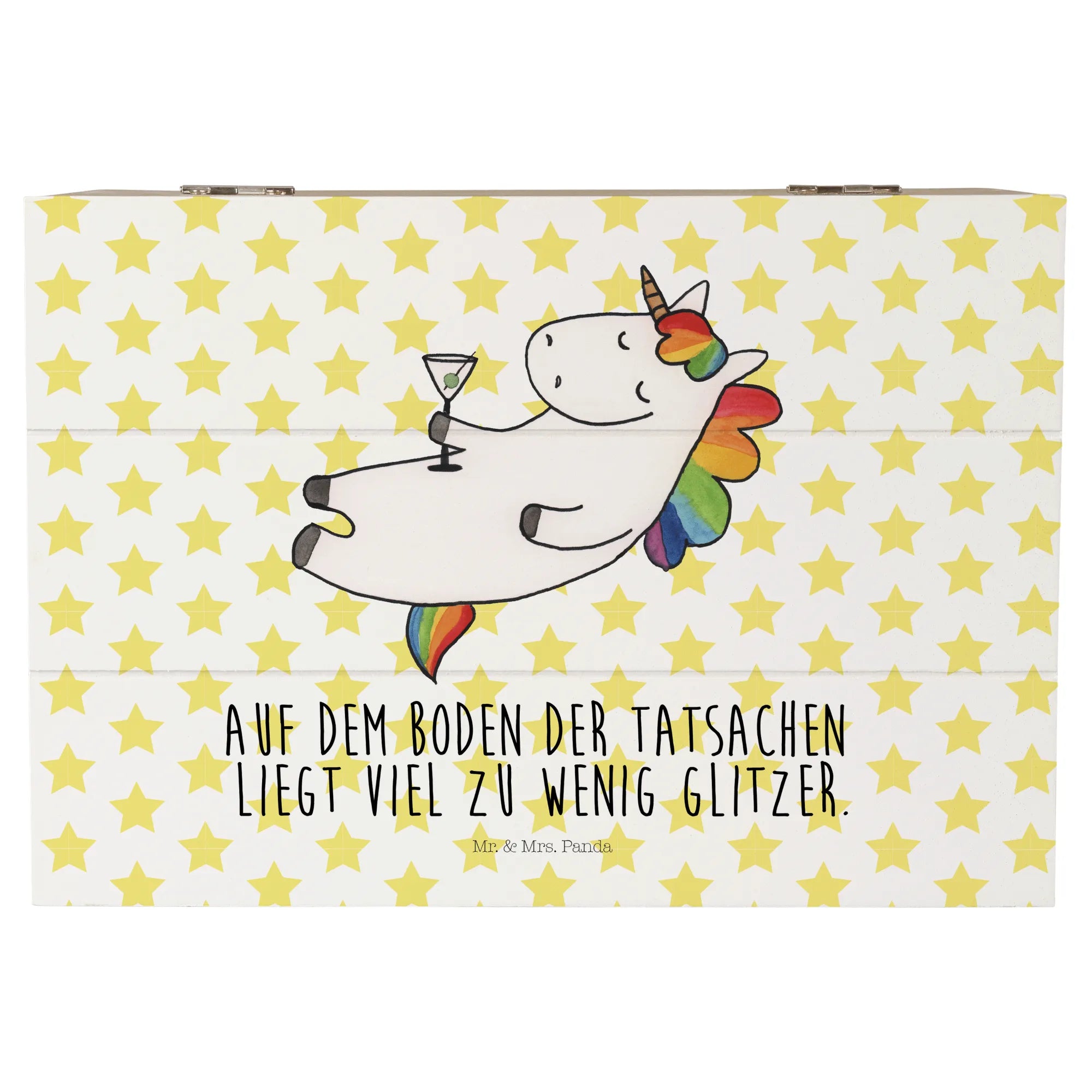 Die zauberhafte Holzkiste "Einhorn Cocktail" aus der Einhorn-Kollektion von Mr. & Mrs. Panda ist das ideale Geschenk für Einhorn-Liebhaber:innen und diejenigen, die das Leben mit etwas Glitzer bereichern möchten. Diese wunderschöne Kiste, gefertigt aus robuster Premium Hartfaser, bietet nicht nur ein fantastisches Design mit einem glücklichen Einhorn, das fröhlich einen Cocktail in der Hand hält, sondern auch jede Menge Platz für deine persönlichen Schätze. Egal, ob du sie als Erinnerungskiste für besondere Anlässe wie Geburtstage, Kommunion oder Konfirmation nutzen möchtest, oder einfach als stilvolle Dekokiste in deinem Zuhause – diese Kiste wird dir Freude bereiten!