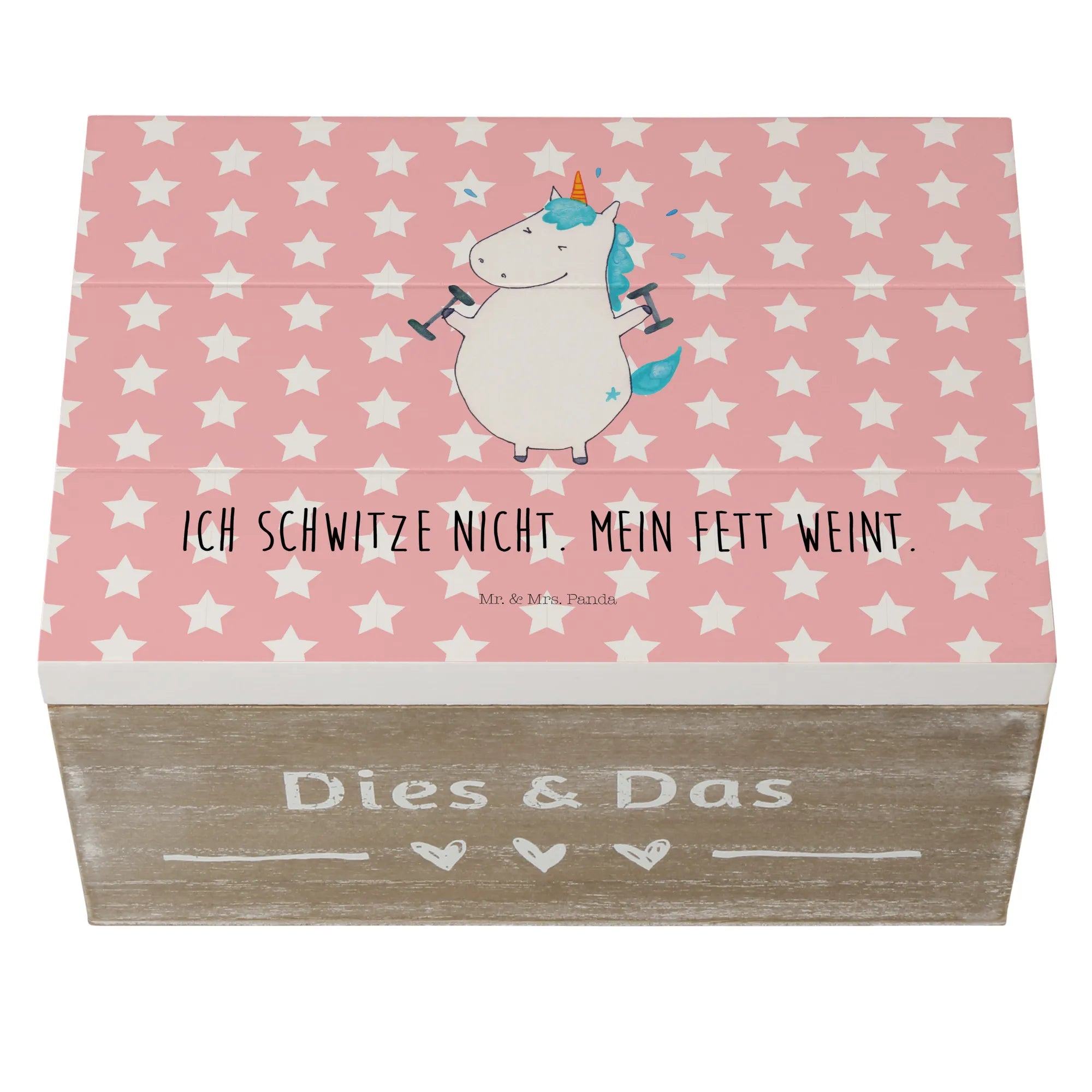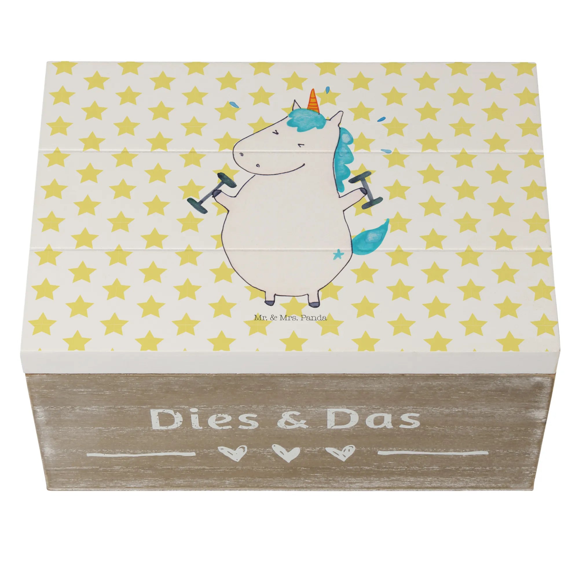 Entdecke die zauberhafte Holzkiste von Mr. & Mrs. Panda mit dem coolen Motiv "Einhorn Fitness"! Diese wunderschöne Kiste ist nicht nur ein Augenschmaus, sondern auch der perfekte Aufbewahrungsort für all deine wertvollen Schätze.