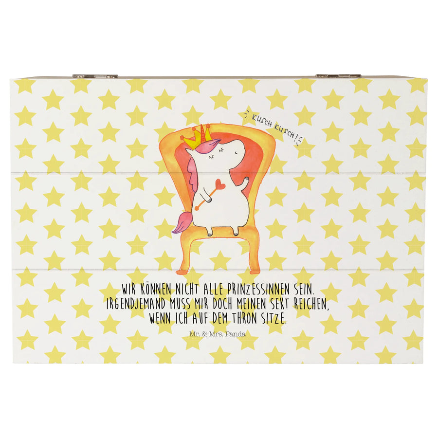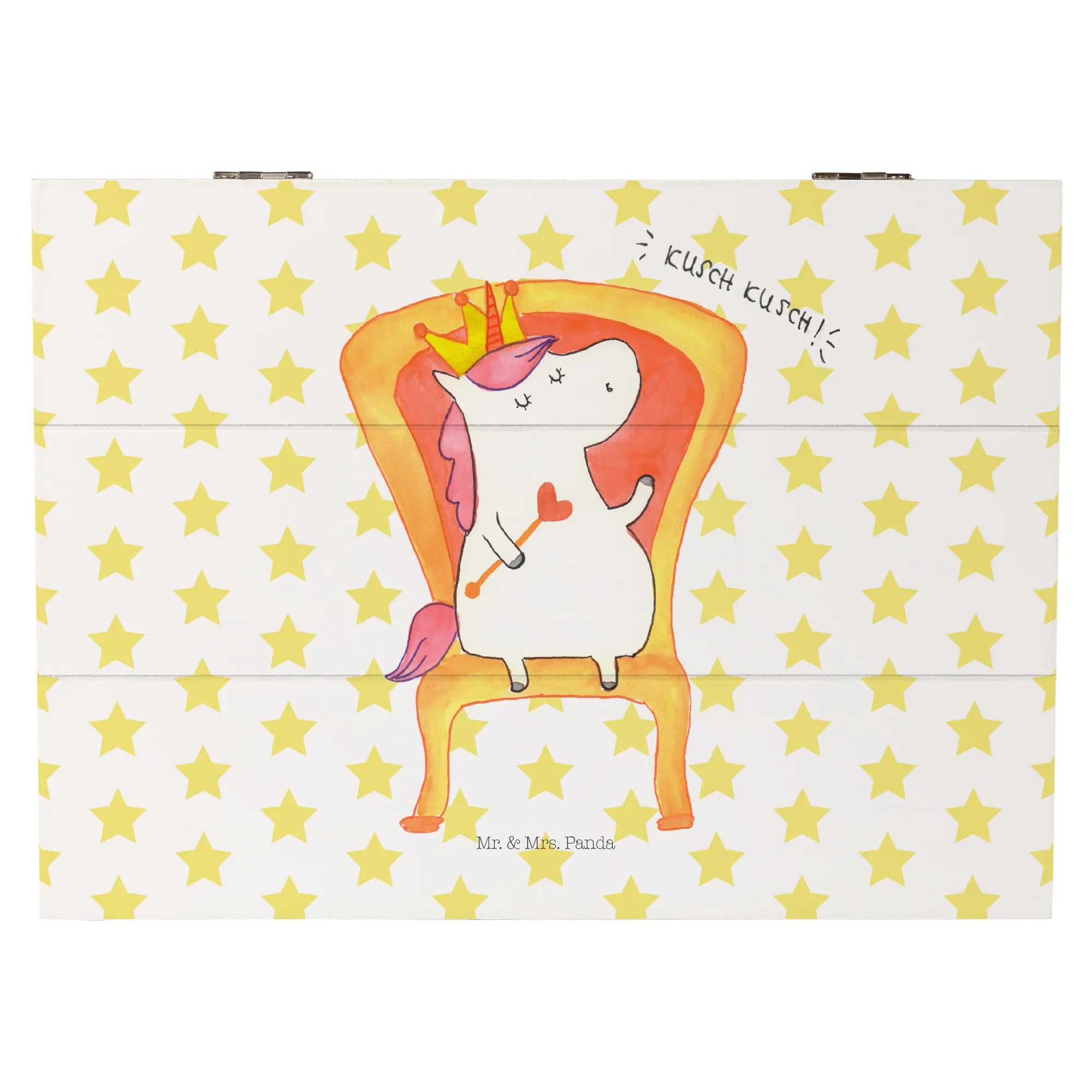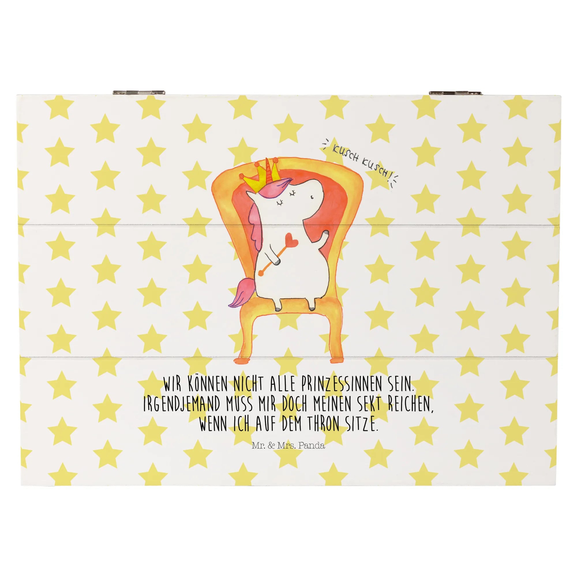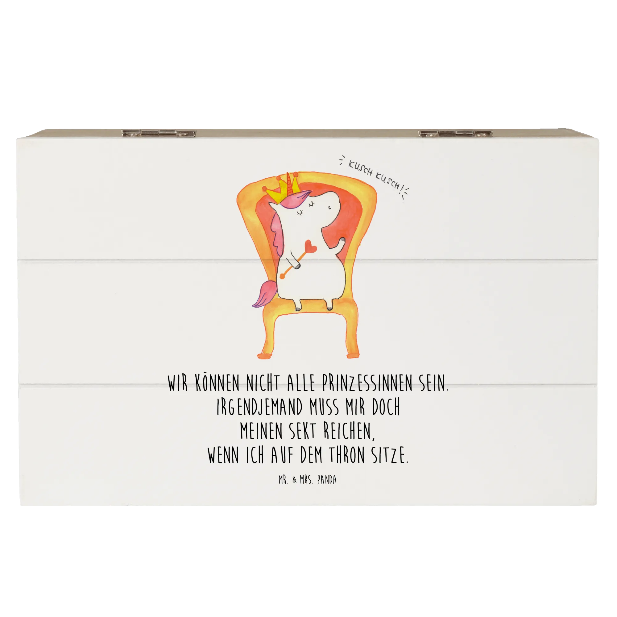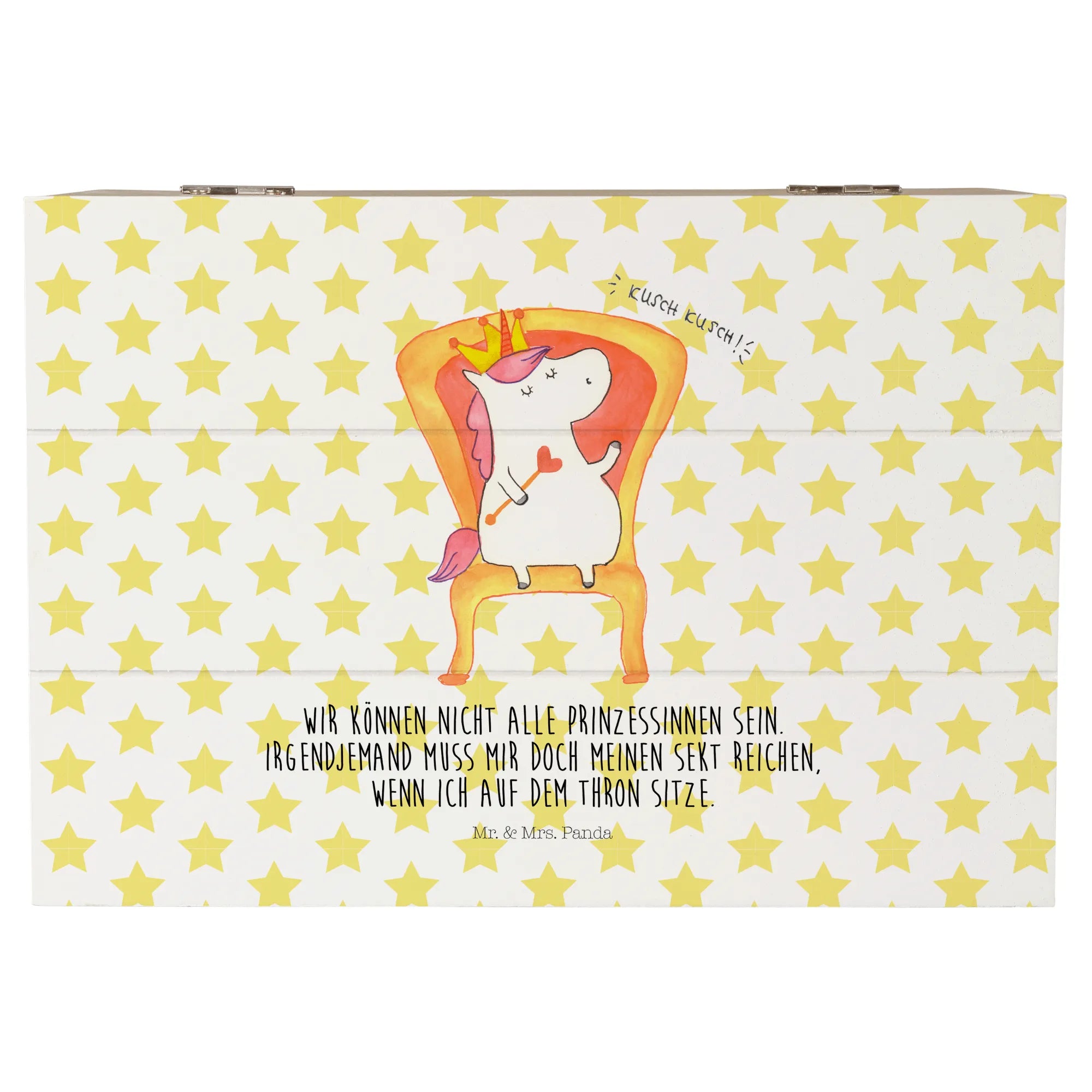 Die Holzkiste "Einhorn König" von Mr. & Mrs. Panda ist das perfekte Geschenk für alle Einhorn-Liebhaber! Mit ihrem bezaubernden Motiv eines süßen Einhorns, das mit einer Krone geschmückt auf einem Thron sitzt, bringt sie Magie in jeden Raum.