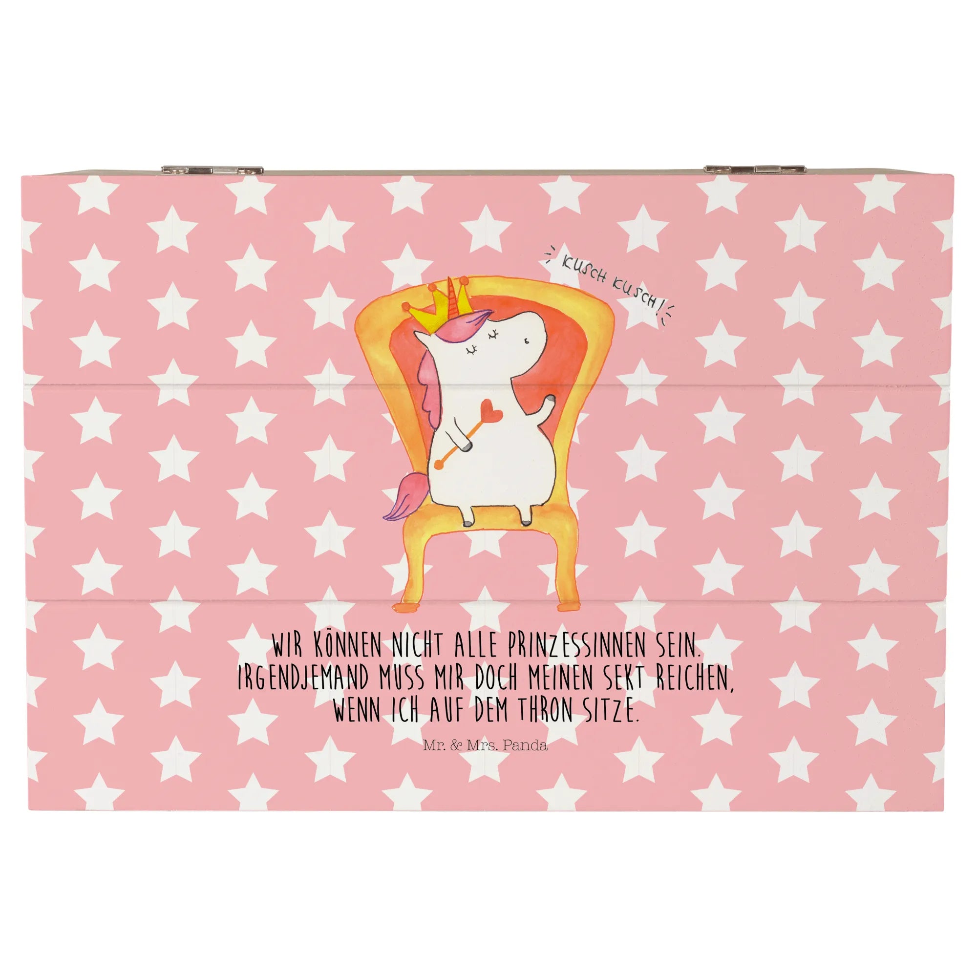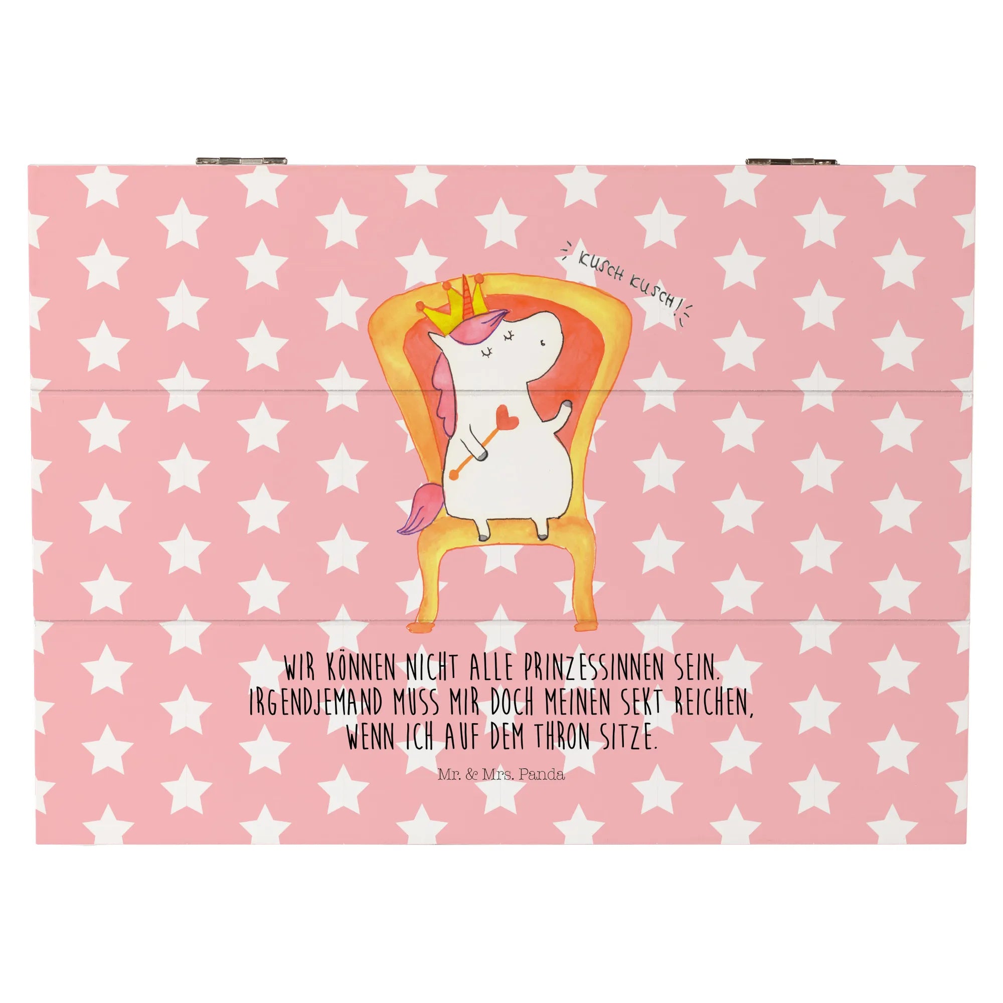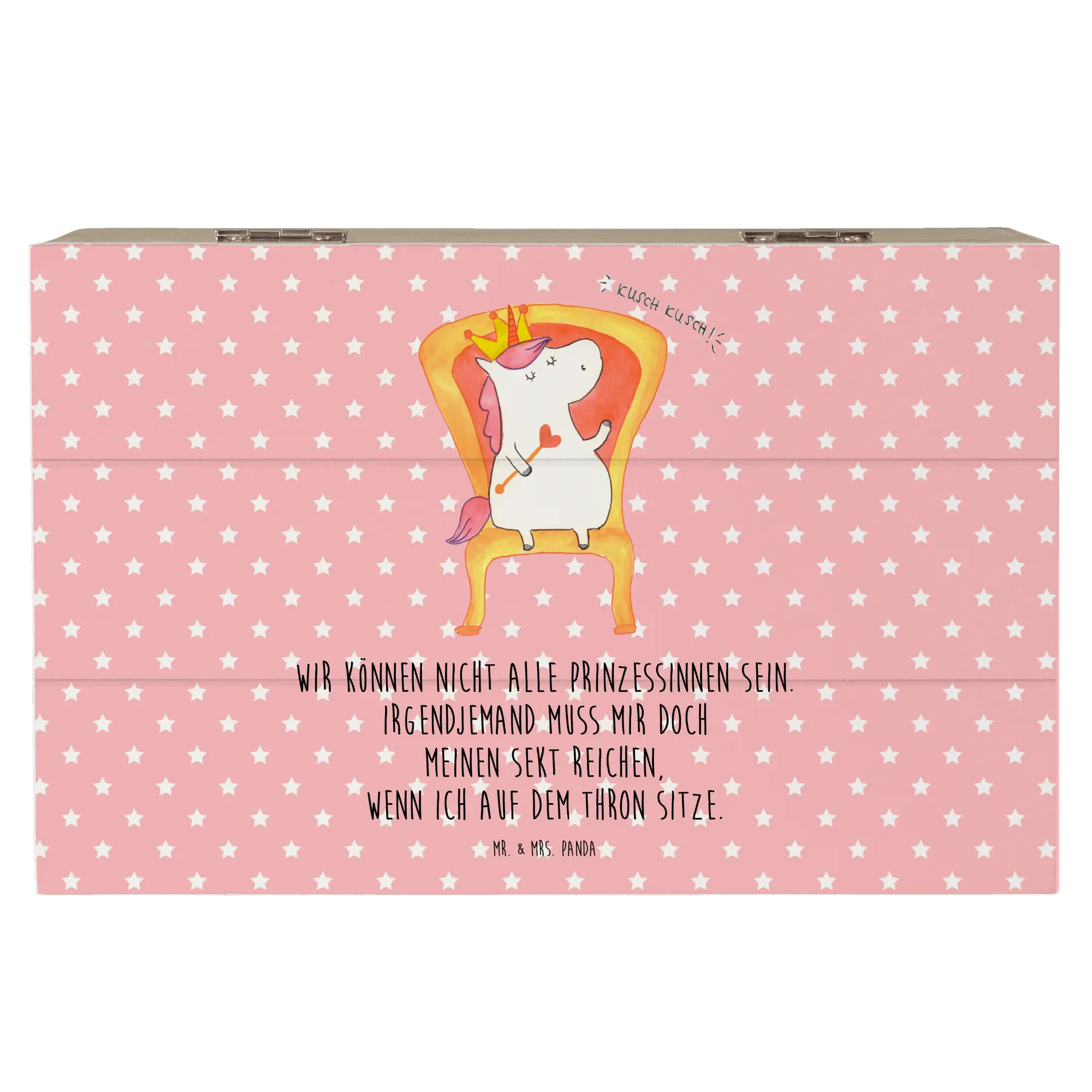 Die wunderschöne Holzkiste Einhorn König von Mr. & Mrs. Panda ist das perfekte Geschenk für kleine und große Einhornliebhaber. Mit einem süßen Einhorn auf dem Thron und dem charmanten Slogan „Wir können nicht alle Prinzessinnen sein. Irgendjemand muss mir doch meinen Sekt reichen, wenn ich auf dem Thron sitze.“ strahlt diese Kiste nicht nur einen Hauch von Magie aus, sondern ist auch ein idealer Aufbewahrungsort für all die wertvollen Schätze des Lebens.