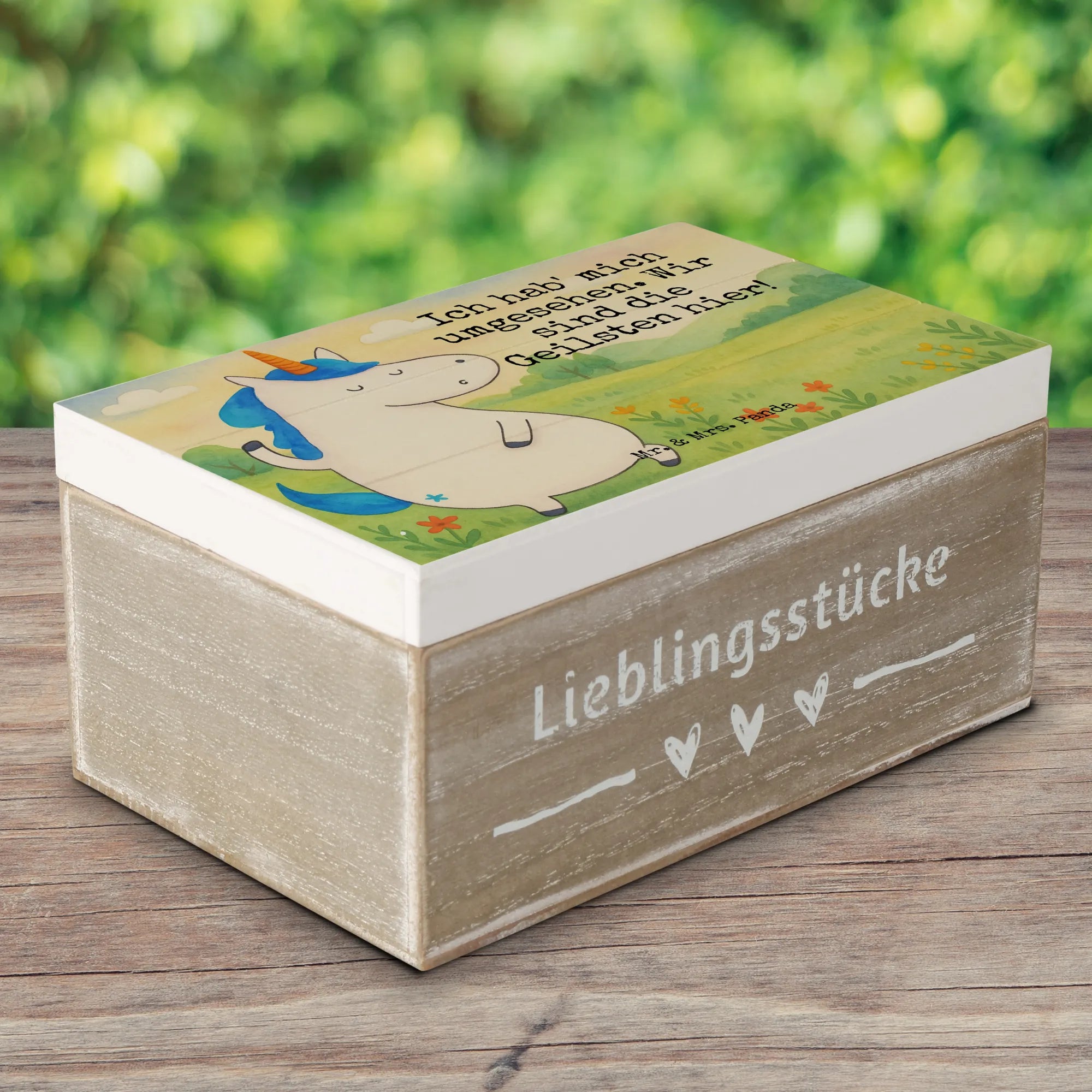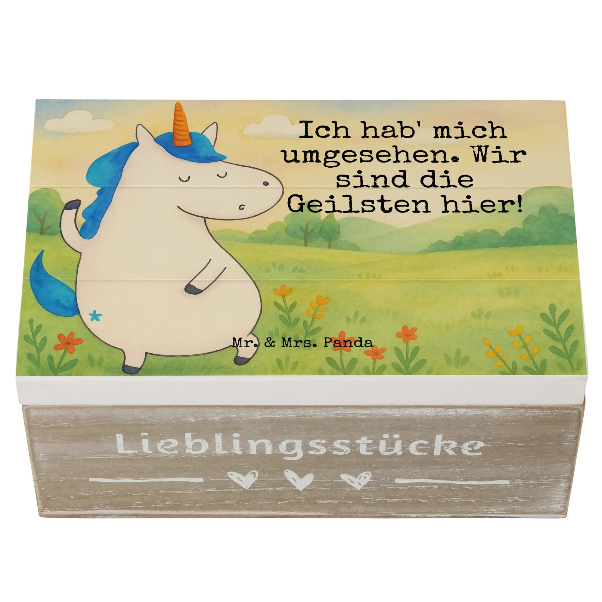 Holzkiste Einhorn Mann Design - 22 x 15 cm - mit Spruch