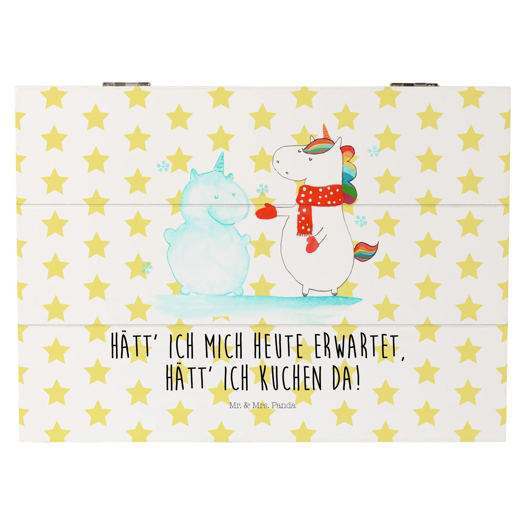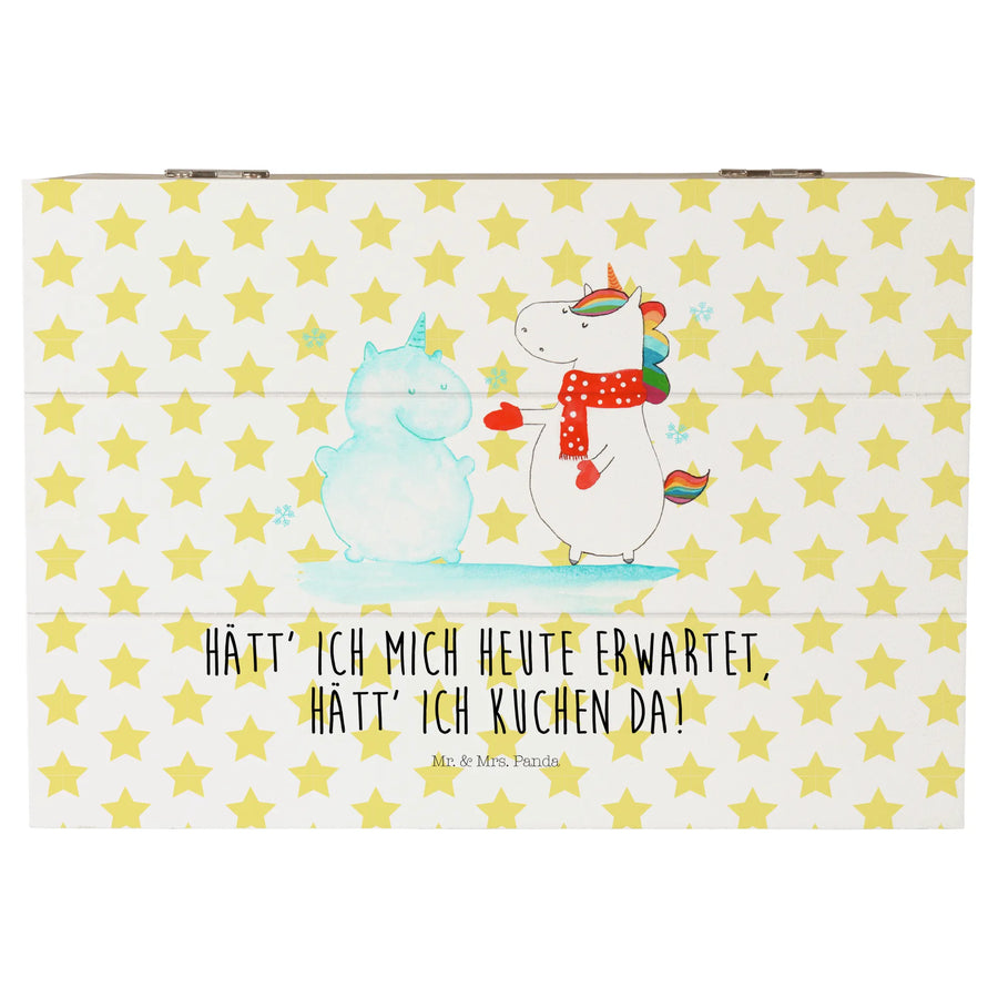 Die wunderschöne Holzkiste von Mr. & Mrs. Panda ist der perfekte Aufbewahrungsort für all deine Erinnerungen und Schätze. Sie begeistert mit ihrem einzigartigen Motiv: Einhorn Schneemann! Diese entzückende Kiste ist in der zauberhaften Einhorn - Kollektion und bringt den Zauber des Winters direkt zu dir nach Hause. Ob zur Kommunion, Konfirmation oder einfach als kreatives Geschenk – diese Kiste eignet sich für jeden Anlass. Der Spruch "Hätt‘ ich mich heute erwartet, hätt‘ ich Kuchen da!" zaubert jedem ein Lächeln ins Gesicht und macht die Kiste zu einem lieben Geschenk für Freunde und Familie.