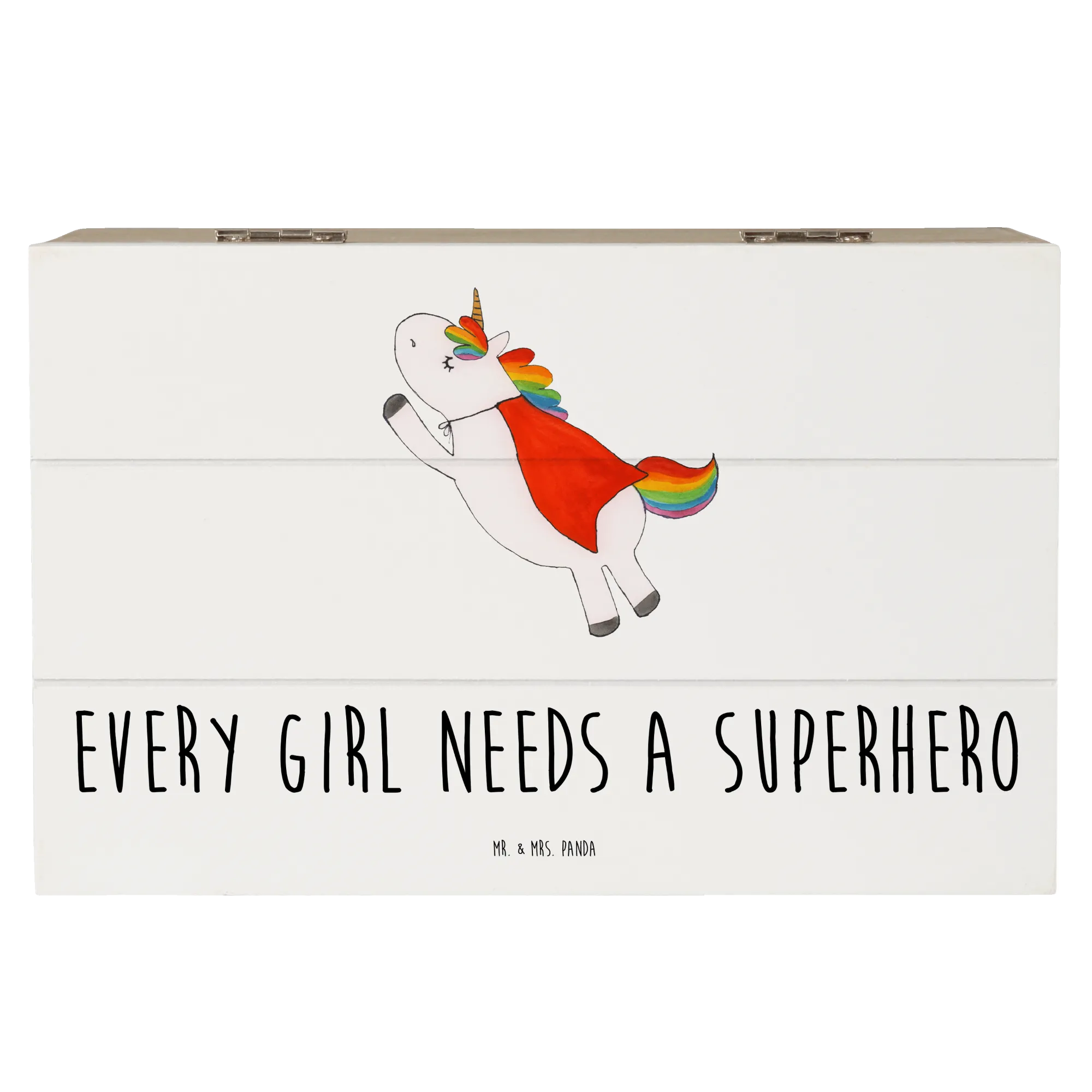 Ein ganz besonderes Highlight ist das süße Einhorn-Motiv, das von Mrs. Panda handgezeichnet wurde. Mit dem Spruch "Every girl needs a superhero" zeigt diese Kiste nicht nur, dass jedes Mädchen einen besonderen Helden verdient hat, sondern bringt auch ein Lächeln ins Gesicht.