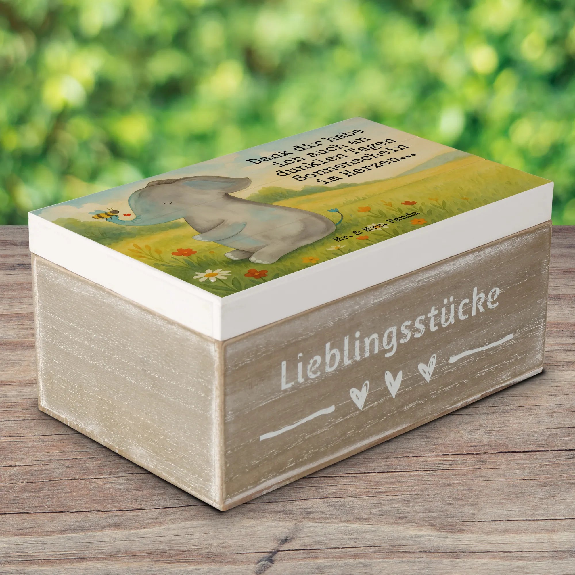 Holzbox Elefant Biene Design - 22 x 15 cm - mit Spruch