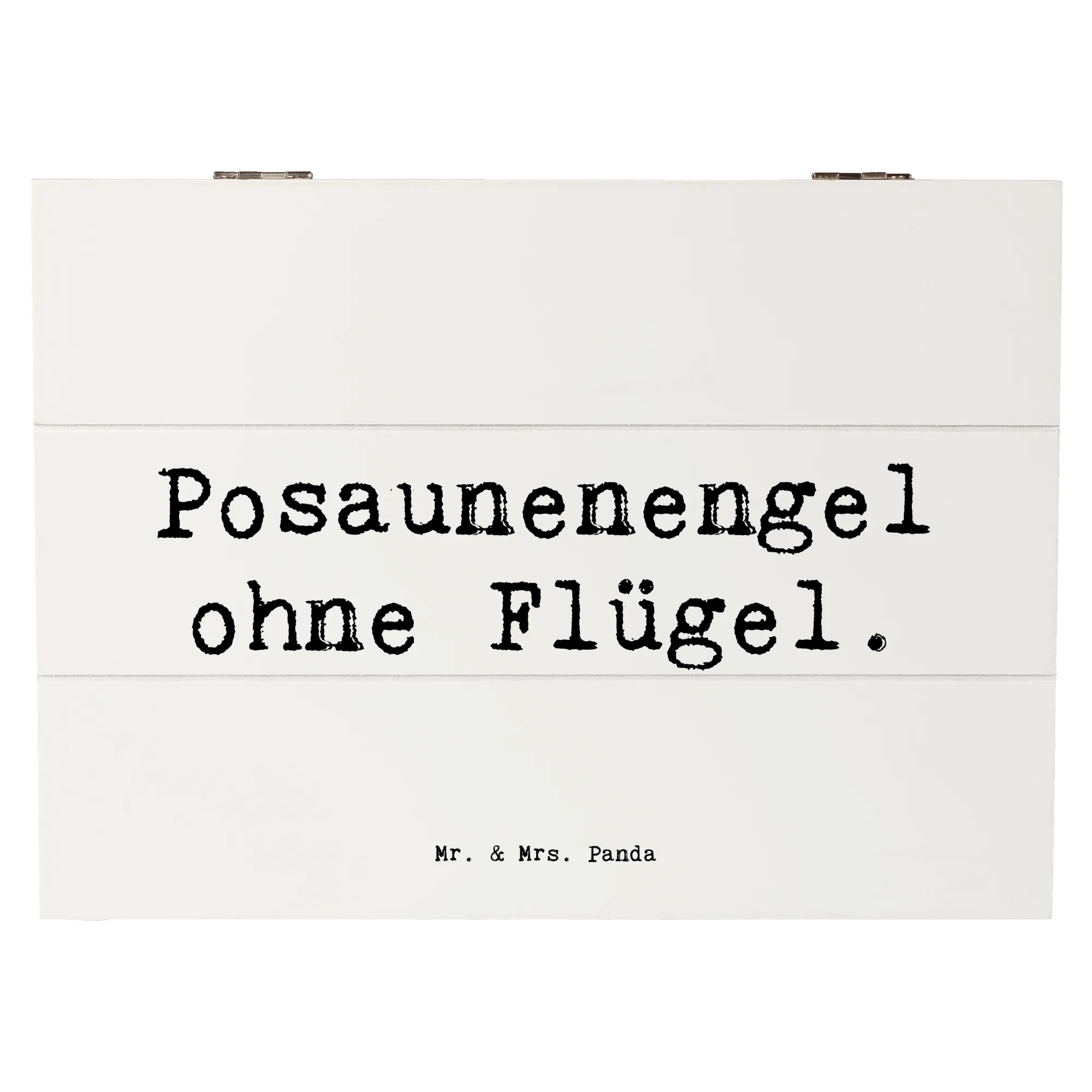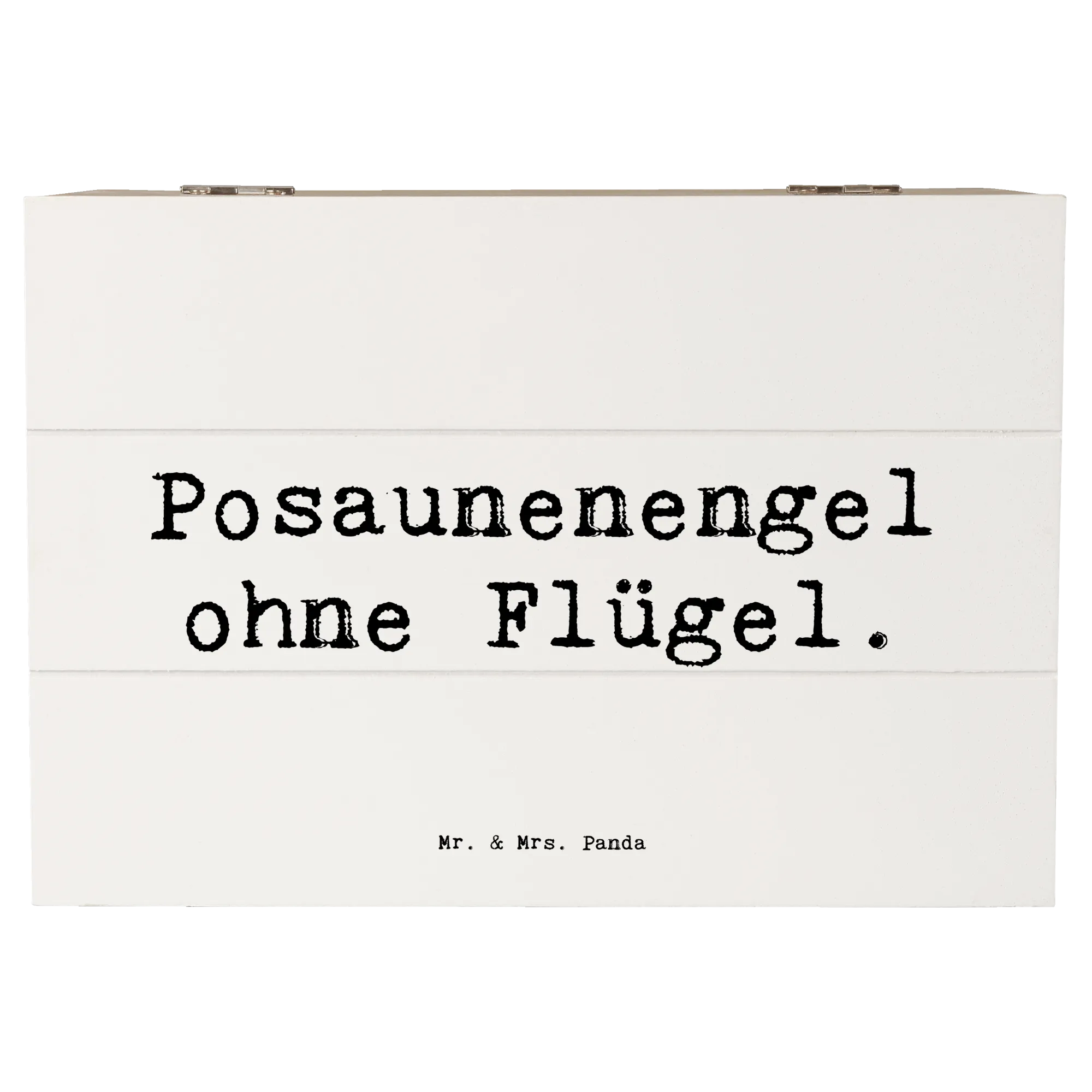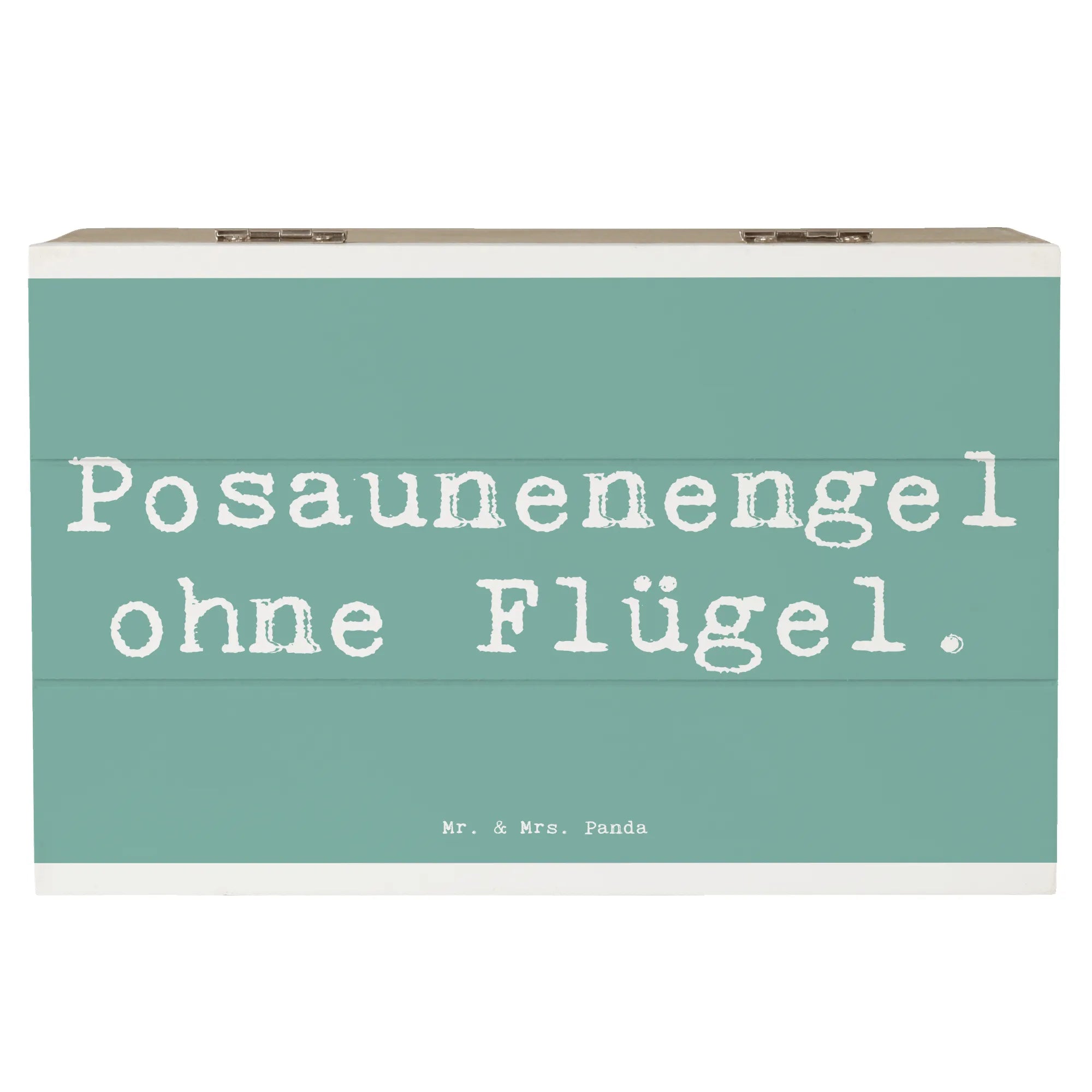 Die wunderschöne Holzkiste von Mr. & Mrs. Panda ist ein echtes Schmuckstück für alle Musikliebhaber und Posaunenspieler! Mit ihrem zauberhaften Motiv der Posaune und dem liebevollen Spruch 'Posaunenengel ohne Flügel' lässt sie nicht nur Herzen höherschlagen, sondern bietet dir auch einen idealen Platz für all deine wertvollen Erinnerungen. Ob für die ersten Schritte in die Musikwelt, besondere Anlässe wie die Kommunion oder Konfirmation, oder einfach nur als stilvolle Aufbewahrung für Fotos und andere Schätze, diese Kiste ist ein wahrhaft vielseitiges Geschenk.
