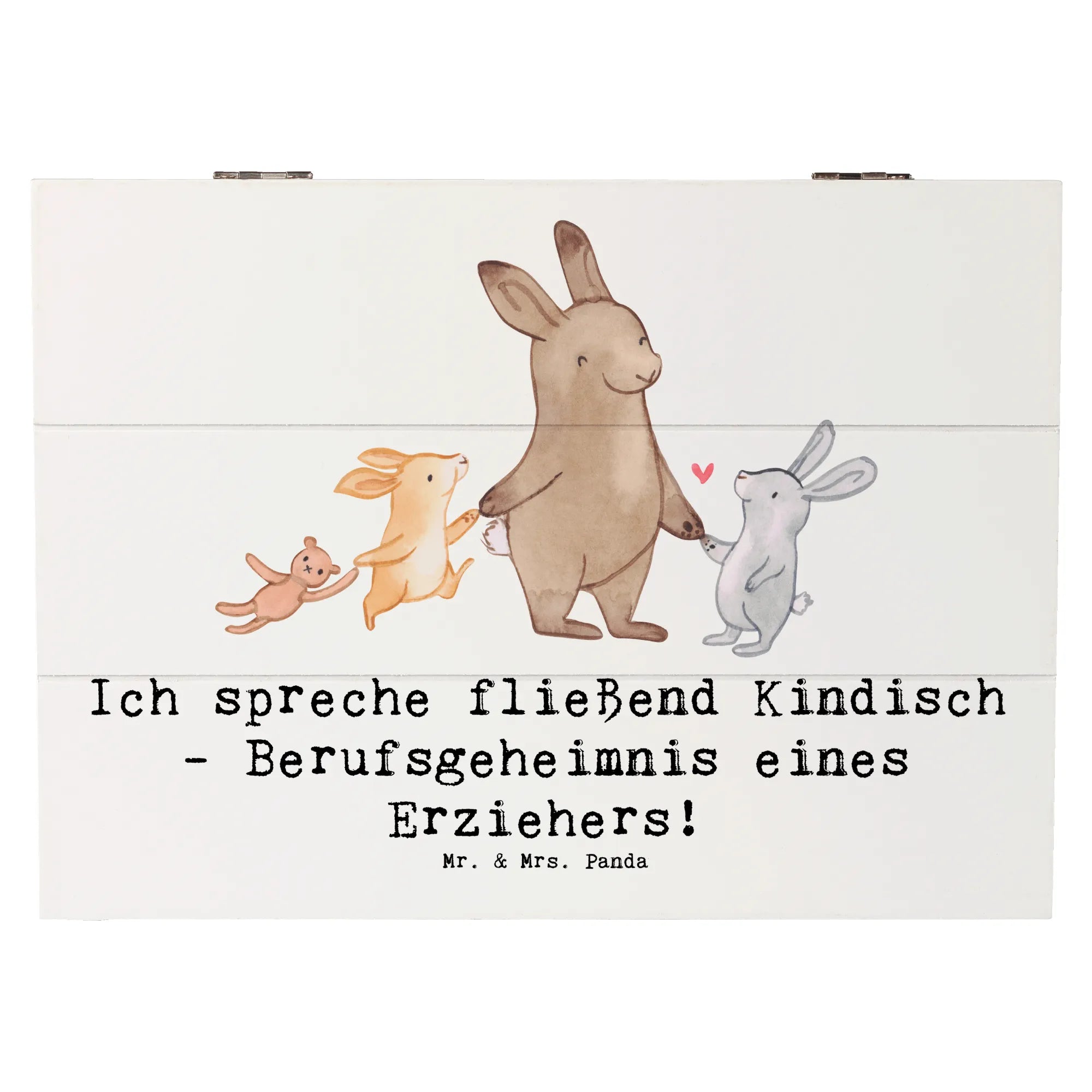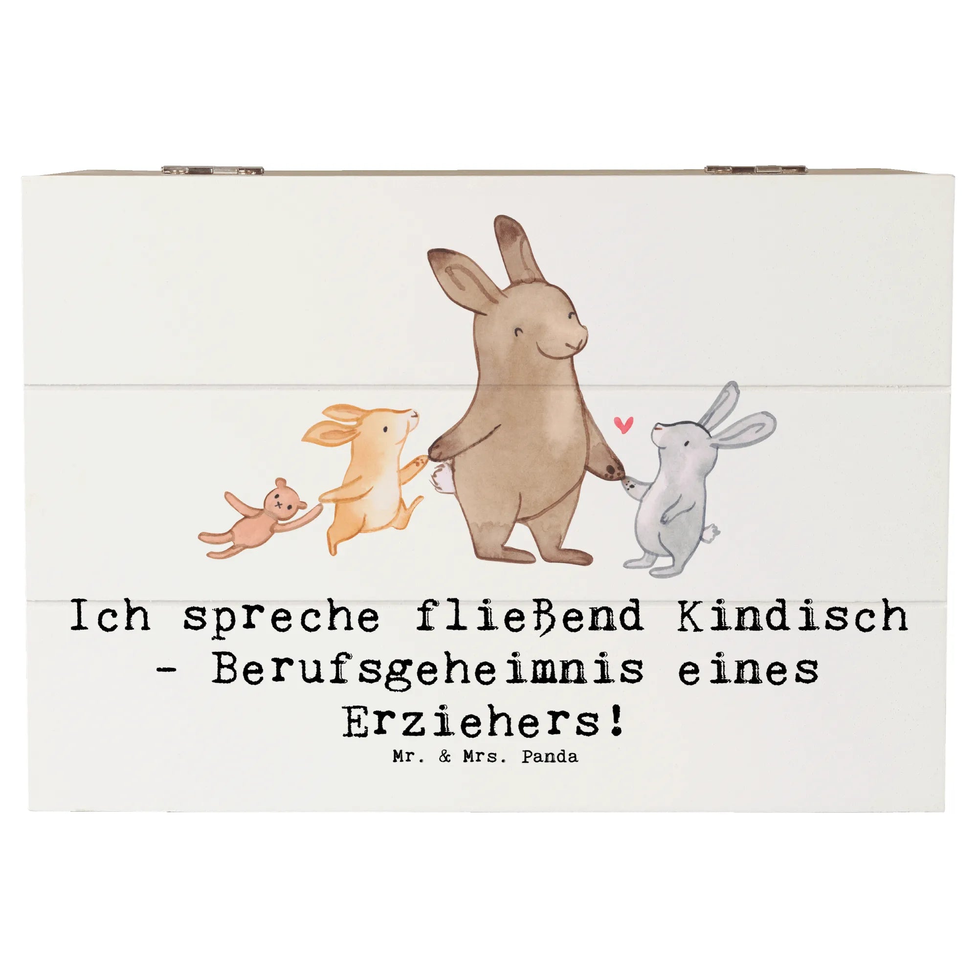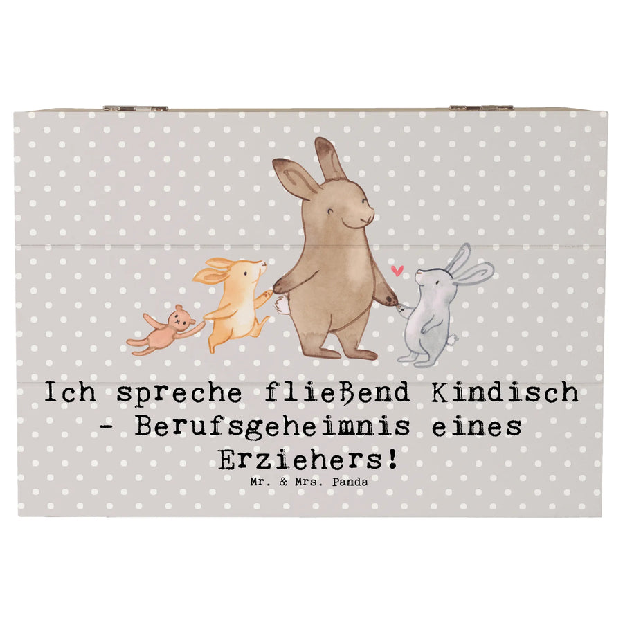Entdecke die wunderbare Holzkiste von Mr. & Mrs. Panda! Diese einzigartige Kiste ist nicht nur ein perfekter Aufbewahrungsort für all deine Schätze, sondern auch ein ganz besonderes Geschenk für Erzieherinnen und Erzieher. Mit dem charmanten Slogan "Ich spreche fließend Kindisch - Berufsgeheimnis eines Erziehers!" wird diese Kiste zum liebevollen Begleiter im Alltag der Pädagogen.