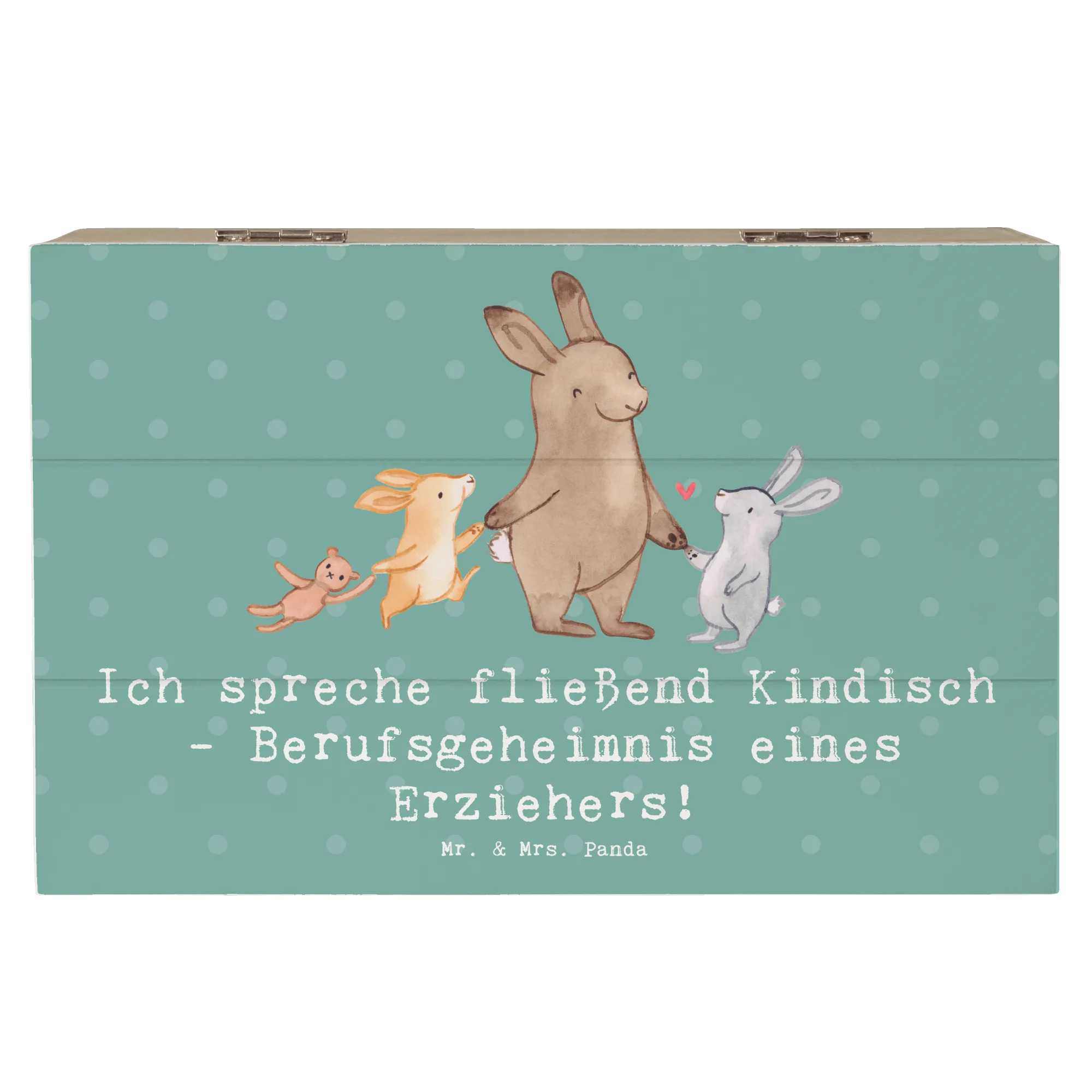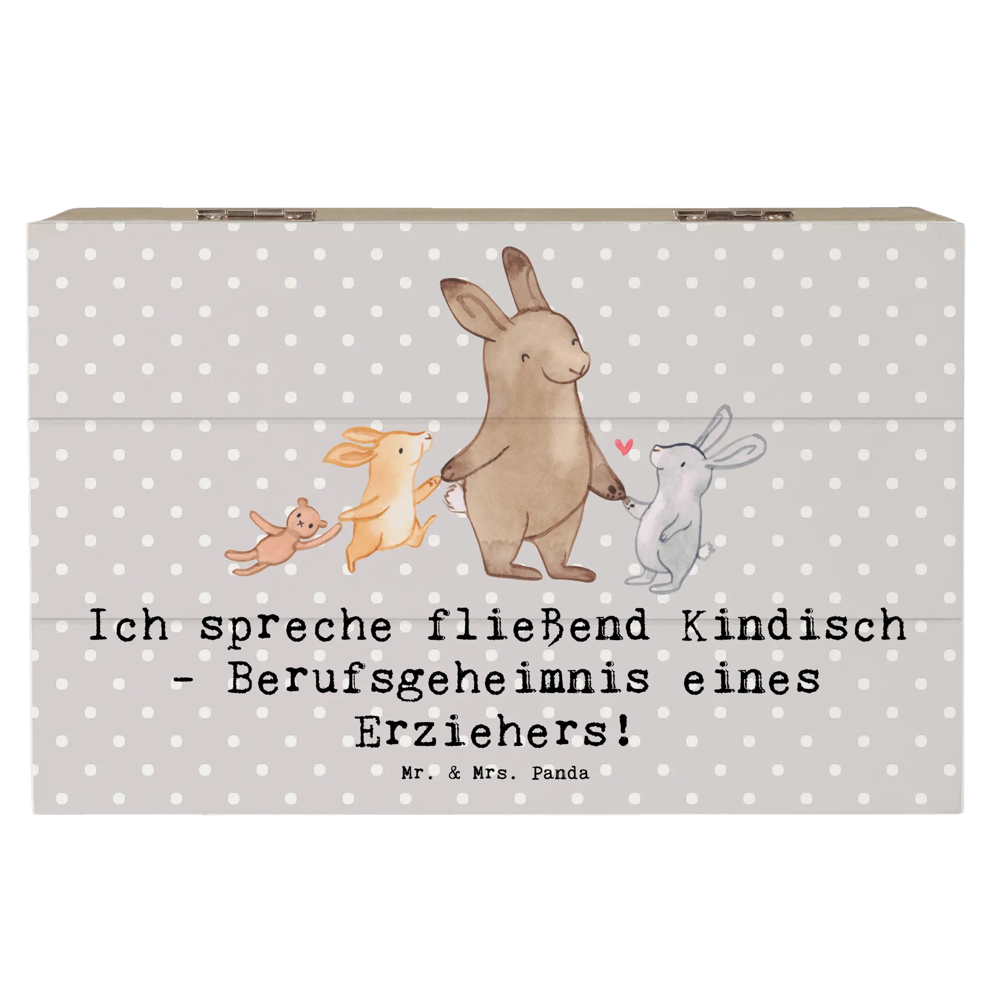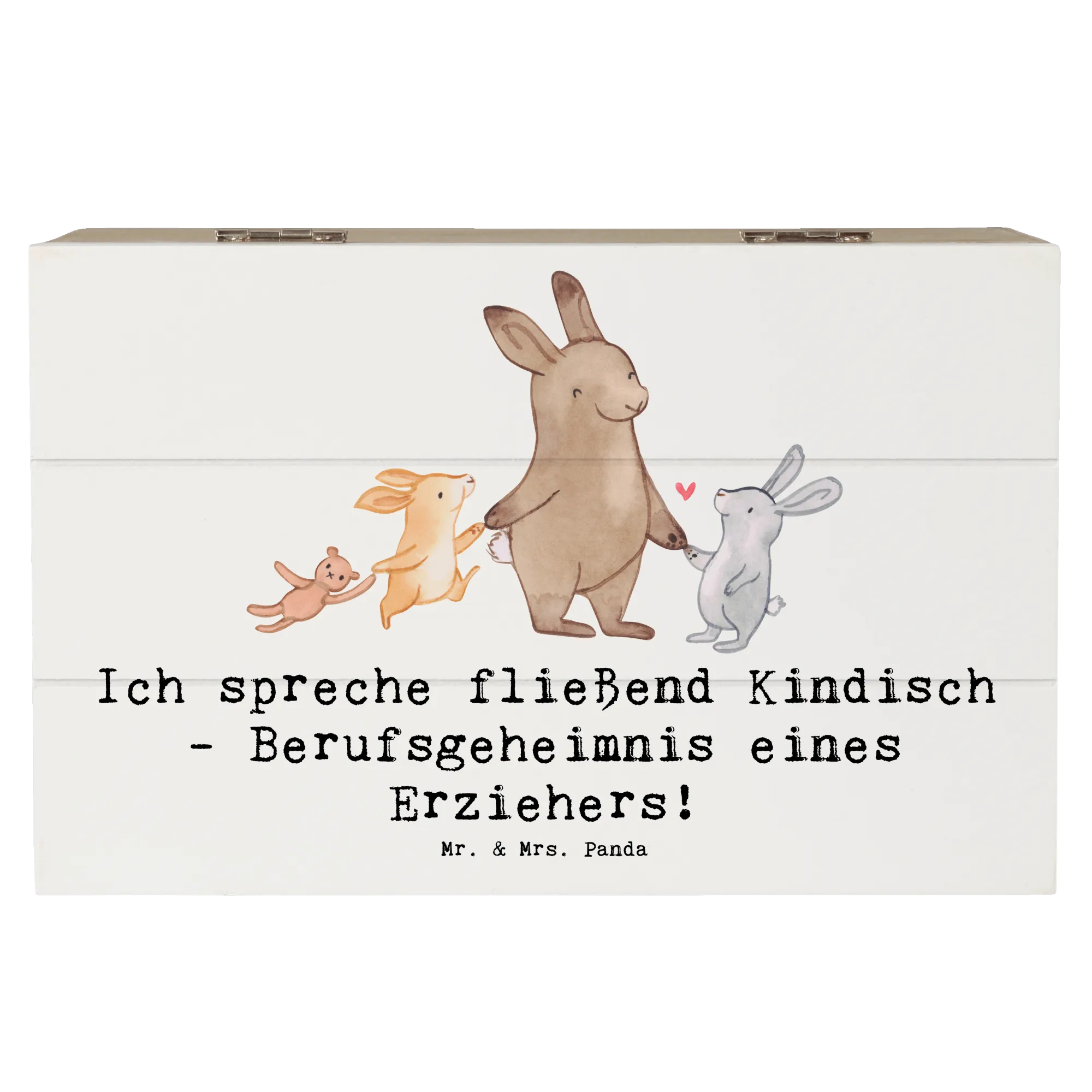Entdecke die wunderbare Holzkiste von Mr. & Mrs. Panda! Diese einzigartige Kiste ist nicht nur ein perfekter Aufbewahrungsort für all deine Schätze, sondern auch ein ganz besonderes Geschenk für Erzieherinnen und Erzieher. Mit dem charmanten Slogan "Ich spreche fließend Kindisch - Berufsgeheimnis eines Erziehers!" wird diese Kiste zum liebevollen Begleiter im Alltag der Pädagogen.