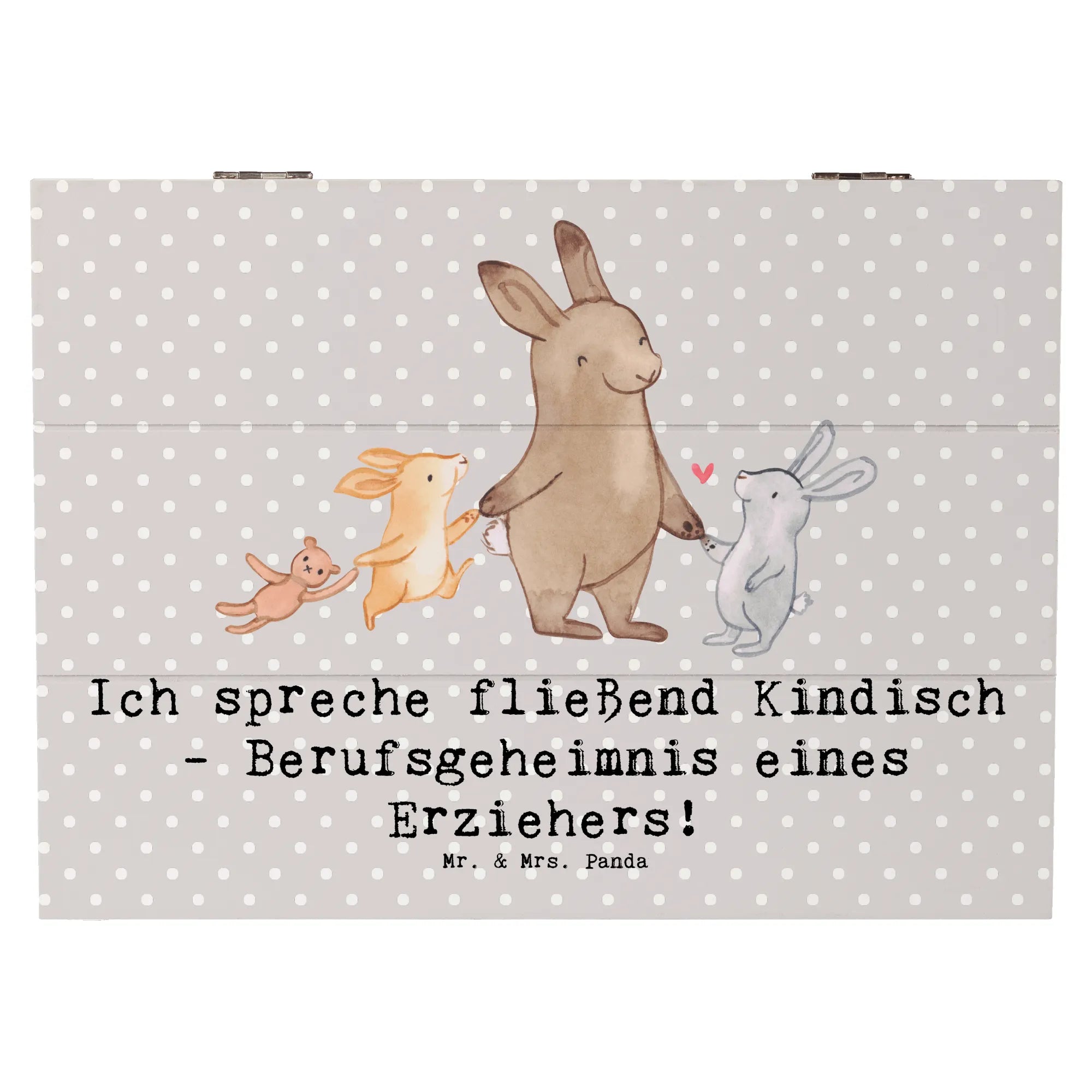 Die wunderschöne Holzkiste von Mr. & Mrs. Panda ist nicht nur ein Blickfang, sondern auch die perfekte Geschenkidee für alle Erzieher und Erzieherinnen da draußen! Mit dem liebevollen Slogan "Ich spreche fließend Kindisch - Berufsgeheimnis eines Erziehers!" bringt diese Kiste ein Lächeln in jedes Gesicht und schafft eine Verbindung zu den kleinen Schätzen der Kindheit.