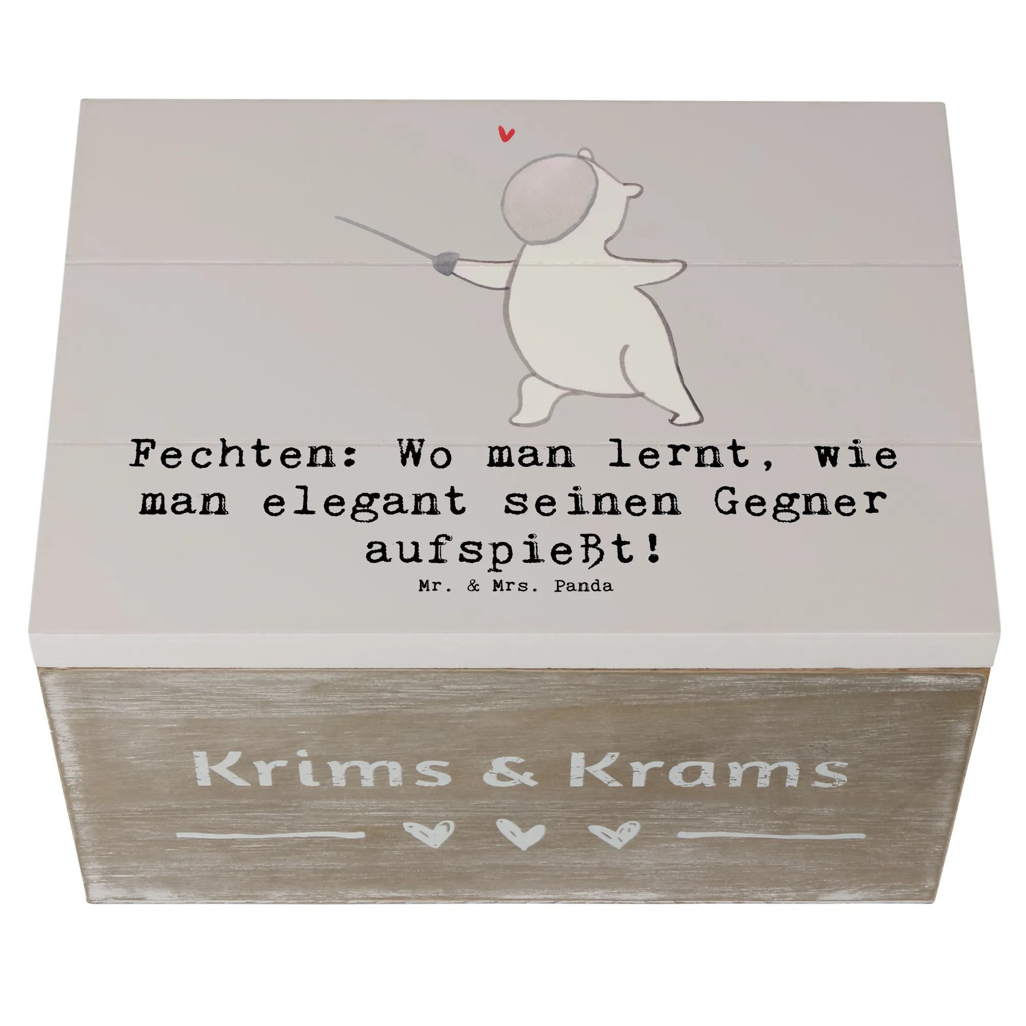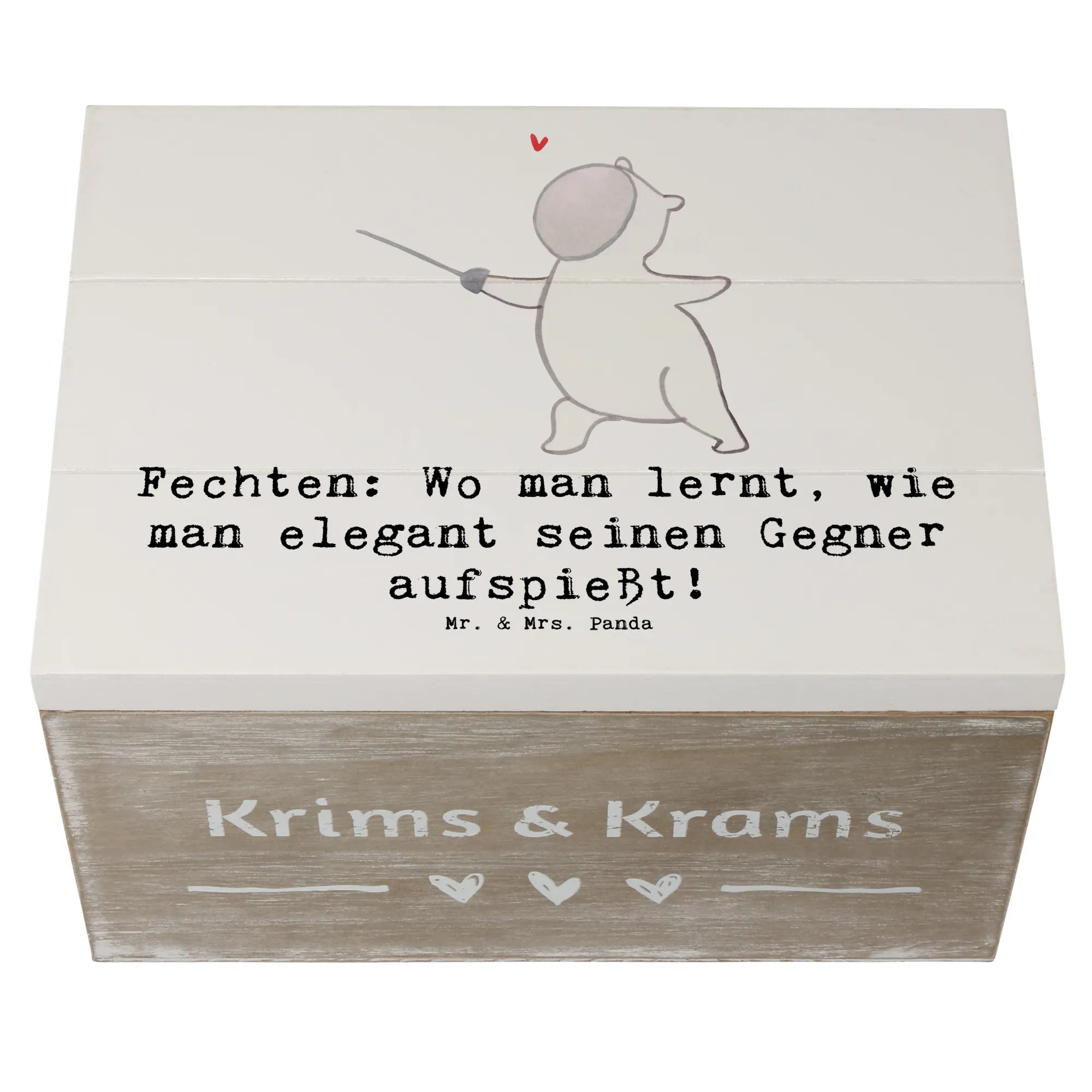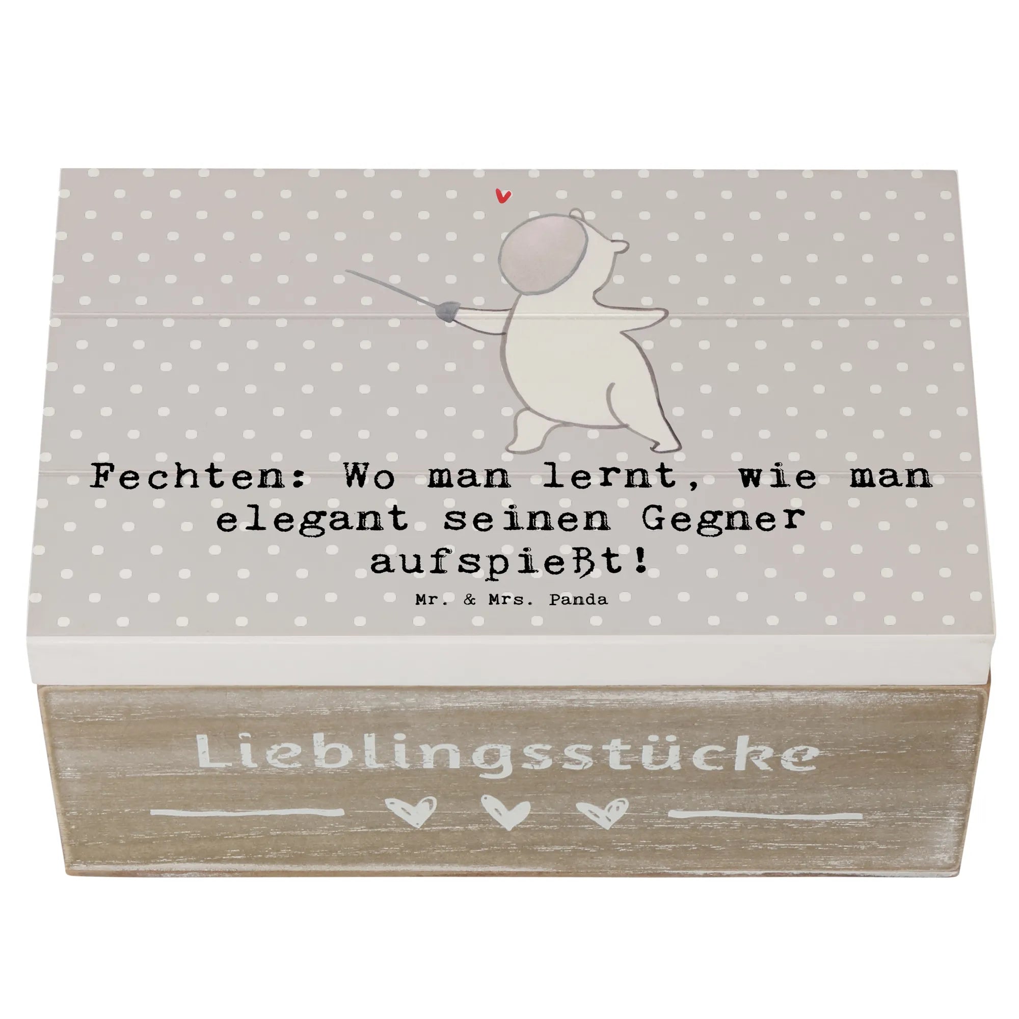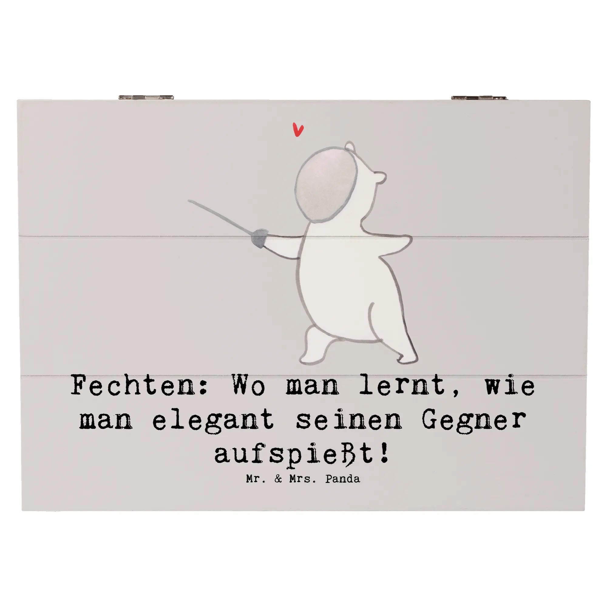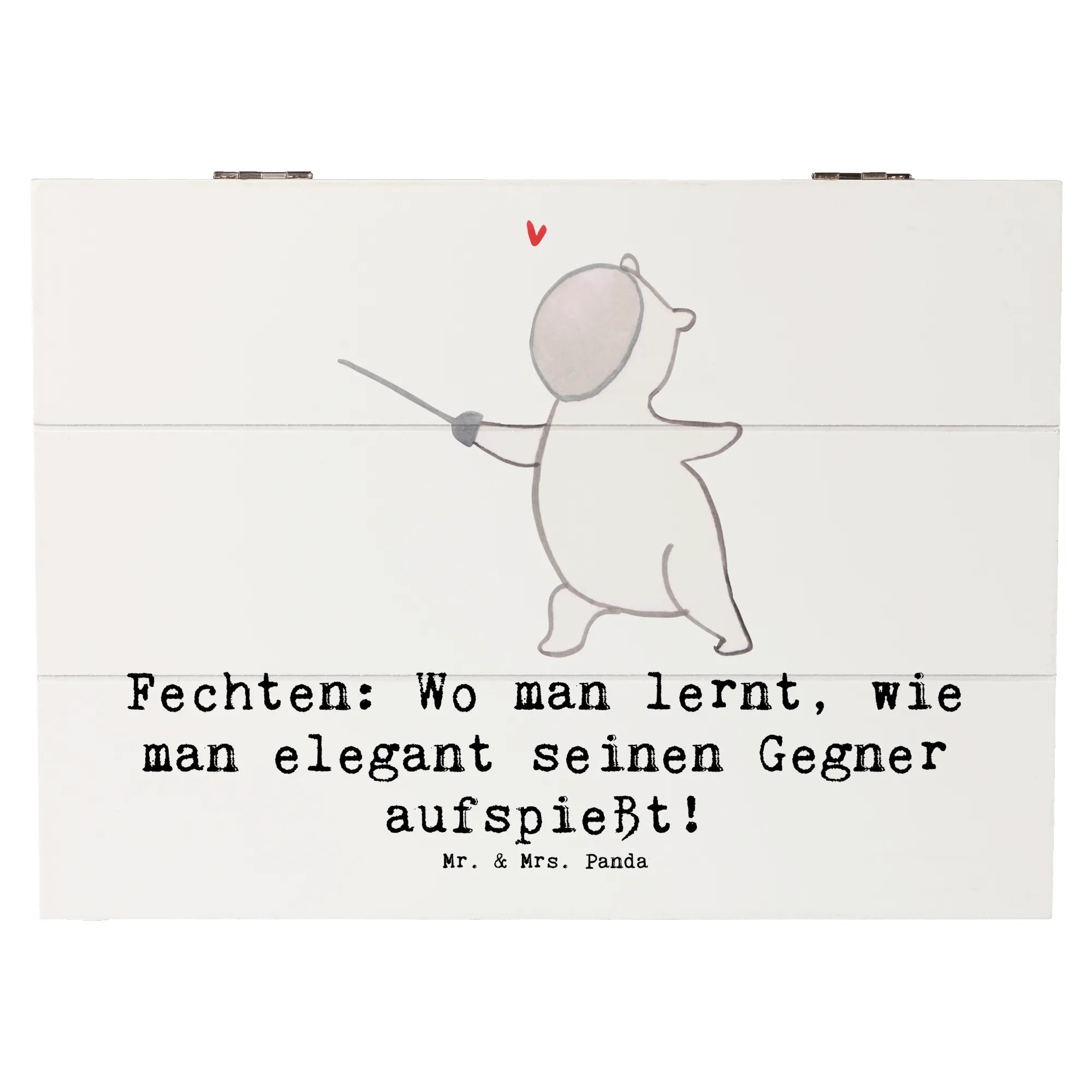 Die wunderschöne Holzkiste mit dem charmanten Motiv "Fechten" von Mr. & Mrs. Panda ist das perfekte Geschenk für alle Sportbegeisterten! 🥇 Egal, ob du ein leidenschaftlicher Fechter bist oder einfach nur die Eleganz dieses Sports schätzt, diese Schatzkiste wird dein Herz erobern.