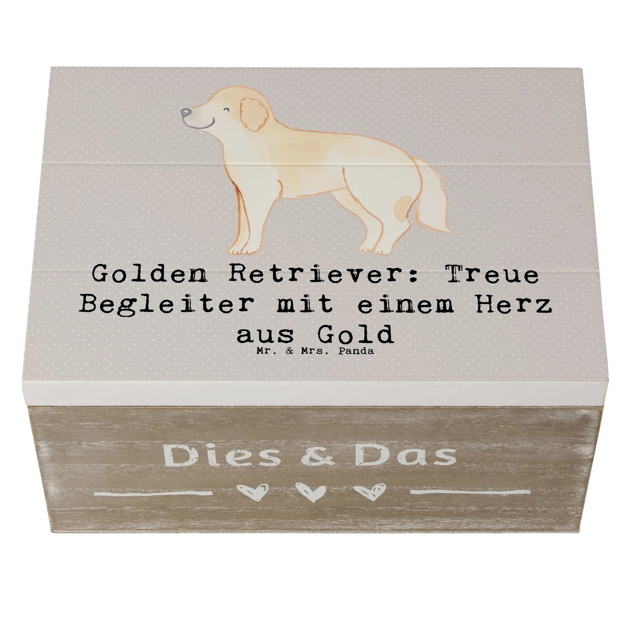Die wunderschöne Holzkiste von Mr. & Mrs. Panda mit dem liebevollen Motiv des Golden Retrievers ist der perfekte Begleiter für all Deine wertvollen Erinnerungen.