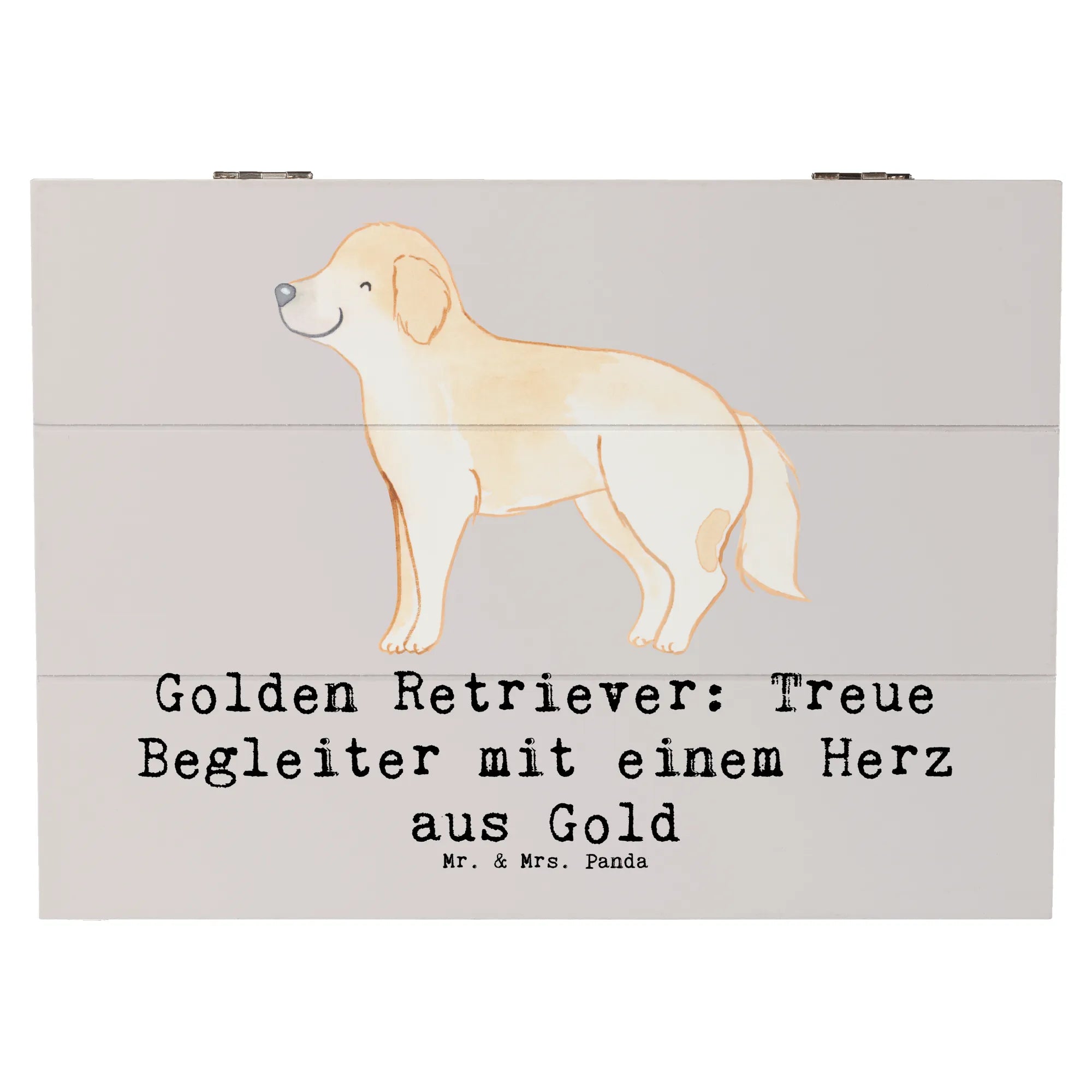 Die wunderschöne Holzkiste von Mr. & Mrs. Panda mit dem zauberhaften Motiv "Golden Retriever: Treue Begleiter mit einem Herz aus Gold" ist nicht nur ein Schmuckstück für jedes Zuhause, sondern auch ein perfekter Aufbewahrungsort für deine wertvollsten Erinnerungen. Diese liebevoll gestaltete Kiste aus robuster Holzfaser bietet dir ausreichend Platz, um deine Schätze stilvoll zu verstauen.