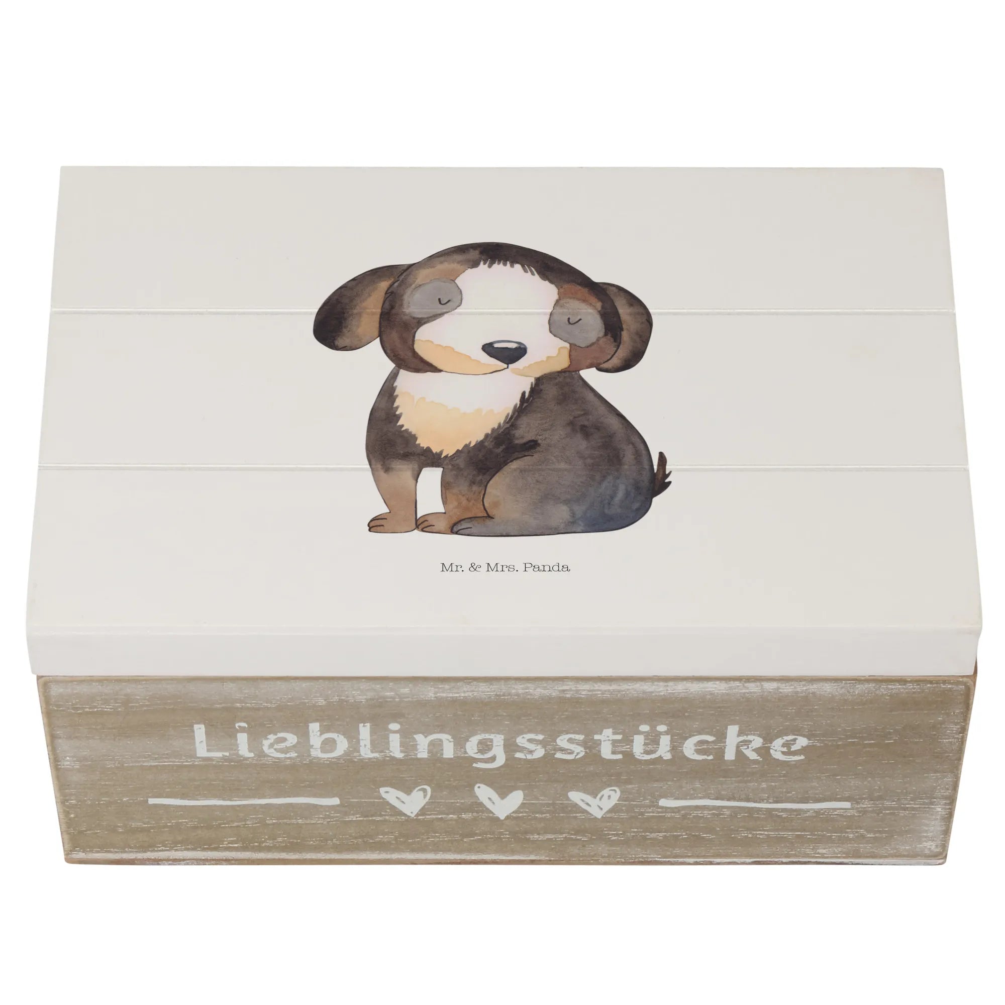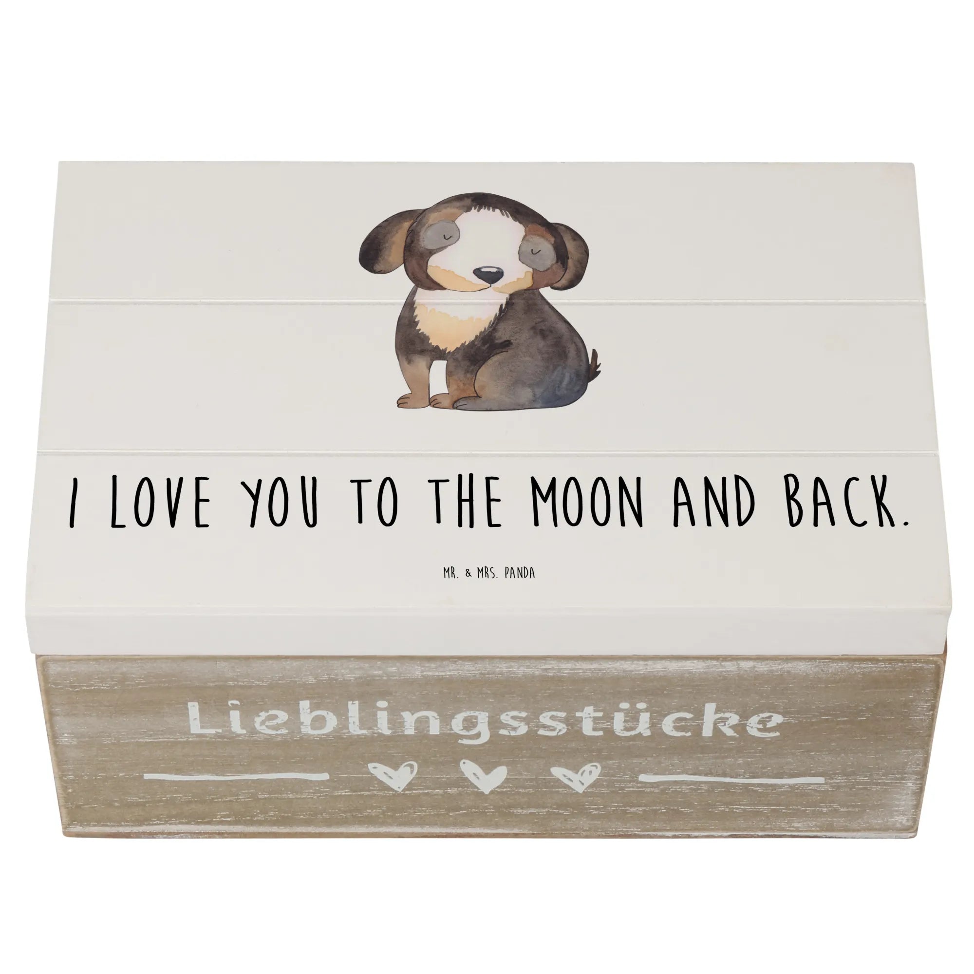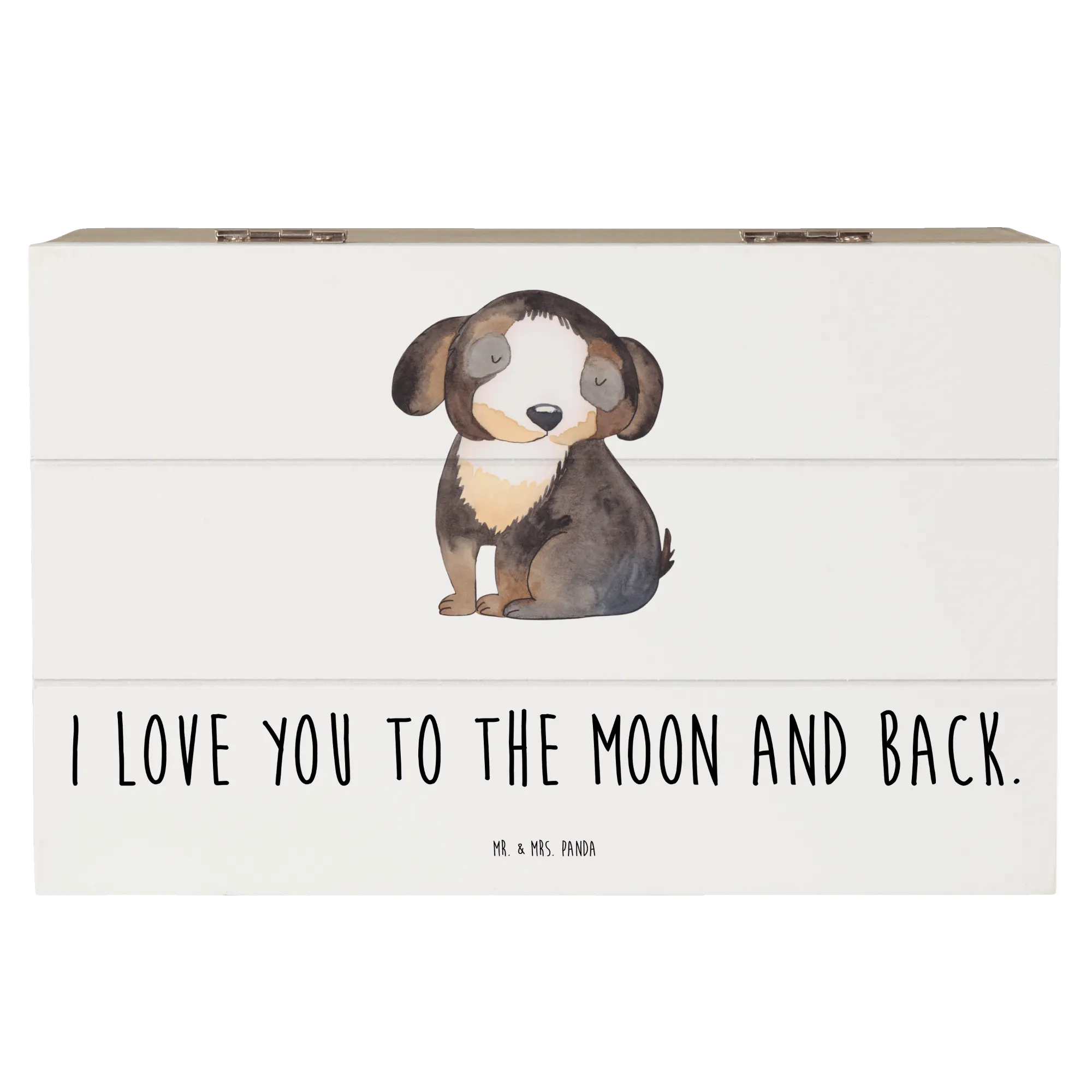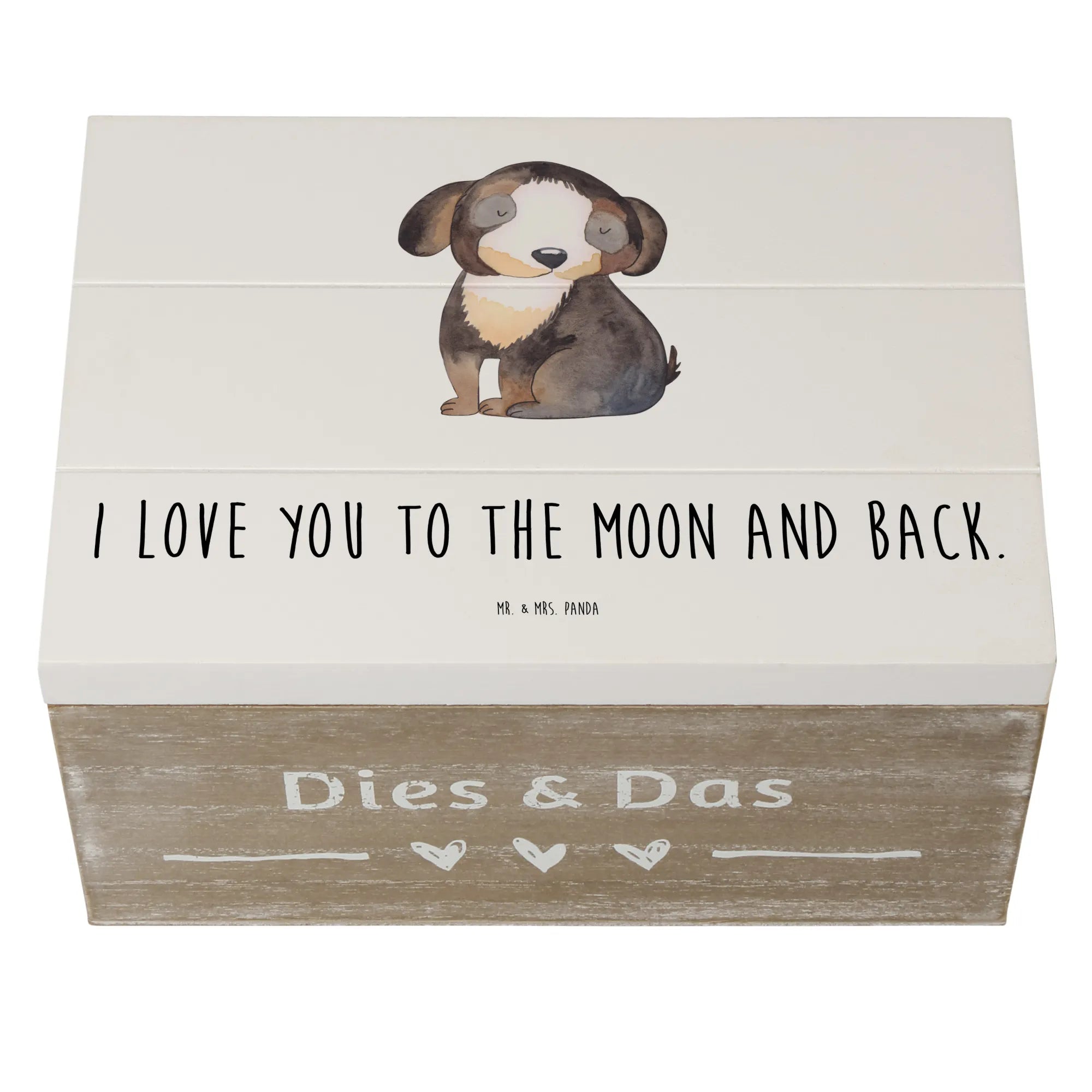 Verschenke ein Stück Geborgenheit und einen Ort für Erinnerungen mit der Holzkiste „Hund entspannt“ – ein kleines Glücksstück aus der Hunde Kollektion von Mr. & Mrs. Panda.