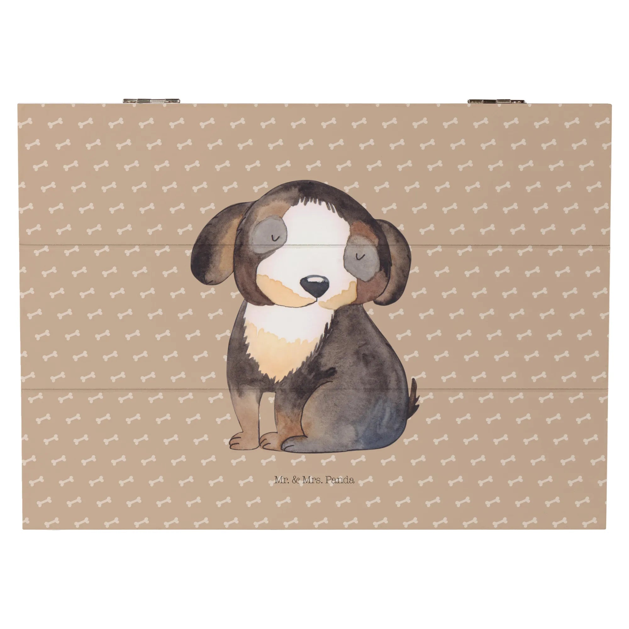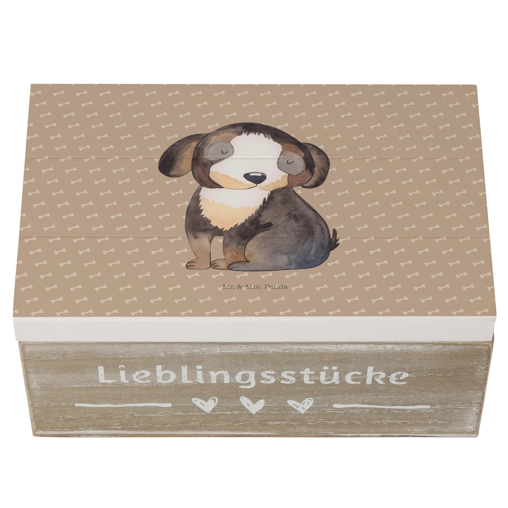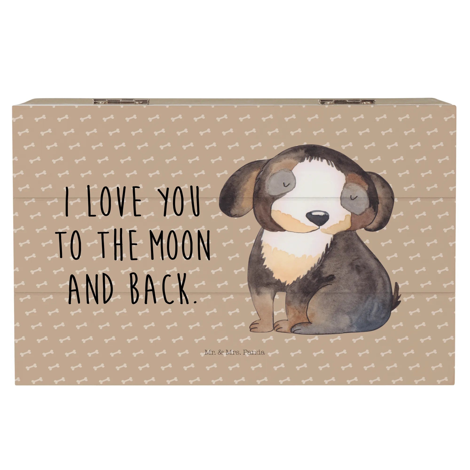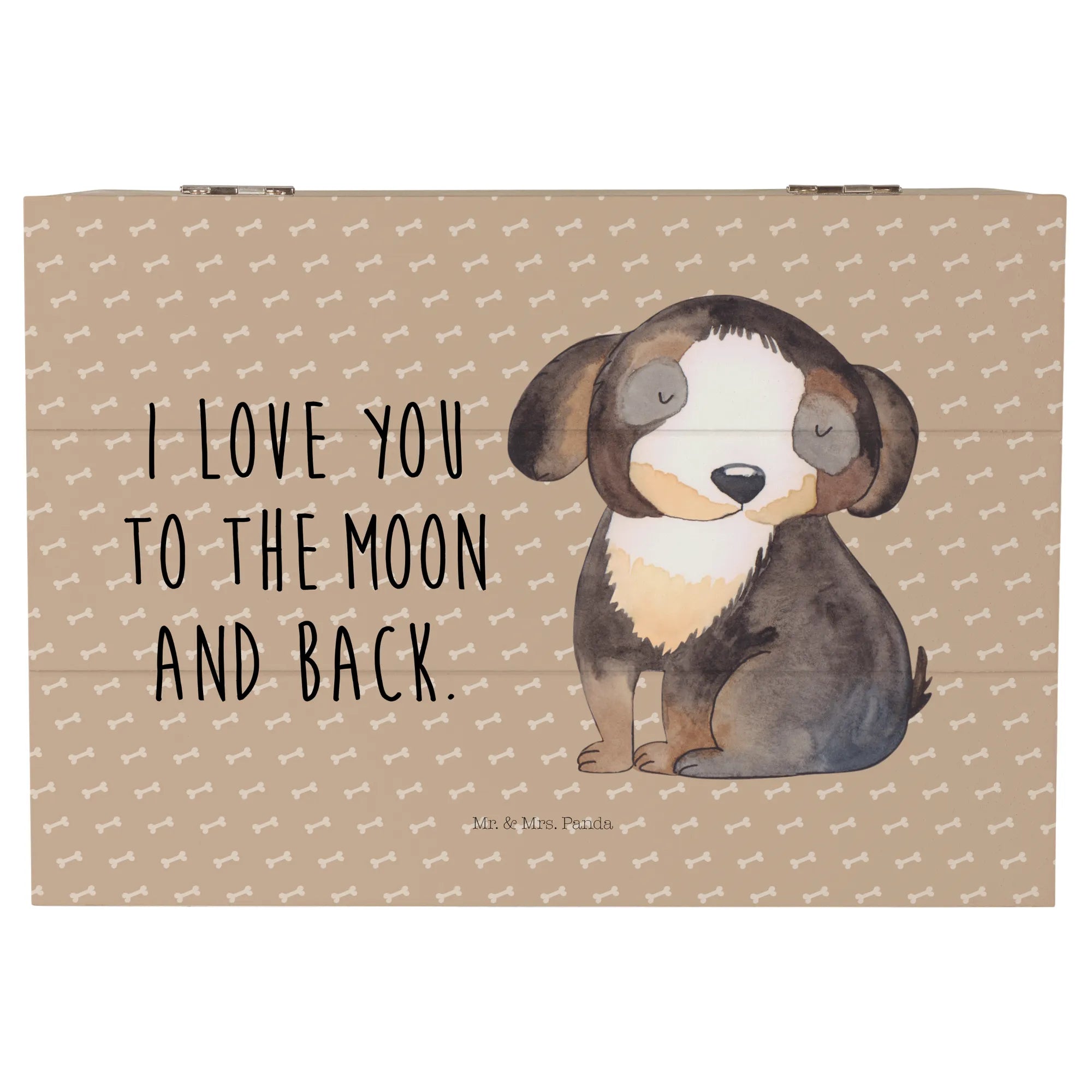 Verschenke ein Stück Geborgenheit und einen Ort für Erinnerungen mit der Holzkiste „Hund entspannt“ – ein kleines Glücksstück aus der Hunde Kollektion von Mr. & Mrs. Panda.