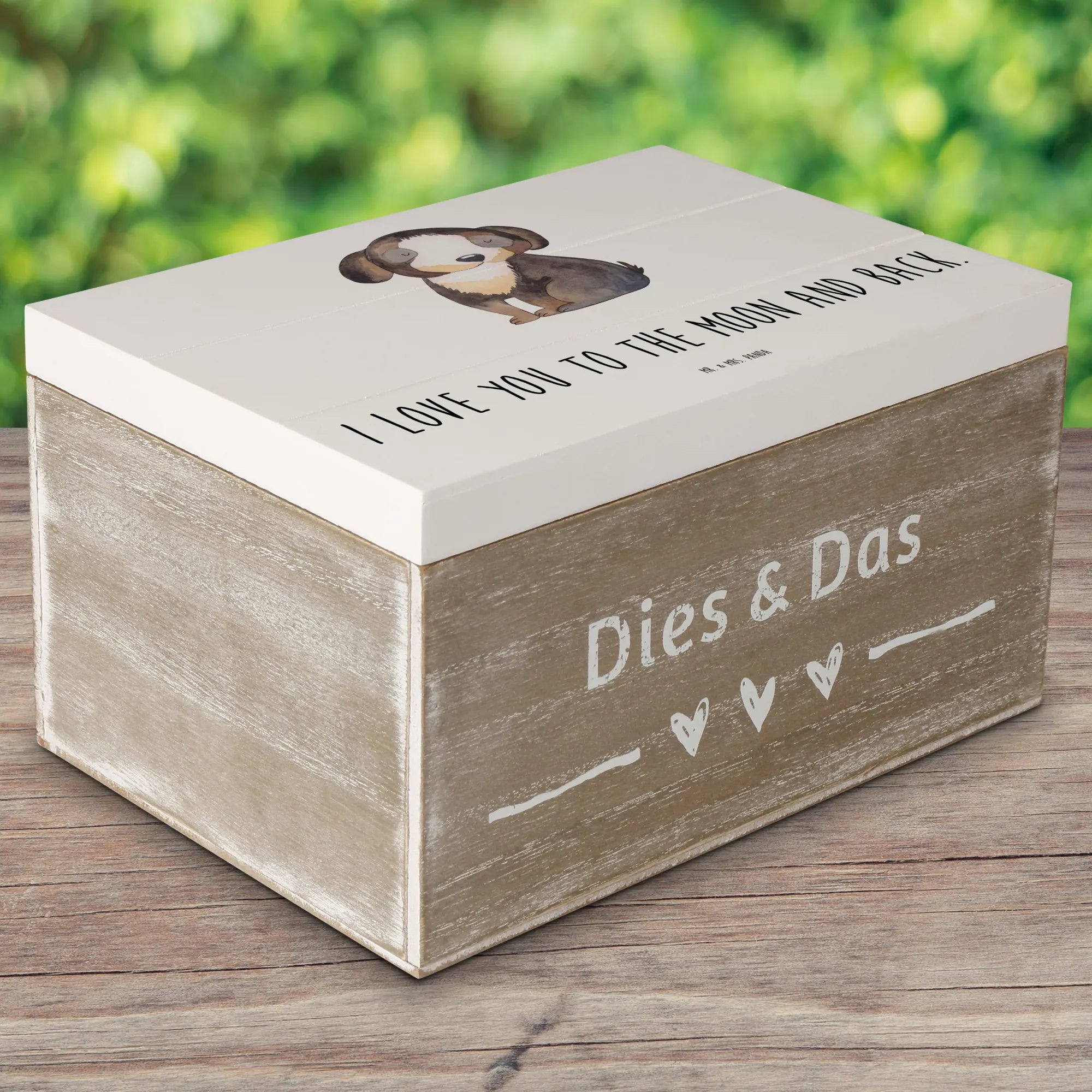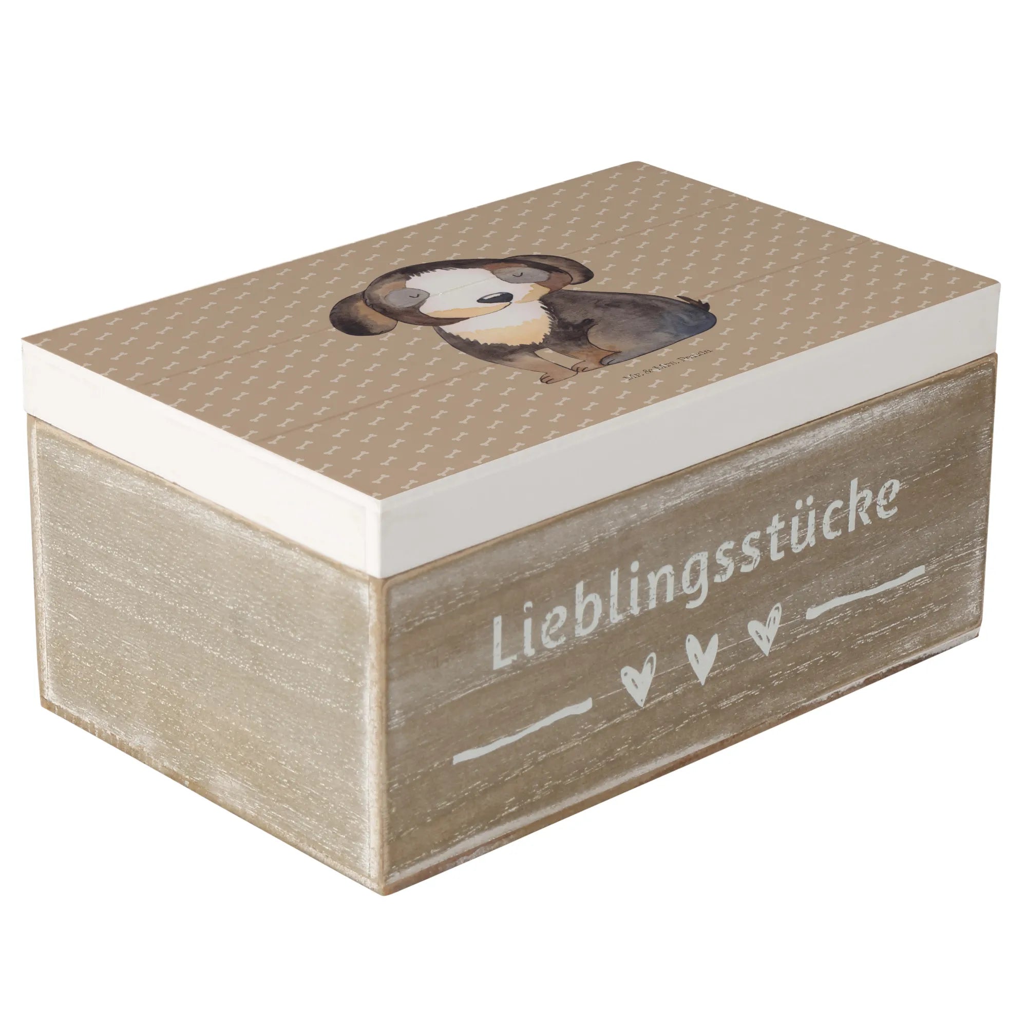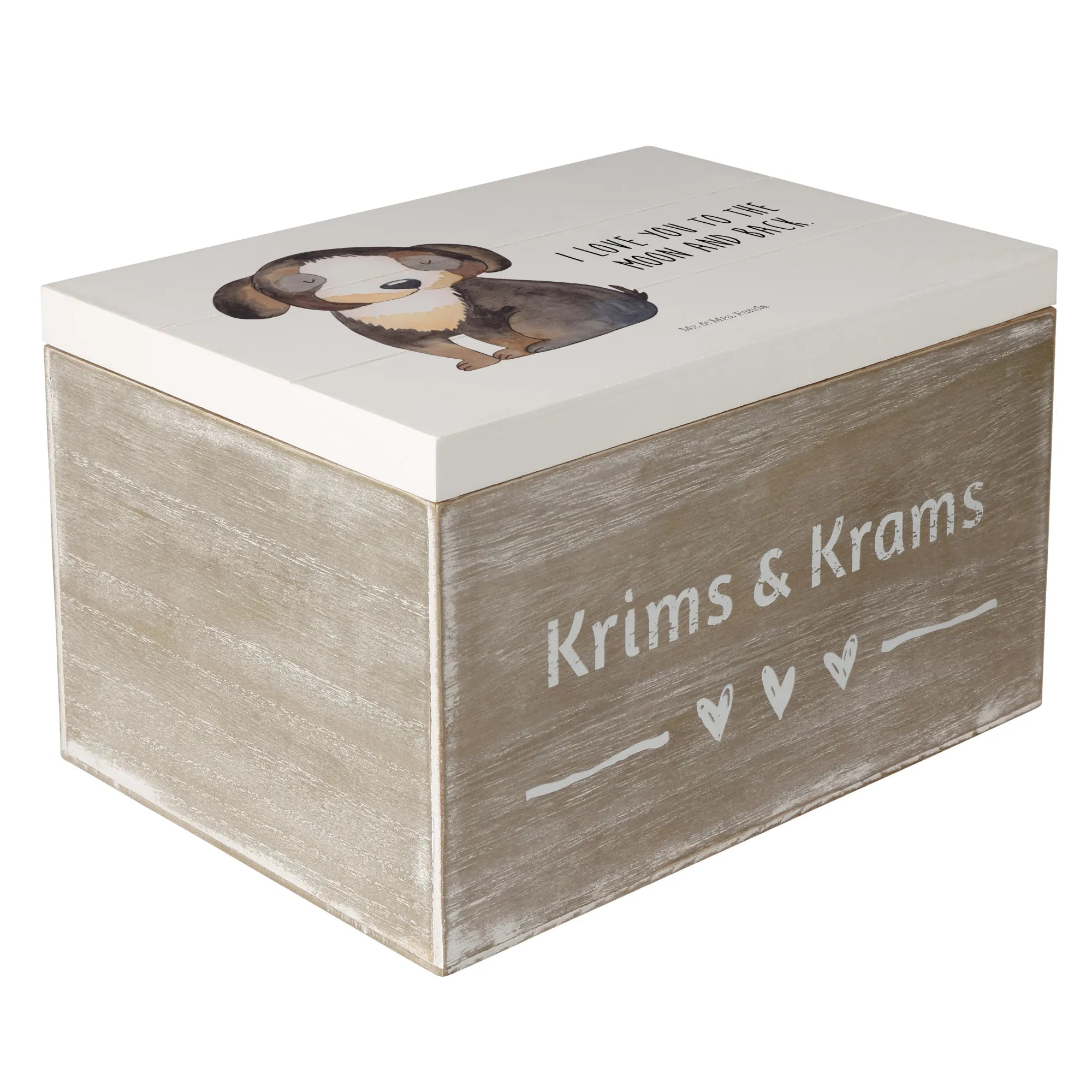 Du liebst deine vierbeinigen Freunde und suchst nach dem perfekten Geschenk für einen Hundeliebhaber? Dann ist die wunderschöne Holzkiste mit dem Motiv 'Hund entspannt' aus der Hunde Kollektion von Mr. & Mrs. Panda genau das Richtige! Diese stabile und ansprechende Erinnerungskiste ist nicht nur ein idealer Aufbewahrungsort für die Schätze deines Lieblings oder die besonderen Erinnerungen an deinen Hund, sondern auch eine bezaubernde Geschenkbox für jeden Anlass. Ob zur Kommunion, Konfirmation, oder einfach nur als liebevolle Geste für einen Freund oder ein Familienmitglied – diese Kiste wird in jedem Fall Freude bereiten!