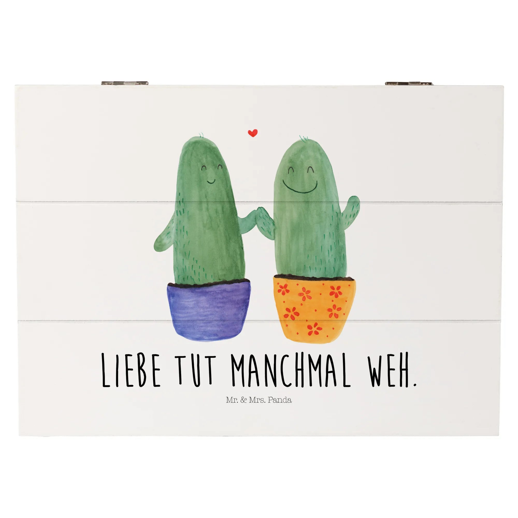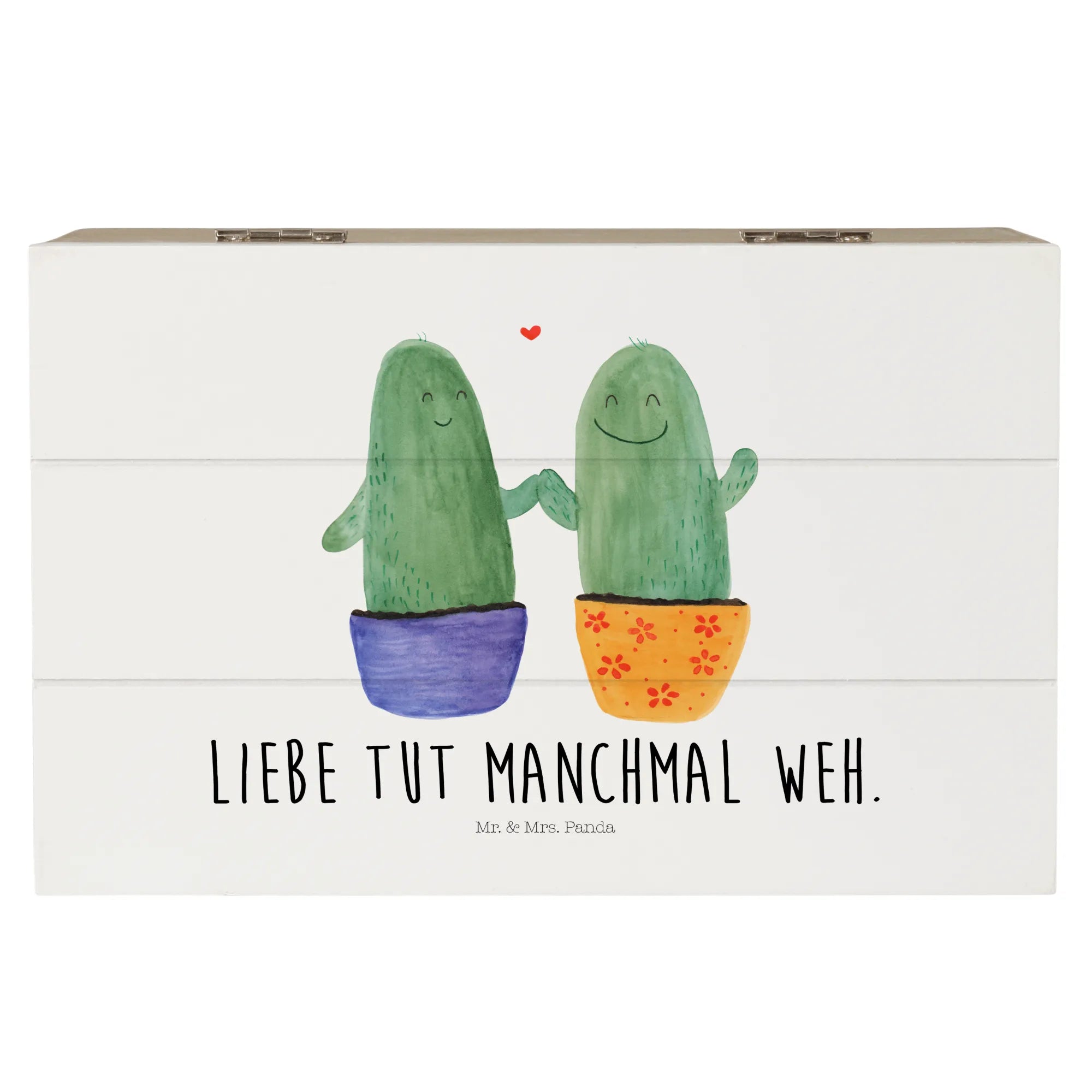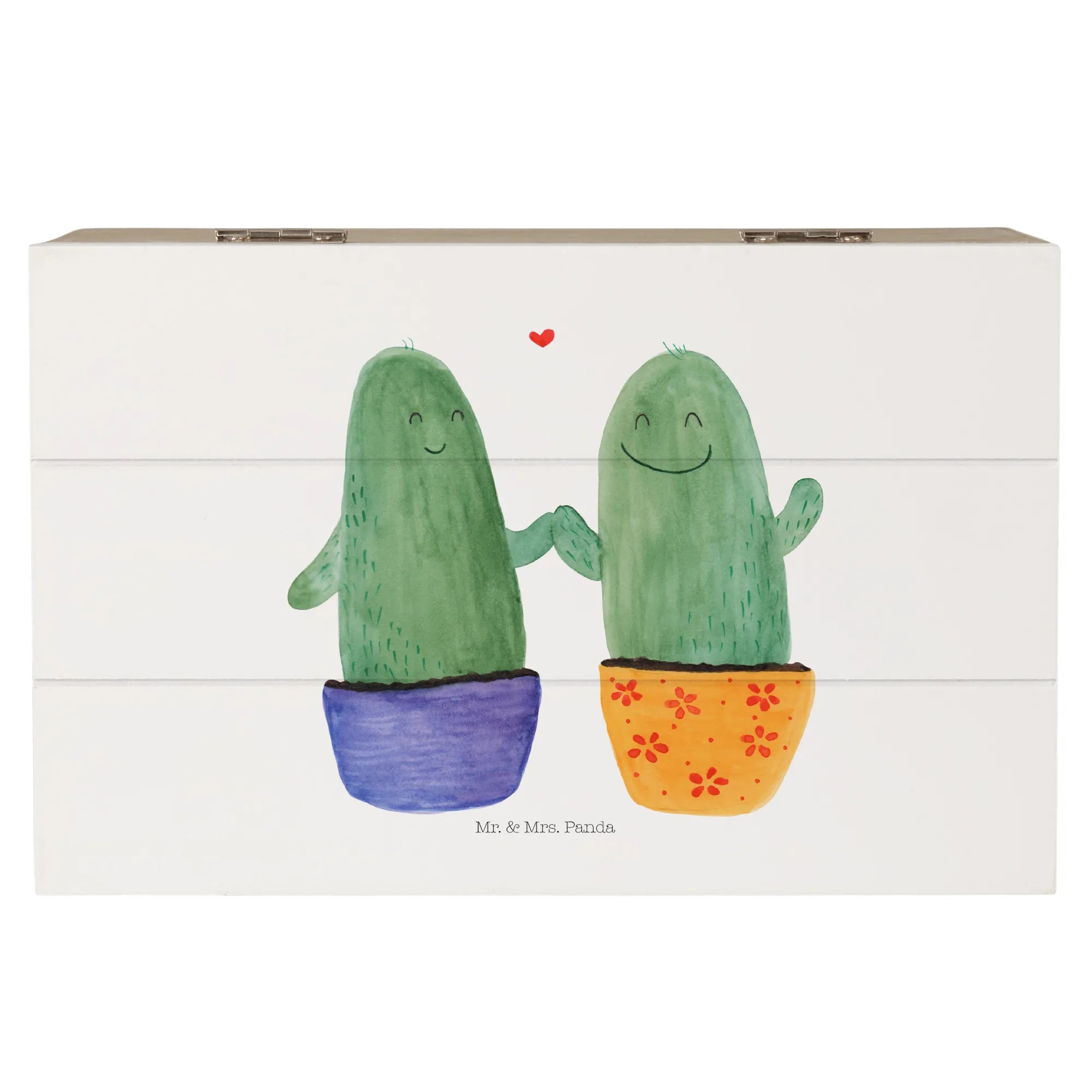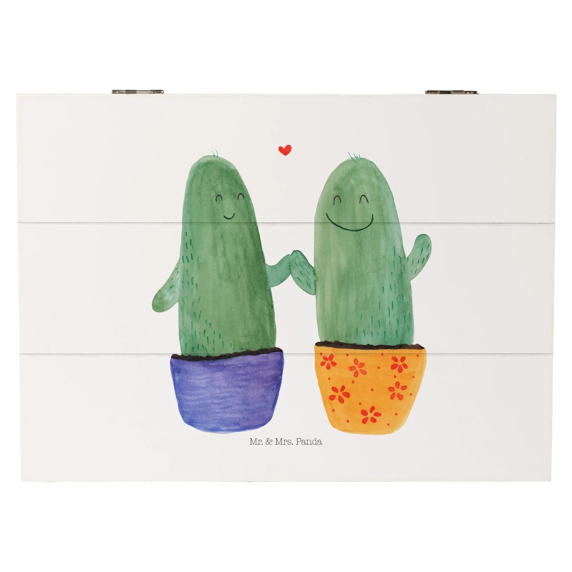 Die wunderschöne Holzkiste »Kaktus Liebe« von Mr. & Mrs. Panda ist das ideale Geschenk für alle, die die kleinen Freuden des Lebens lieben. Diese bezaubernde Kiste, die in zarten Aquarellfarben gestaltet ist, zeigt zwei fröhliche Kakteen, die einander glücklich anlächeln. Perfekt für Paare, Freunde oder zur Versöhnung nach einem Streit!