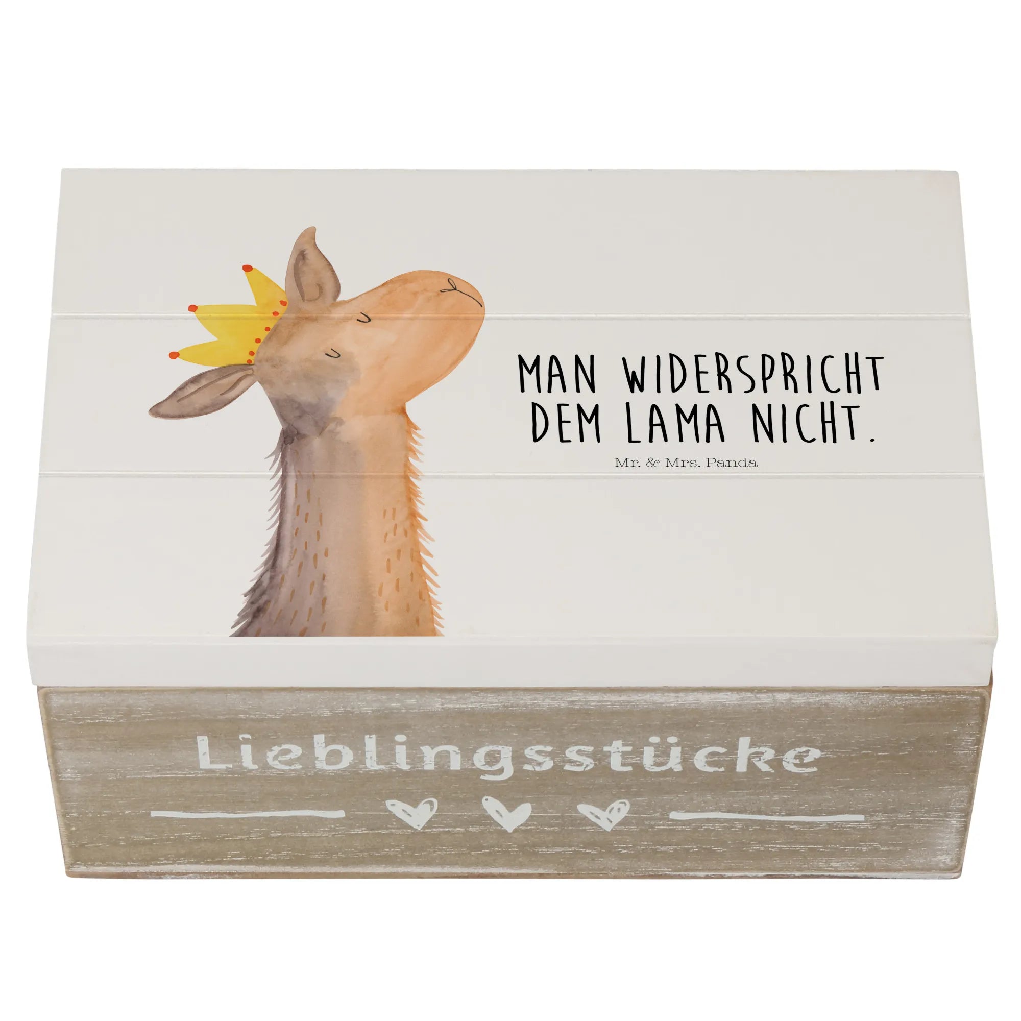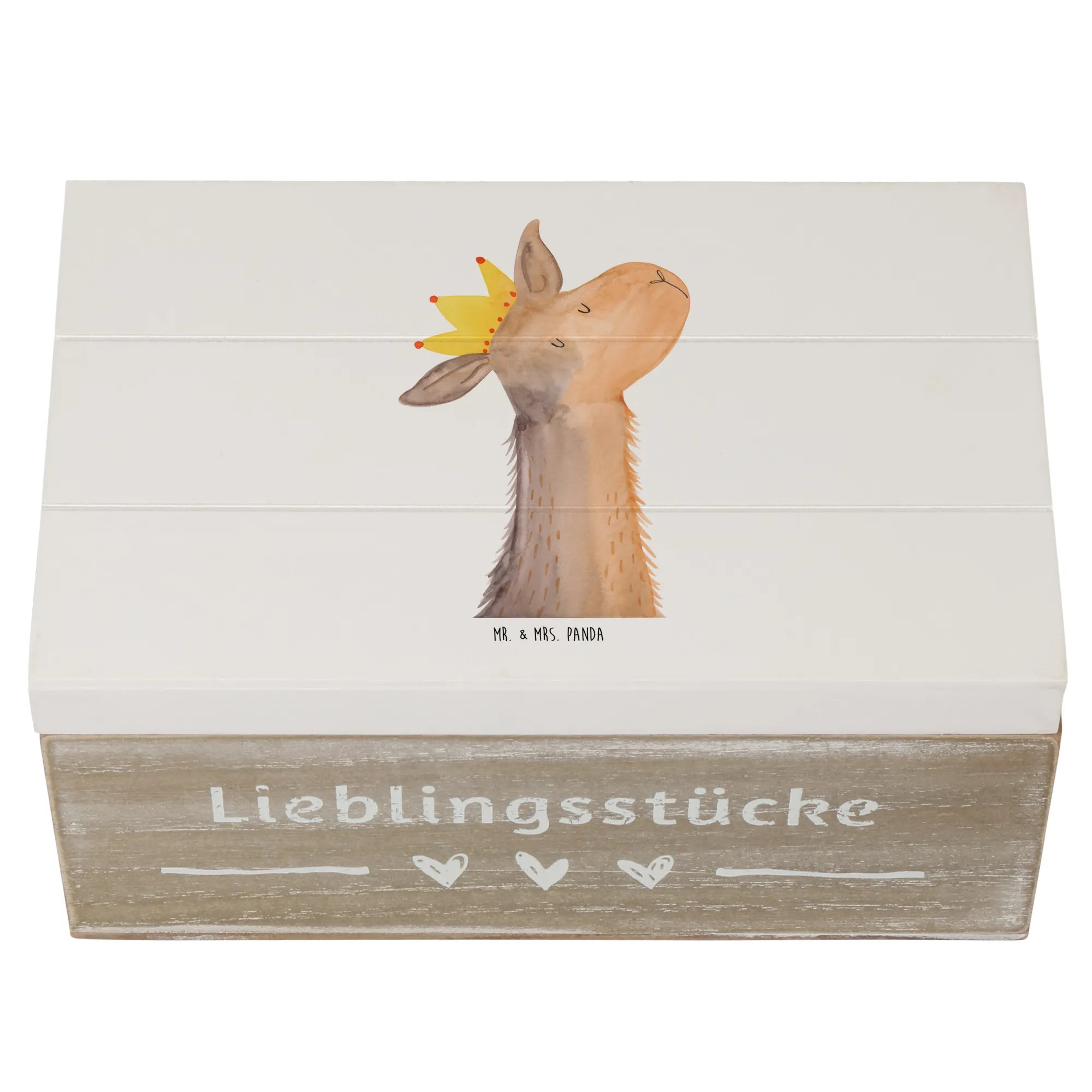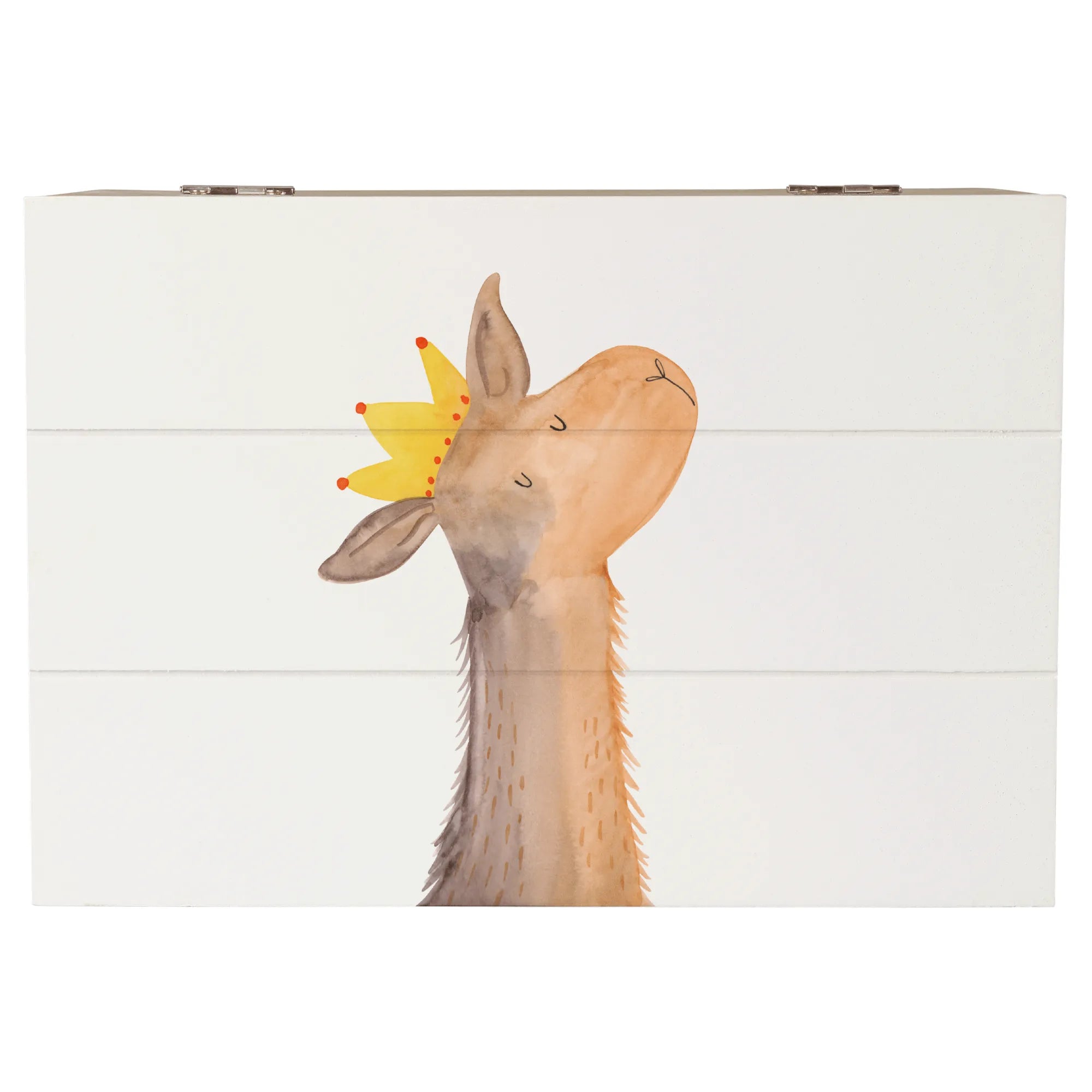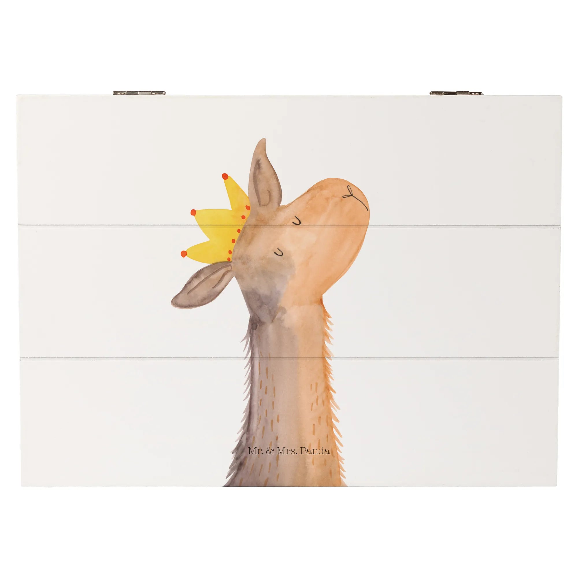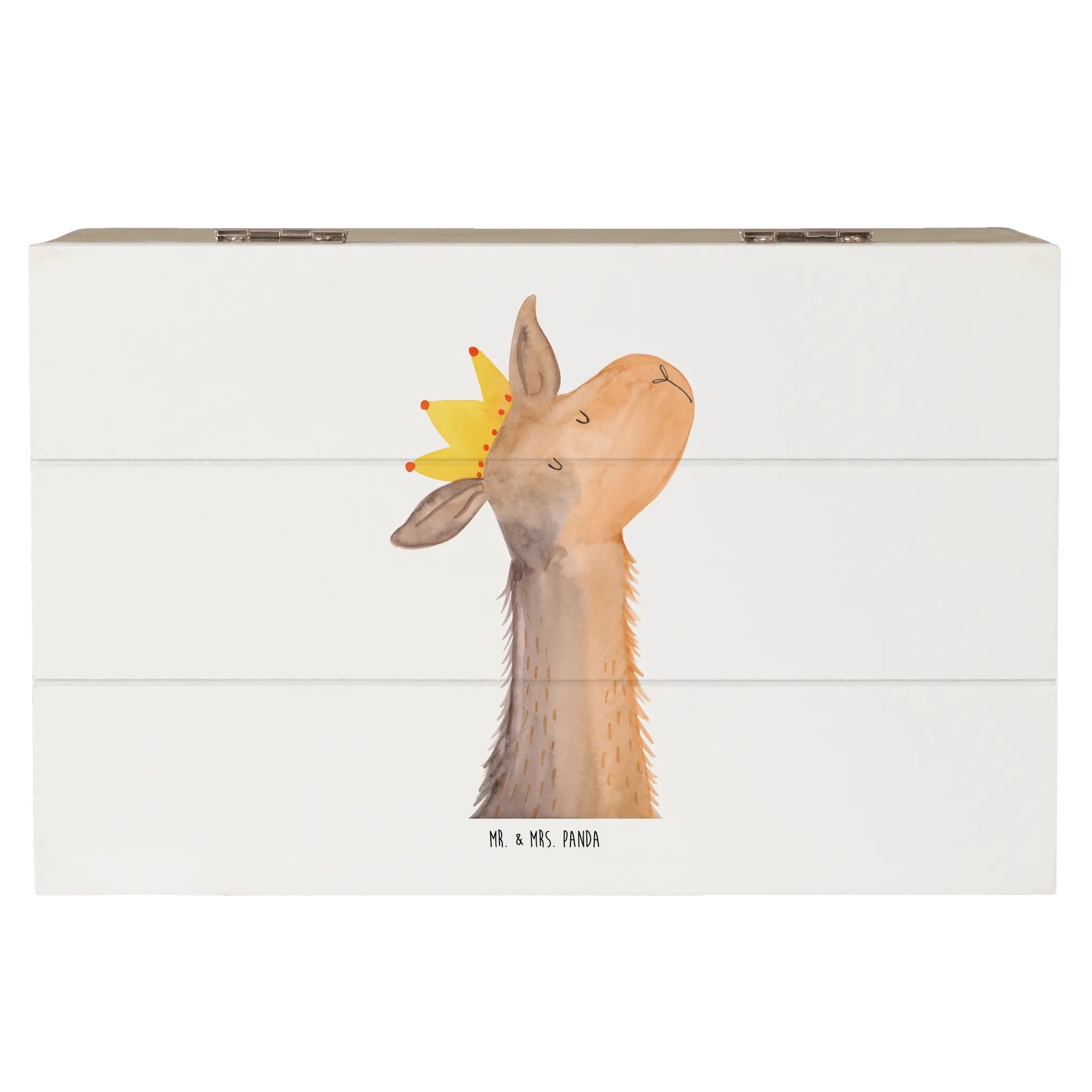 Die wunderschöne Holzkiste mit dem süßen Lamakopf König von Mr. & Mrs. Panda ist der perfekte Aufbewahrungsort für all deine kostbaren Schätze und Erinnerungen. Diese nicht personalisierbare Erinnerungskiste, mit den Maßen 220 mm x 150 mm x 120 mm, bietet perfekten Schutz für Fotos, kleine Spielsachen oder wichtige Dokumente.