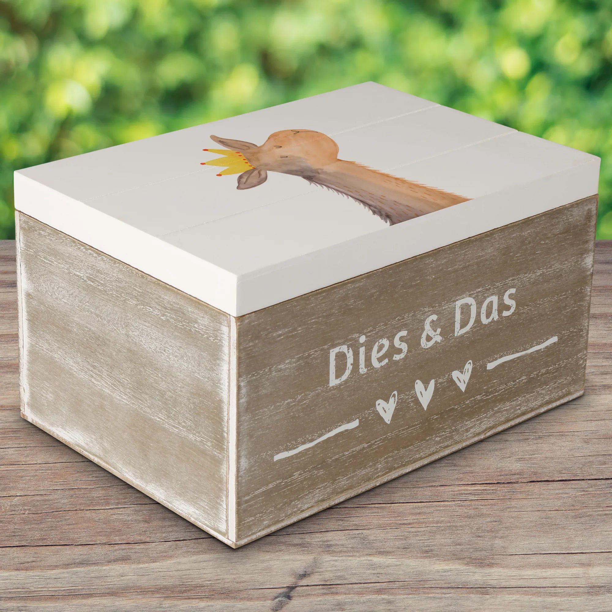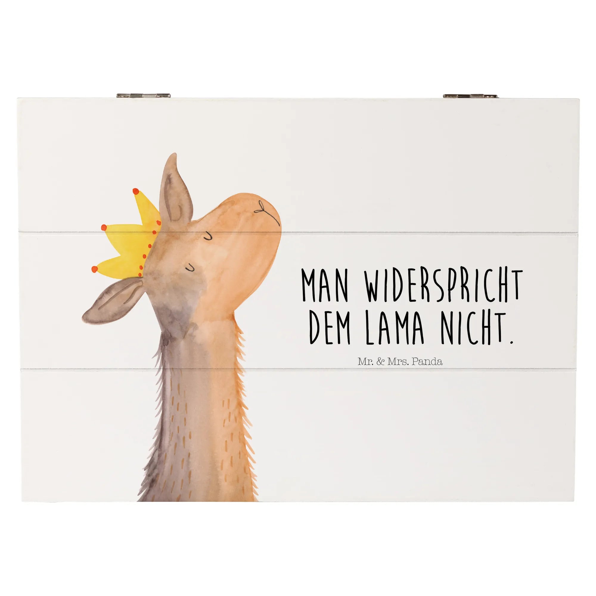Entdecke die zauberhafte Holzkiste "Lamakopf König" von Mr. & Mrs. Panda! Diese wunderschöne, robuste Kiste aus Premium Hartfaser ist nicht nur ein echter Blickfang, sondern auch die perfekte Aufbewahrungsmöglichkeit für deine schönsten Erinnerungen oder Schätze. Mit einem liebvoll handgezeichneten Lamakopf, der mit einer Krone geschmückt ist, verkörpert diese Kiste die Coolness und den Charme der Lama-Welt.