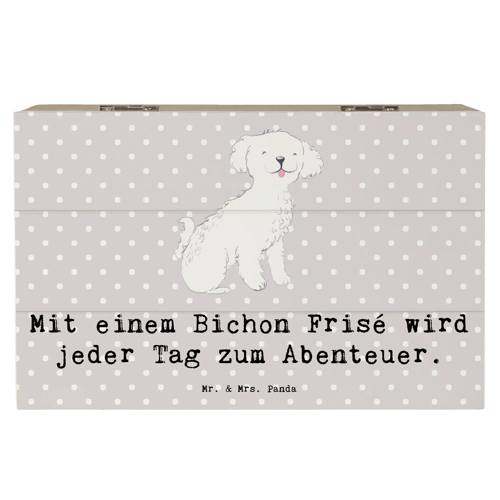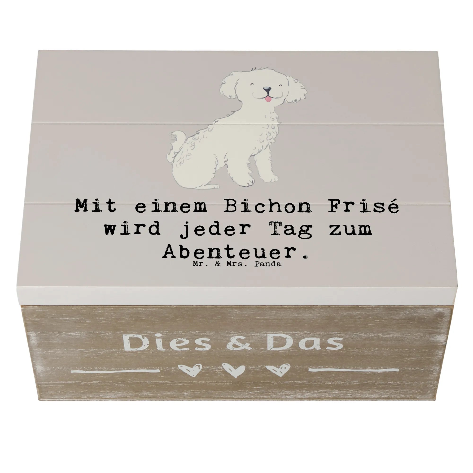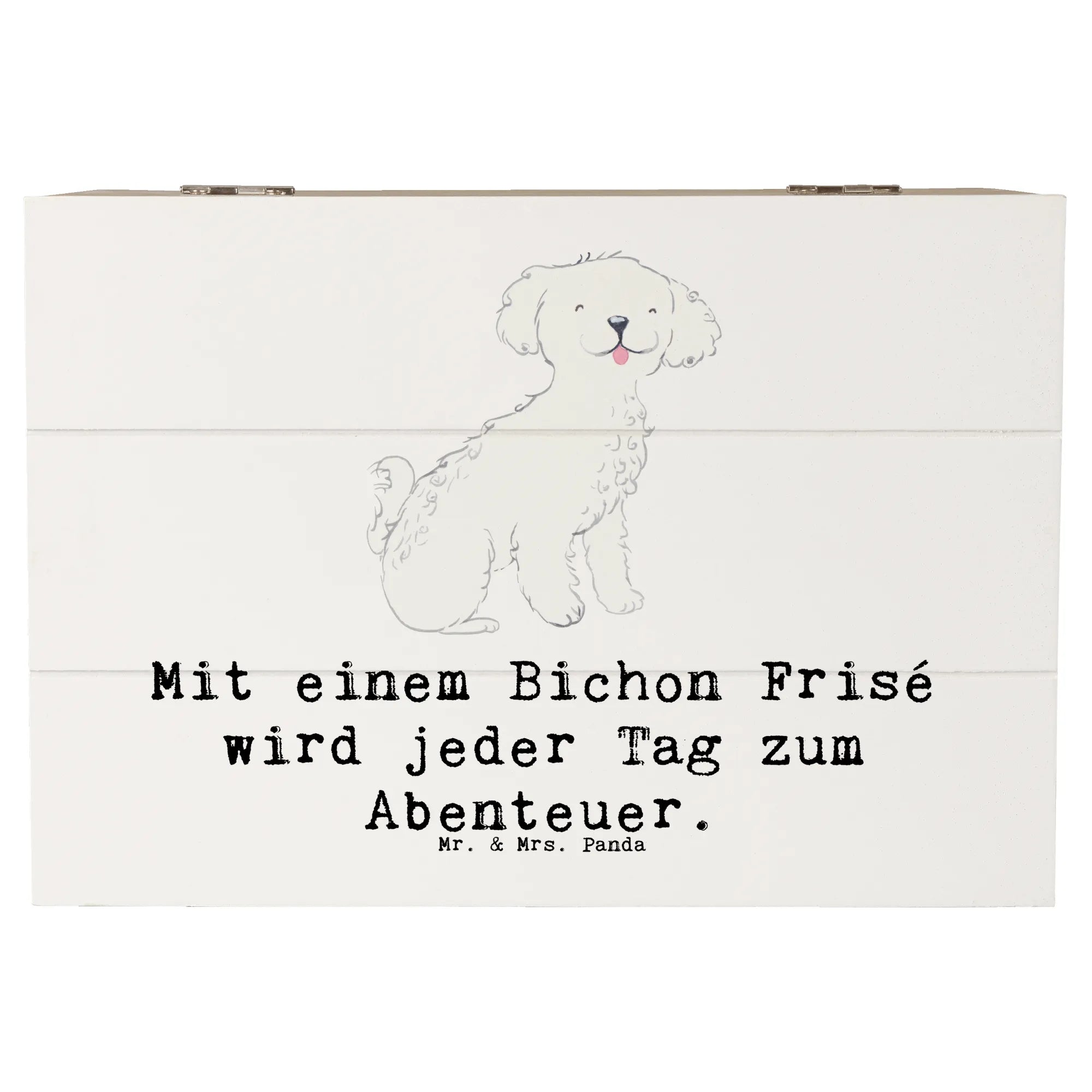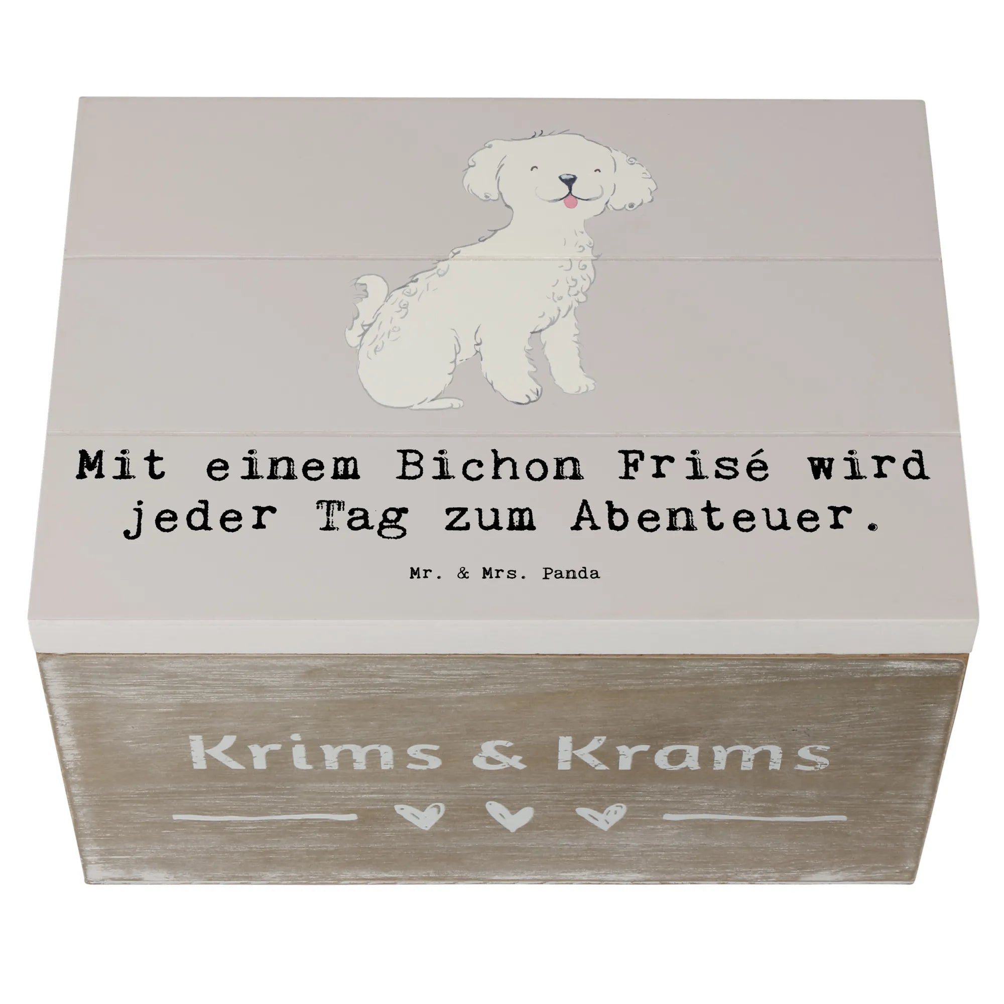 Ob Du Erinnerungen an die Kindheit, Fotos oder kleine Schätze aufbewahren möchtest, diese Erinnerungskiste bietet ausreichend Platz und sieht dabei fantastisch aus. Konzipiert mit dem süßen Motiv des Bichon Frisé und dem inspirierenden Spruch \\"Mit einem Bichon Frisé wird jeder Tag zum Abenteuer.\\", eignet sie sich ideal als Dekokiste oder Geschenkdose.