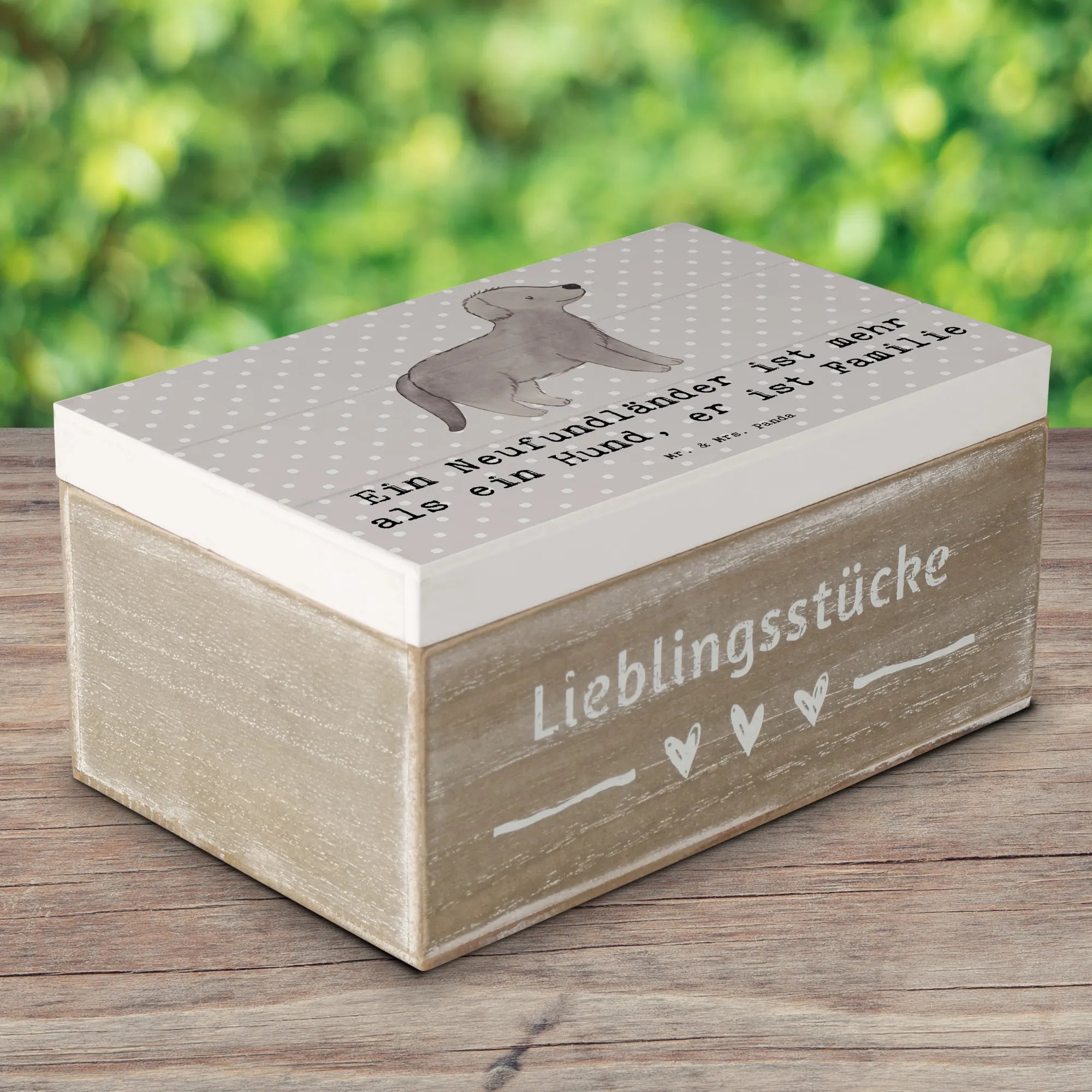 Die wunderschöne Holzkiste von Mr. & Mrs. Panda mit dem niedlichen Neufundländer-Motiv ist das perfekte Geschenk für alle Hundefans! Egal, ob du eine Erinnerungskiste für besondere Anlässe wie Geburtstage, Kommunion oder Hochzeiten suchst oder einfach nur einen schönen Ort für deine Kostbarkeiten willst, diese Schatzkiste wird deinen Bedürfnissen gerecht.