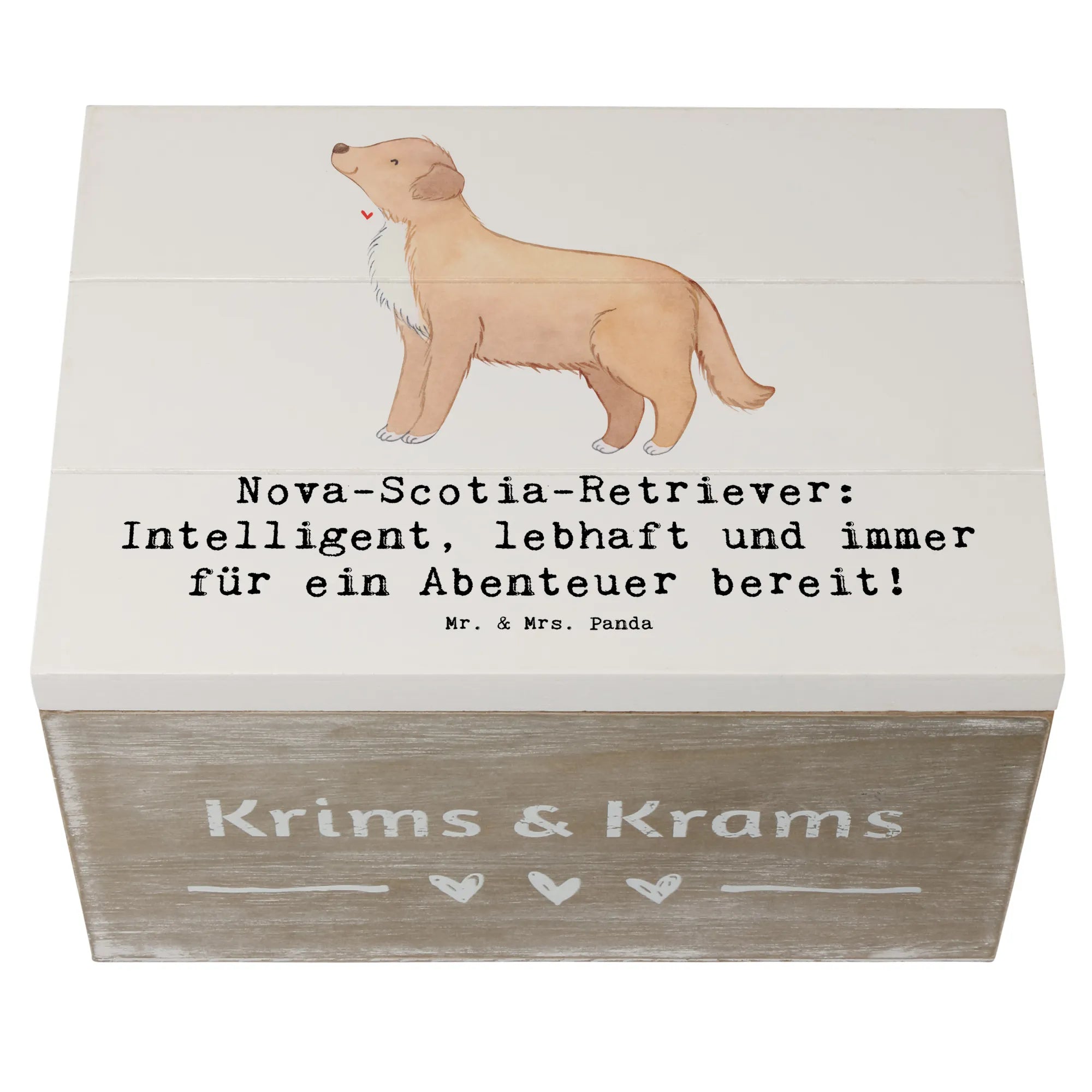 Entdecke die wunderschöne Holzkiste von Mr. & Mrs. Panda, die mit einem liebevollen Motiv des Nova Scotia Duck Tolling Retriever verziert ist. Diese bezaubernde Schatzkiste ist nicht nur ein perfekter Aufbewahrungsort für all deine wertvollen Erinnerungen, sondern auch ein echtes Schmuckstück in jedem Raum.