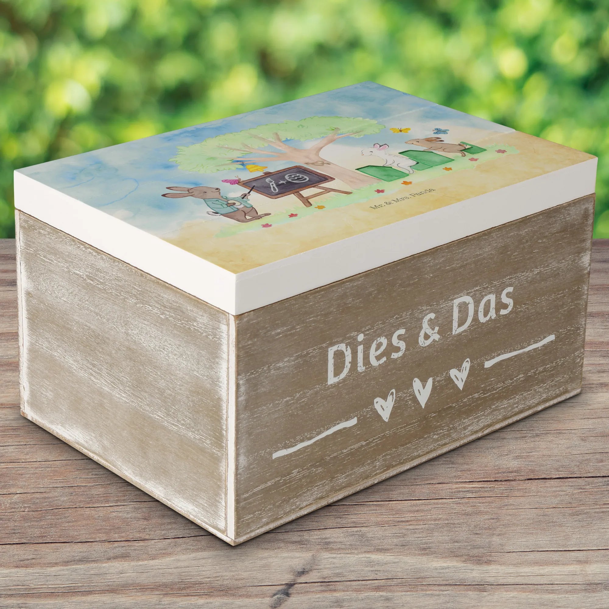 Entdecke die traumhafte Holzkiste "Osterhasenschule" von Mr. & Mrs. Panda! Diese wunderschöne Kiste ist nicht nur ein echter Hingucker, sondern auch der perfekte Platz für all deine kleinen Schätze und Erinnerungen.