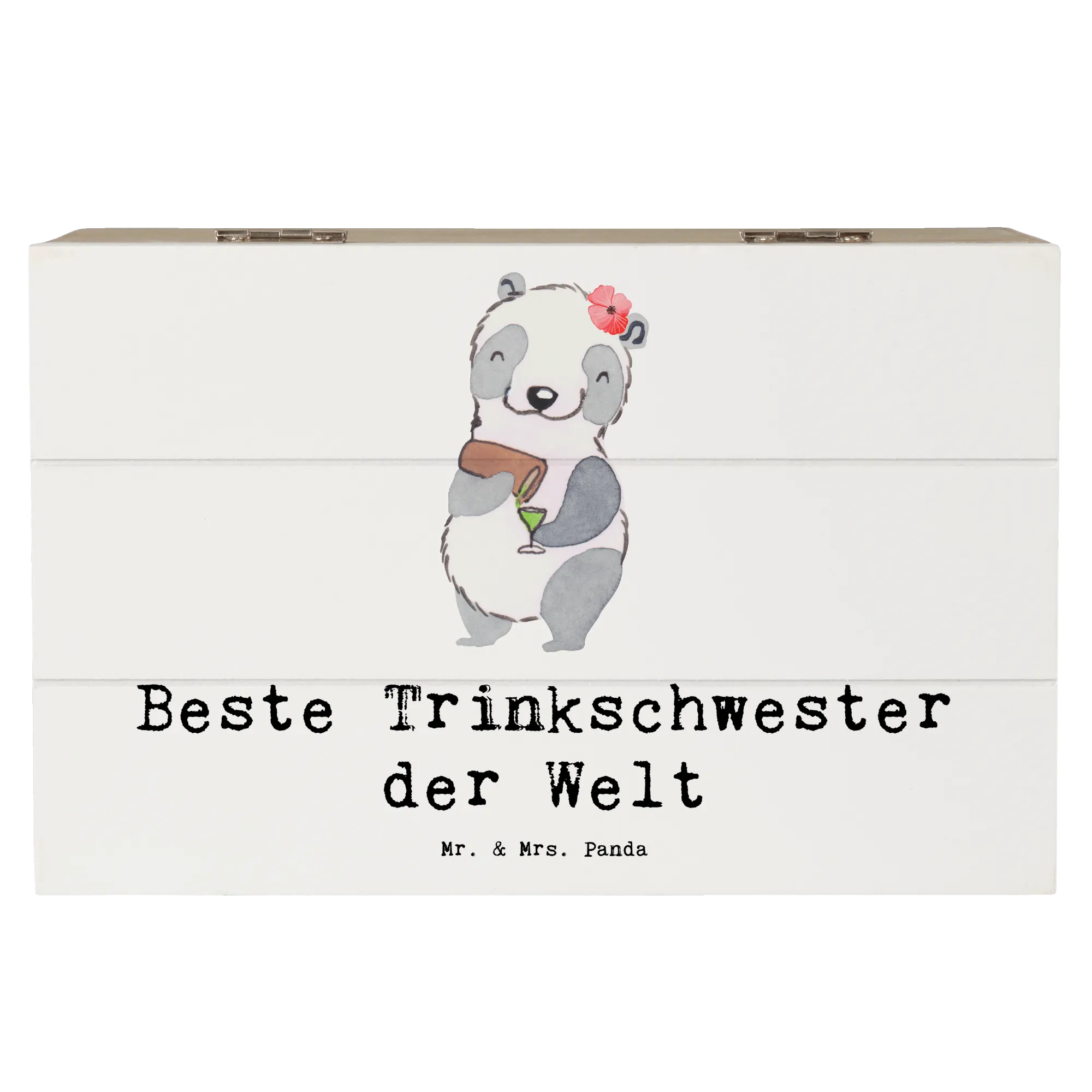 Holzkiste Panda Beste Trinkschwester der Welt - 22 x 15 cm - Weiß