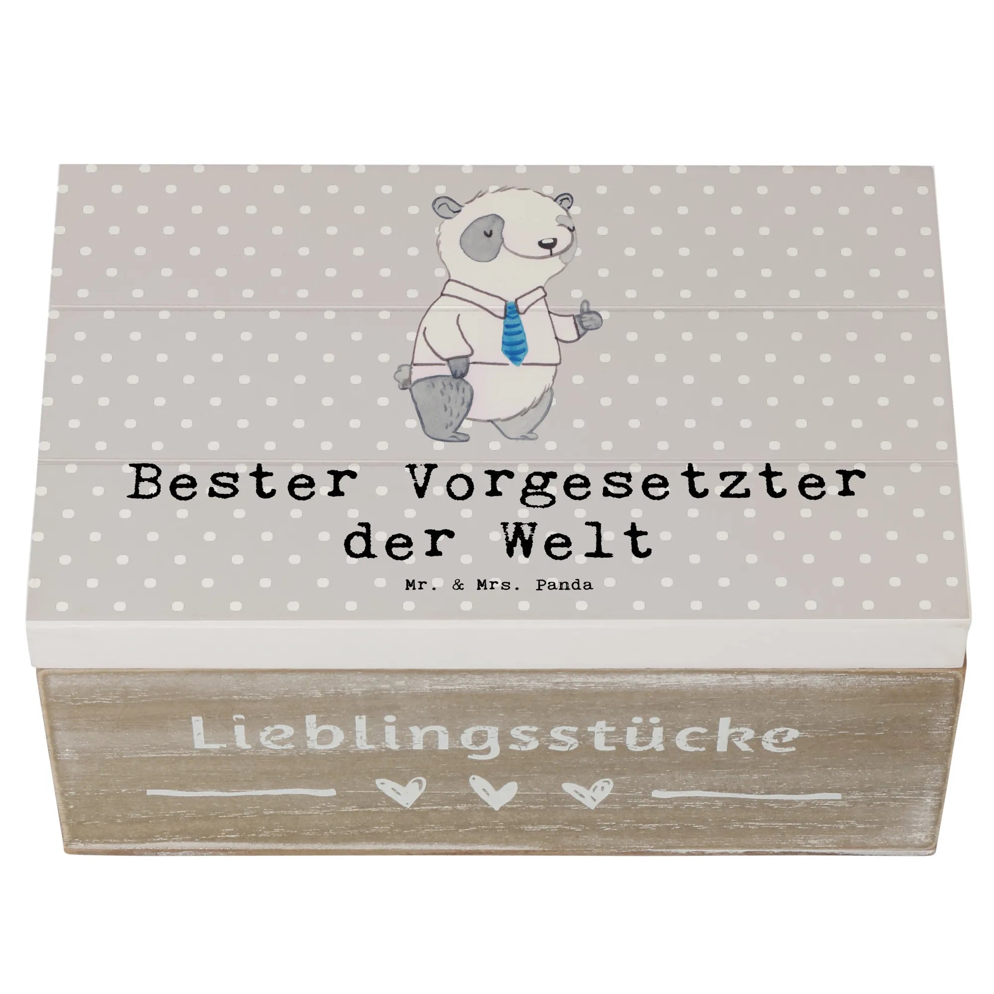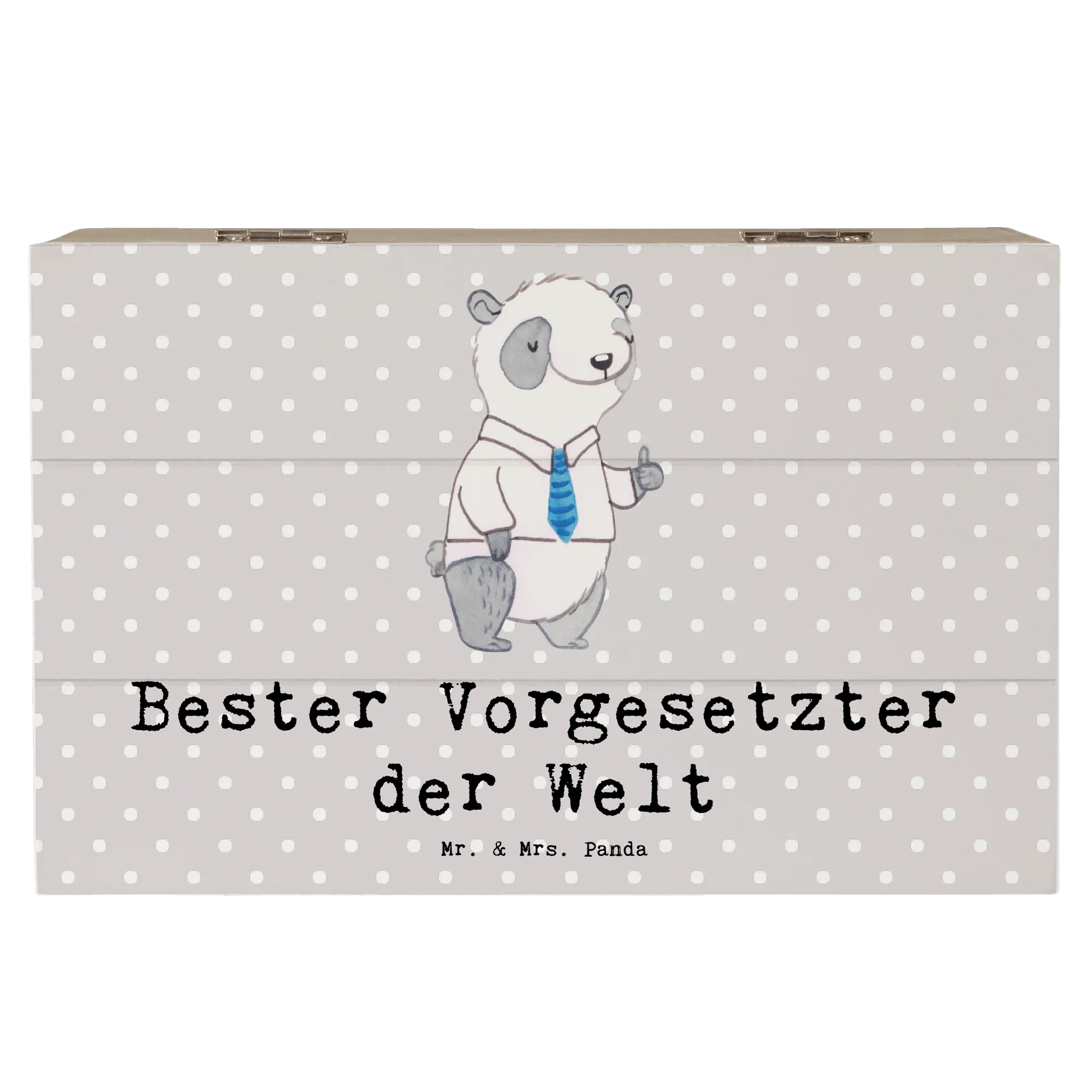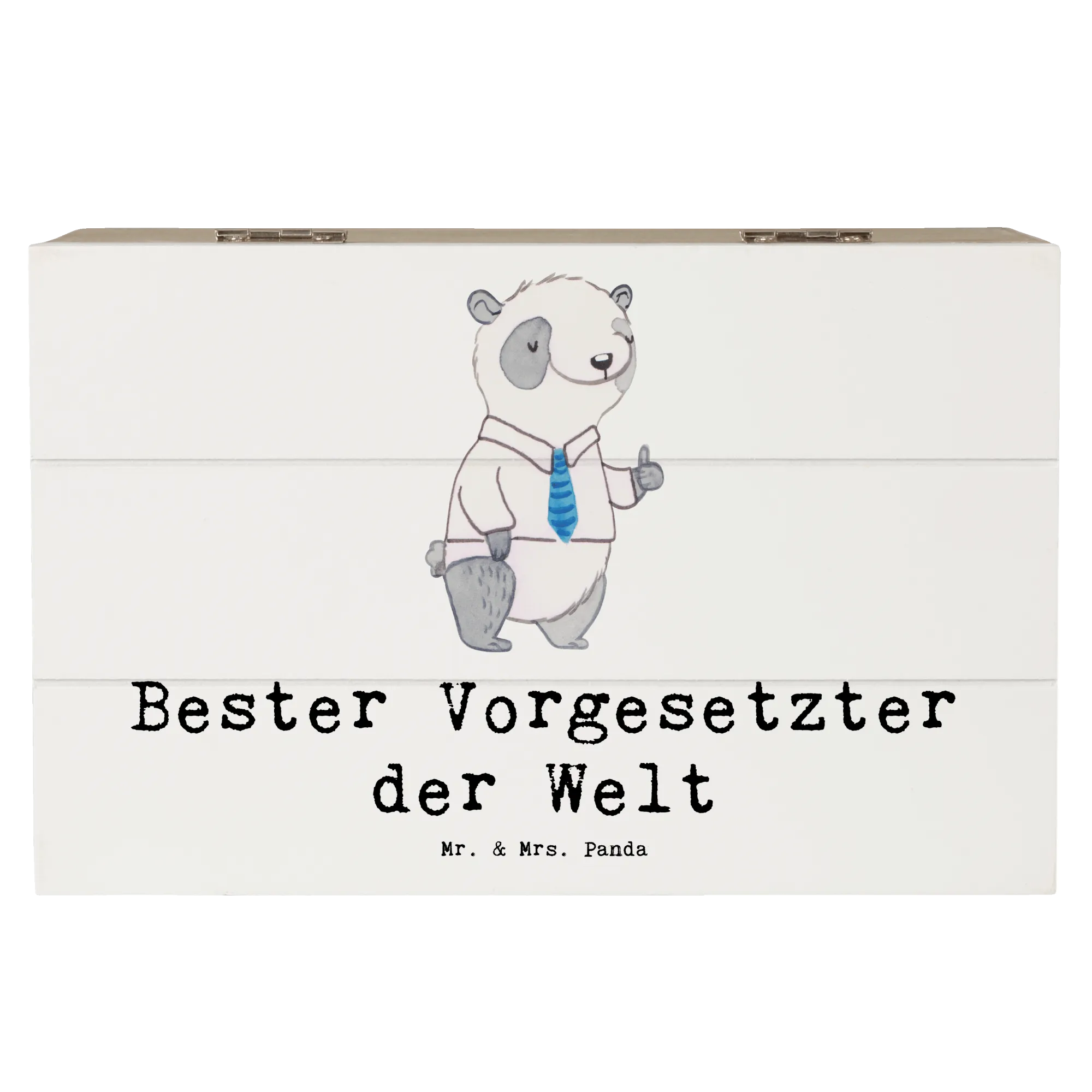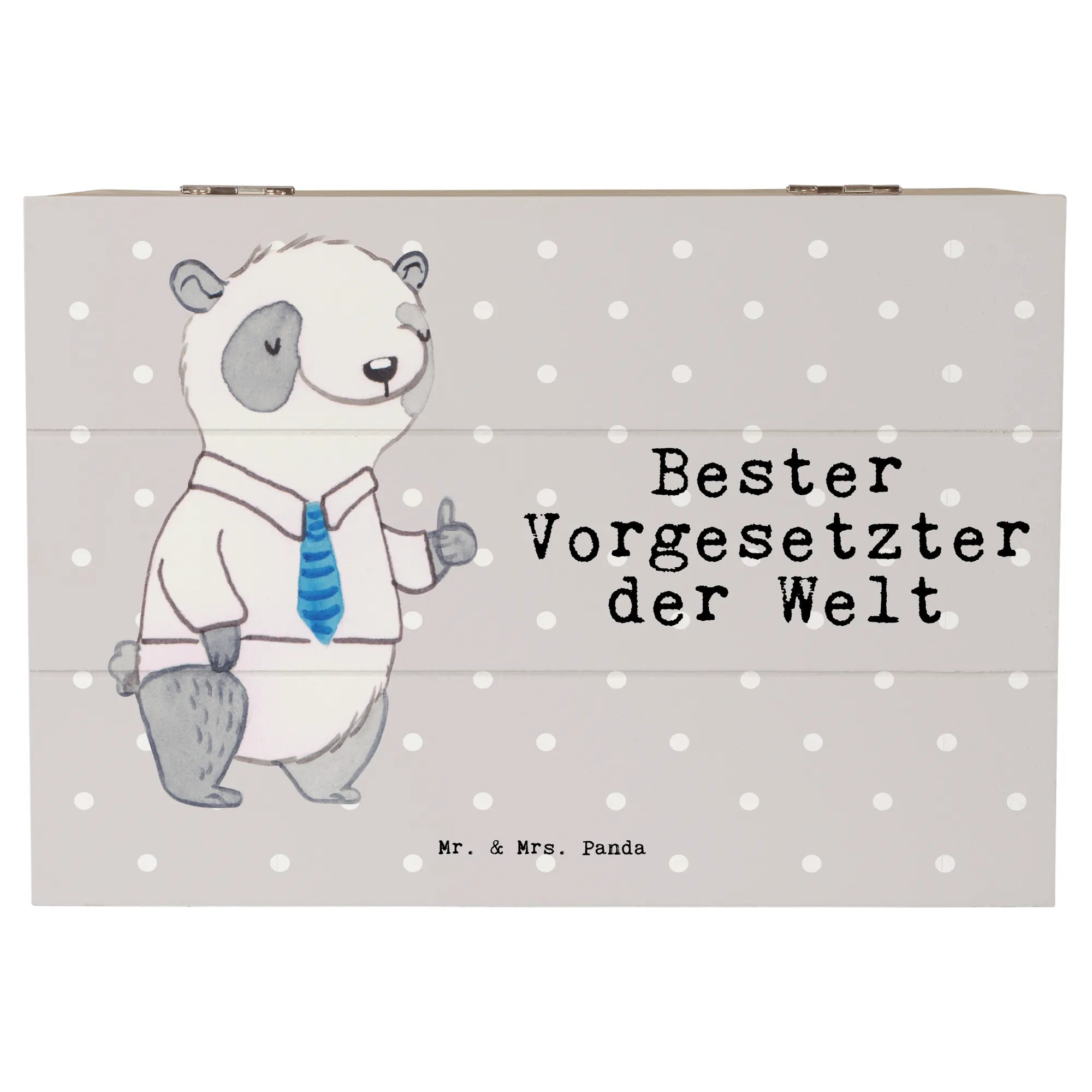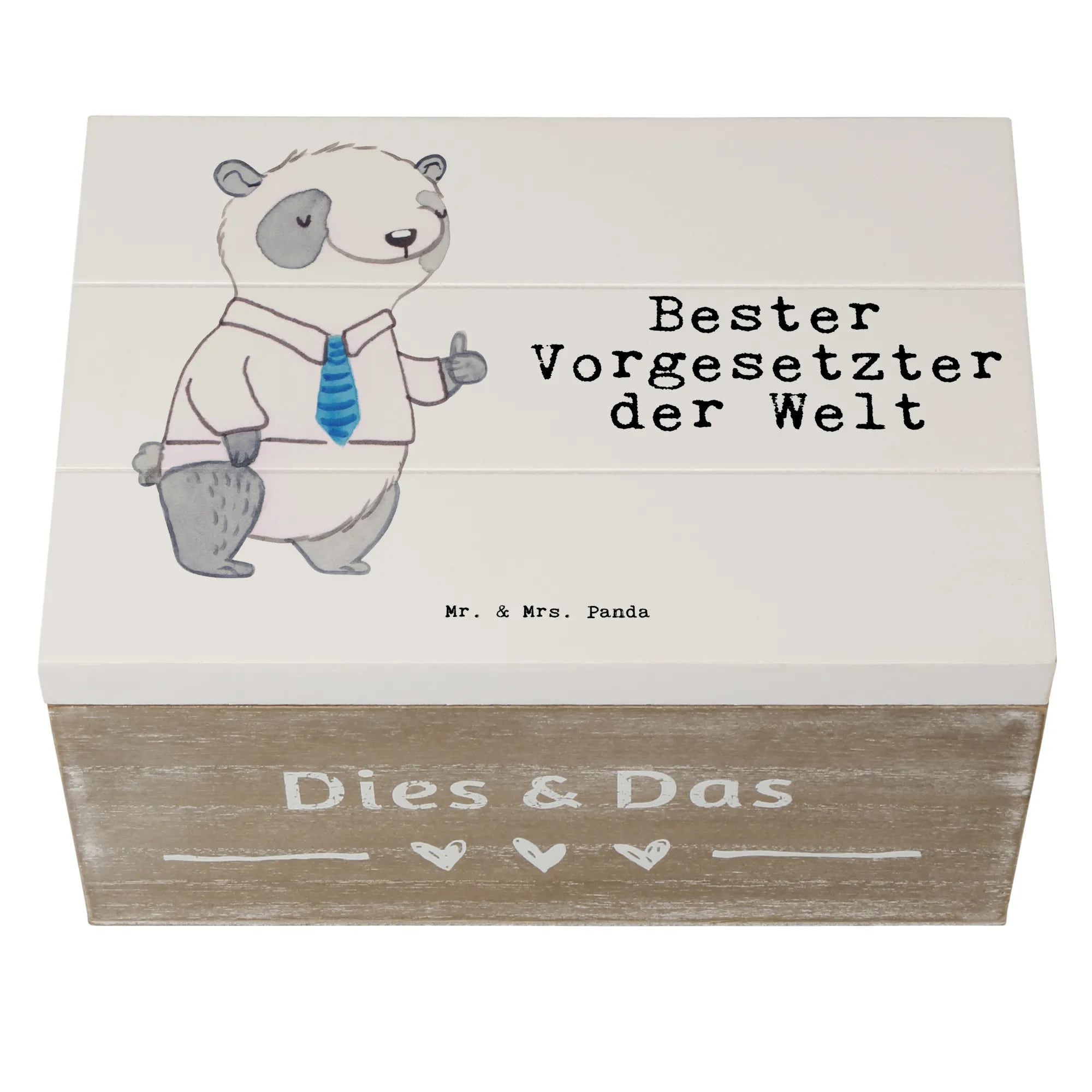 Die wunderschöne Holzkiste "Bester Vorgesetzter der Welt" von Mr. & Mrs. Panda ist ein ganz besonderes Geschenk für all jene, die in ihrem Beruf herausragende Führungskräfte unterstützen oder wertschätzen möchten. Diese edle Kiste ist nicht nur ein praktischer Aufbewahrungsort für Erinnerungen und Schätze, sondern auch ein kreatives, nachhaltiges Geschenk.💖 Mit einem süßen Panda im Hemd und Krawatte, der den Daumen nach oben hält, wird sie zu einem wahren Blickfang auf jedem Schreibtisch und lässt Herzen höher schlagen. 💼