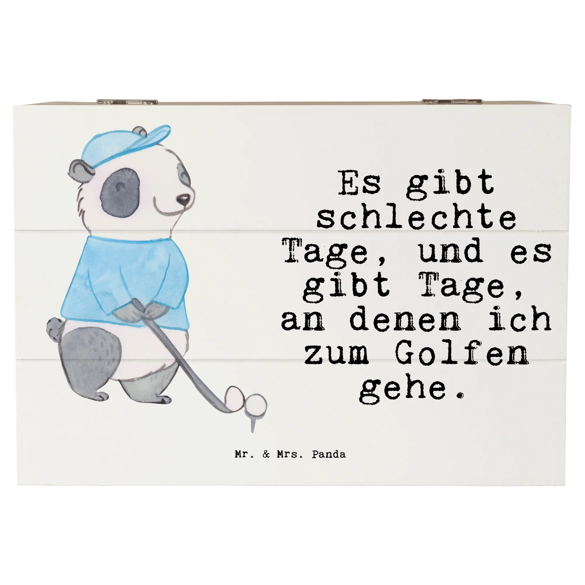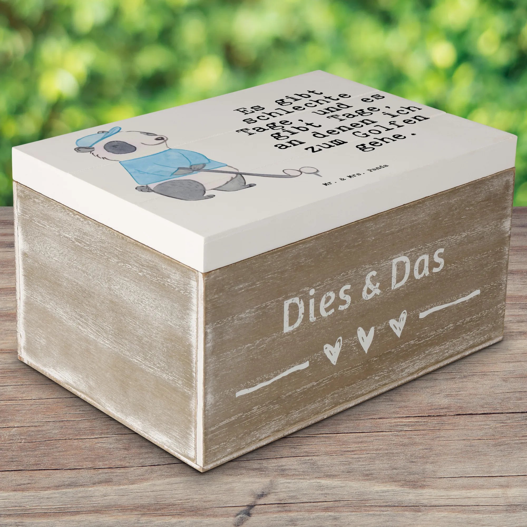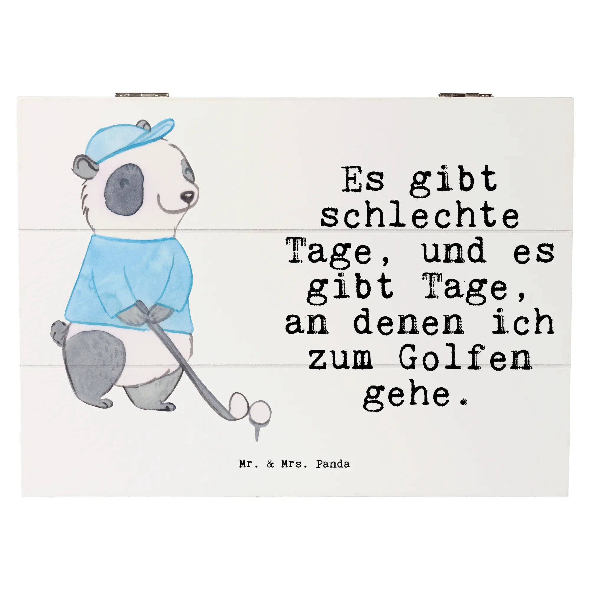 Die wunderschöne Holzkiste von Mr. & Mrs. Panda mit dem Motiv "Panda Golfen Tage" ist das perfekte Geschenk für alle Golf-Enthusiasten. Ob du einen leidenschaftlichen Golfer in deinem Freundeskreis hast oder selbst ein begeisterter Spieler bist, diese Kiste ist genau das Richtige!