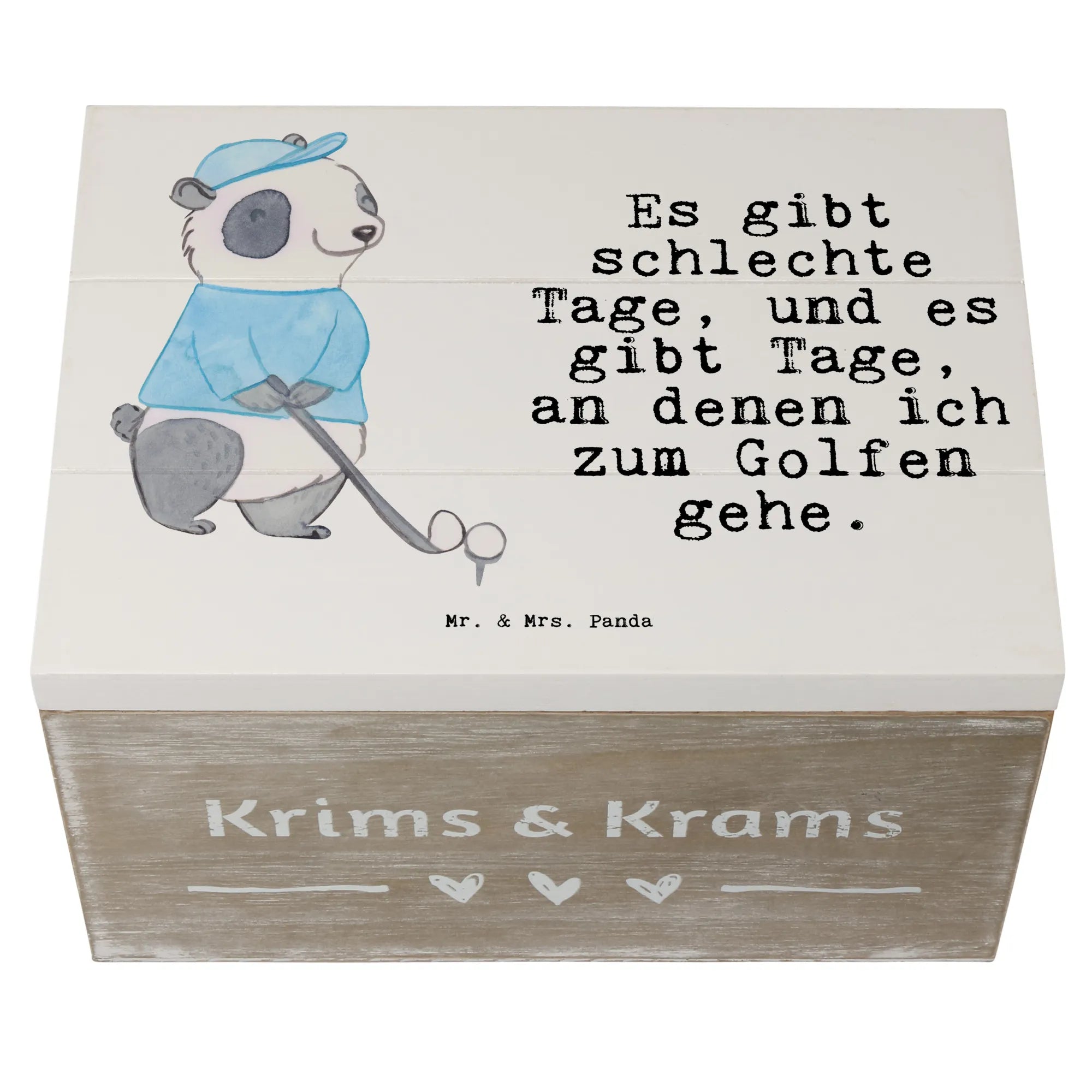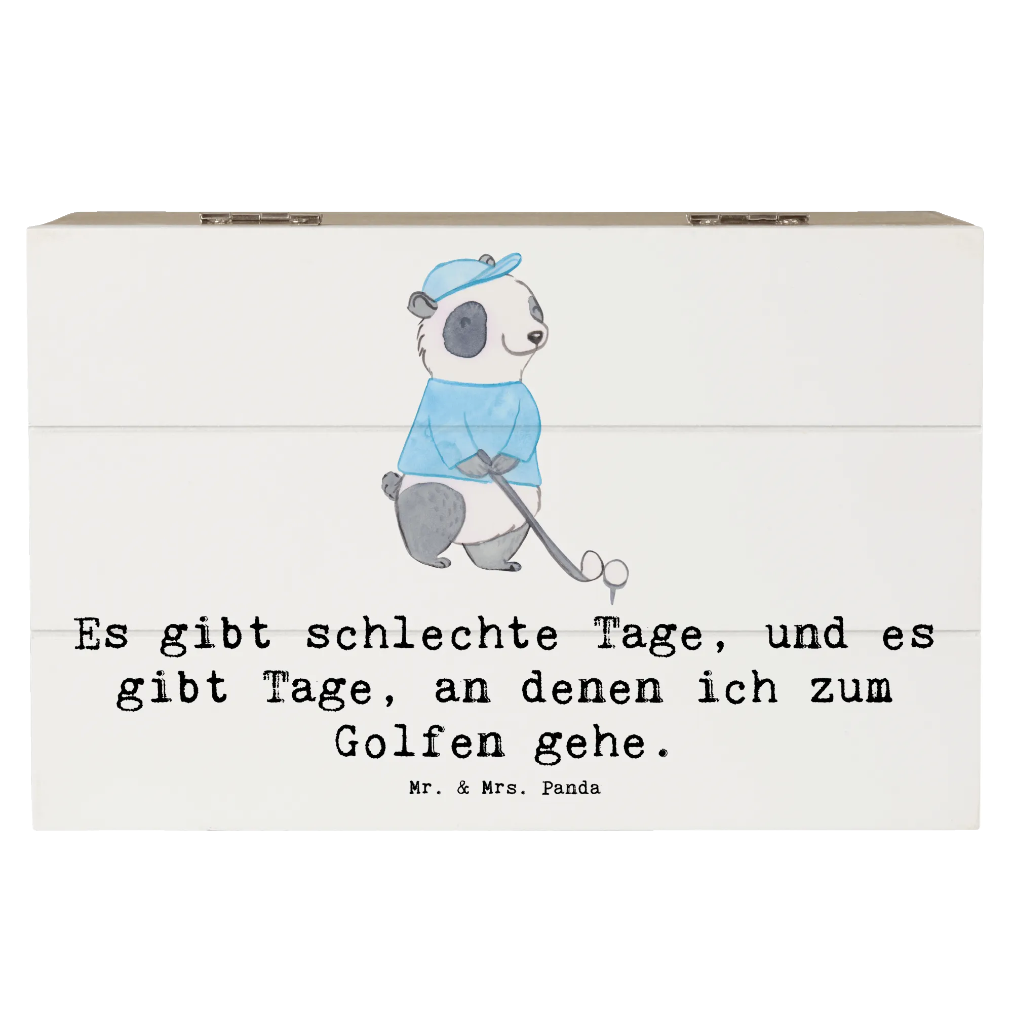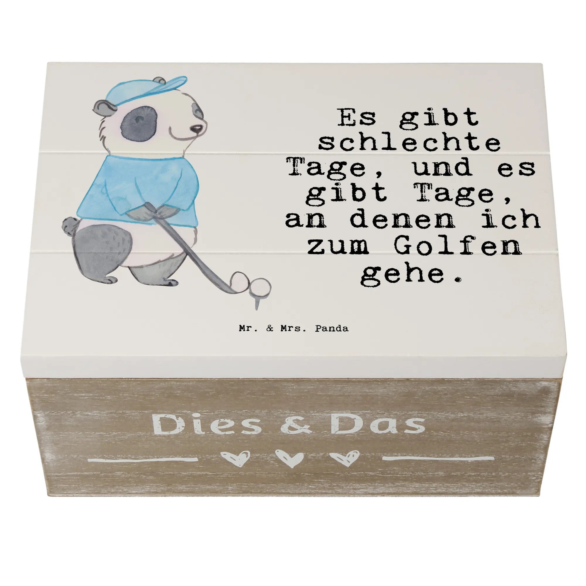 Die wunderschöne Holzkiste von Mr. & Mrs. Panda mit dem Motiv "Panda Golfen Tage" ist das perfekte Geschenk für alle Golf-Enthusiasten. Ob du einen leidenschaftlichen Golfer in deinem Freundeskreis hast oder selbst ein begeisterter Spieler bist, diese Kiste ist genau das Richtige!