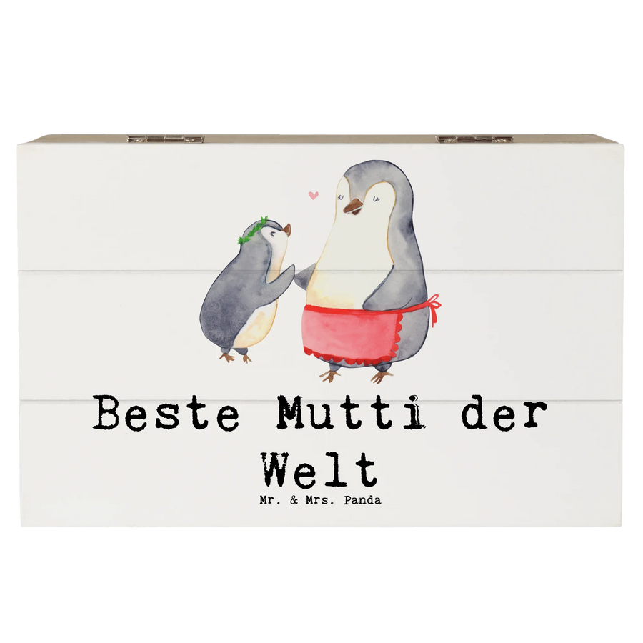 Entdecke die bezaubernde Holzkiste mit dem niedlichen Pinguin Motiv 'Beste Mutti der Welt' von Mr. & Mrs. Panda! Diese wunderschöne Kiste ist nicht nur ein echter Hingucker, sondern auch unglaublich praktisch. Sie stammt aus der wenn das Herz höher schlägt Kollektion ‚Beziehungen‘, die mit liebevollen Motiven und Sprüchen gefüllt ist.
