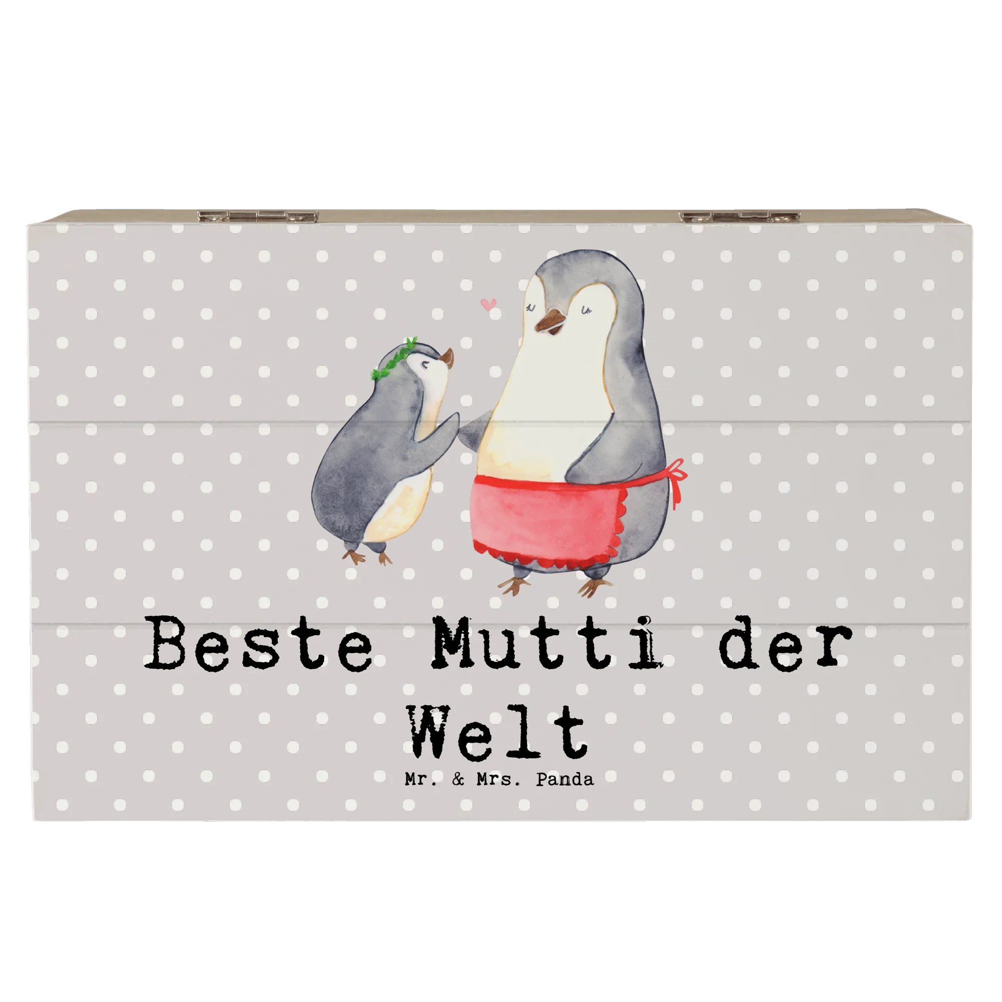 Es gibt Geschenke, die bleiben für immer im Herzen – und die wunderschöne Holzkiste "Pinguin Beste Mutti der Welt" von Mr. & Mrs. Panda ist genau so ein Zauberkästchen! Diese liebevoll gestaltete Erinnerungsbox ist nicht nur ein toller Aufbewahrungsort für all die kleinen Schätze, die du über die Jahre sammelst, sondern auch ein ganz besonderes Geschenk für die beste Mama der Welt. Egal ob zum Muttertag, als Dankeschön oder einfach nur so, mit dieser Kiste machst du deiner Mama eine riesige Freude.