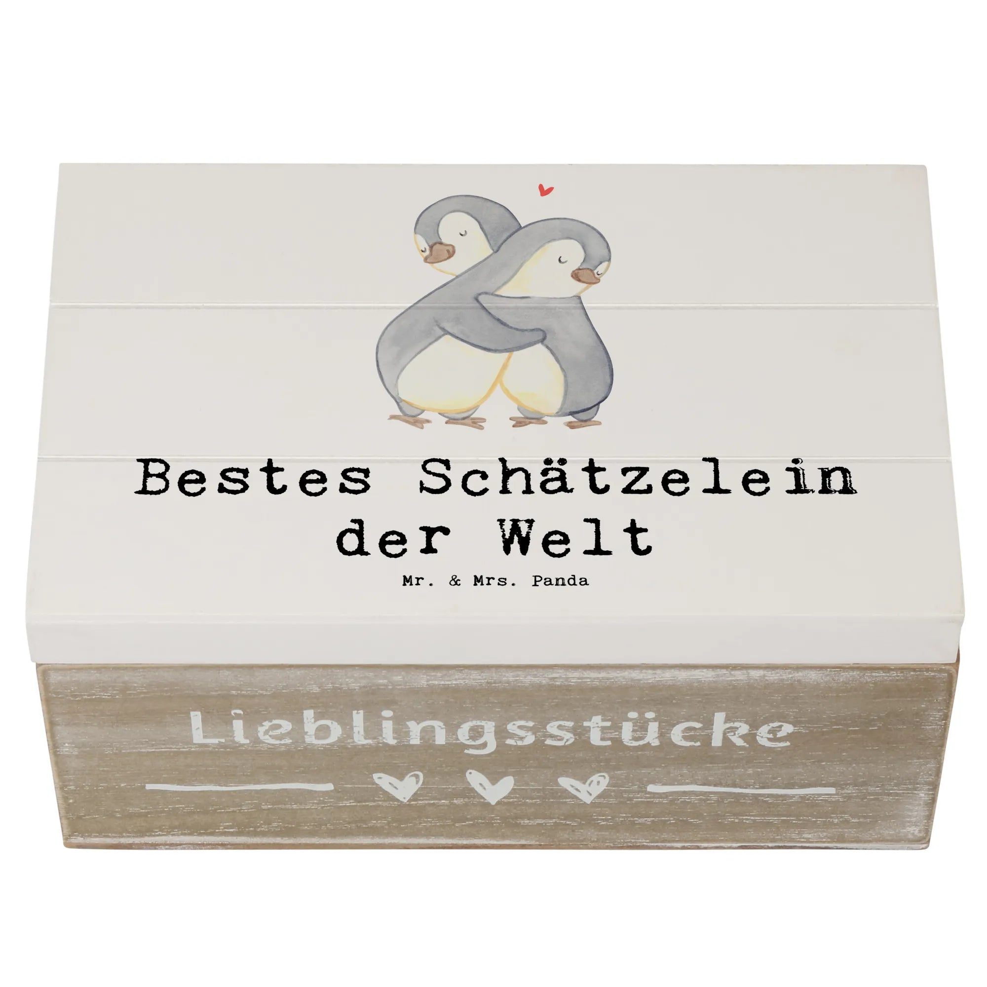 Holzkiste Pinguin Bestes Schätzelein der Welt - 22 x 15 cm - Weiß