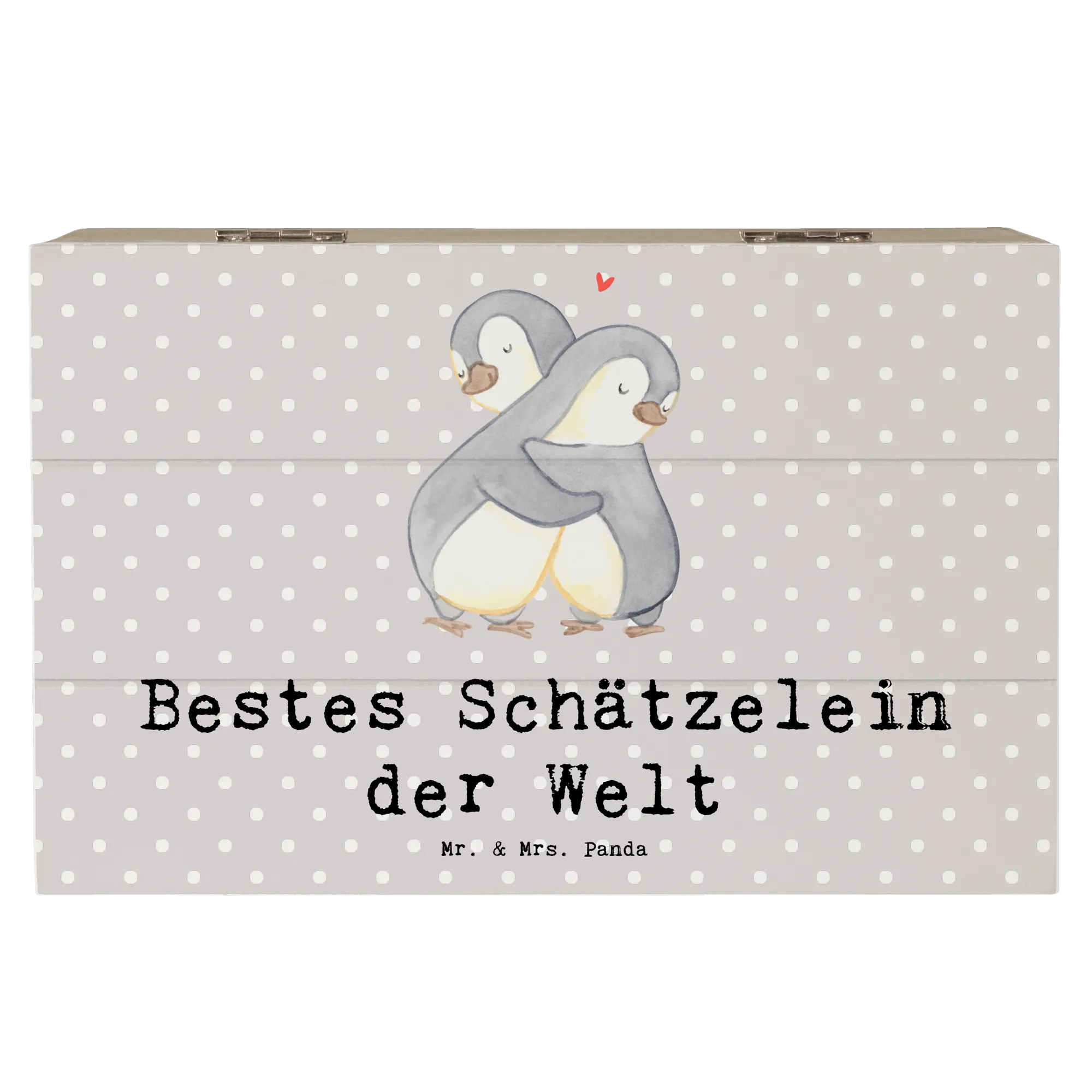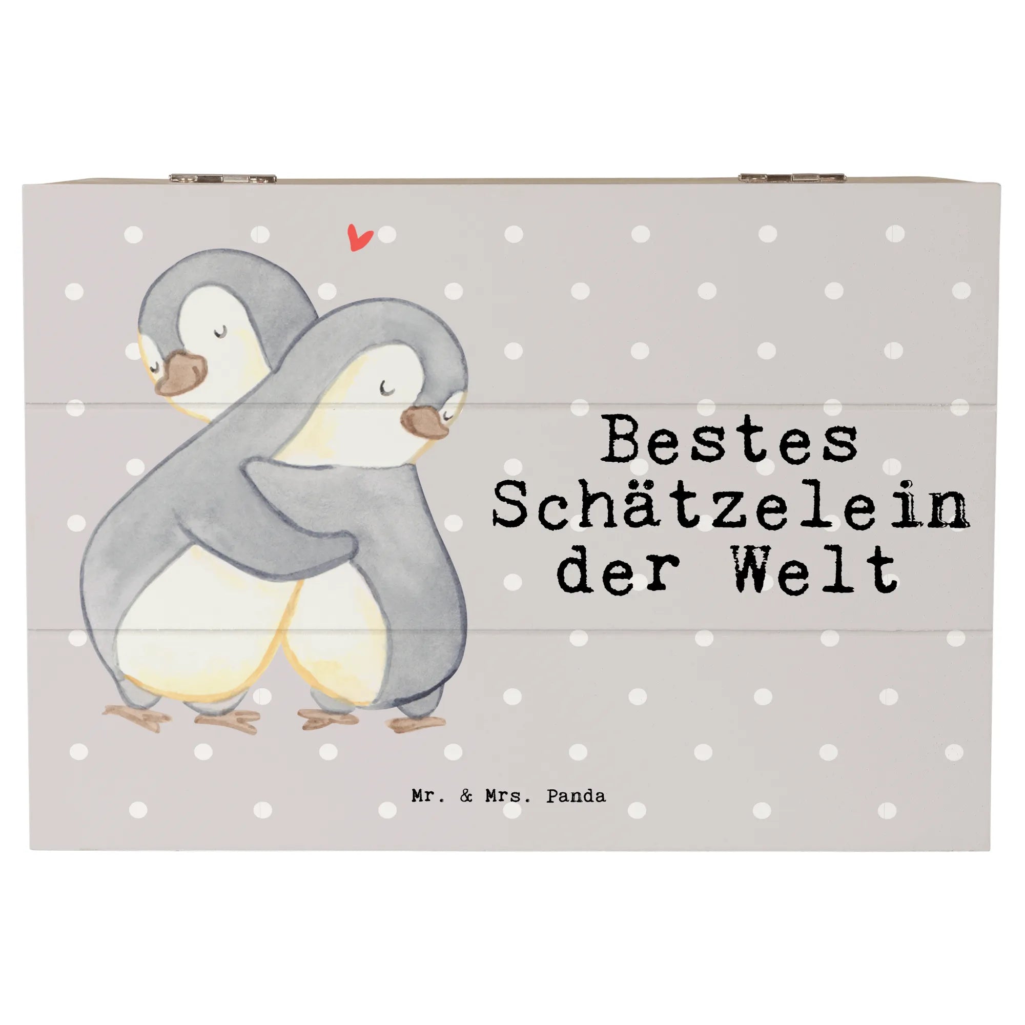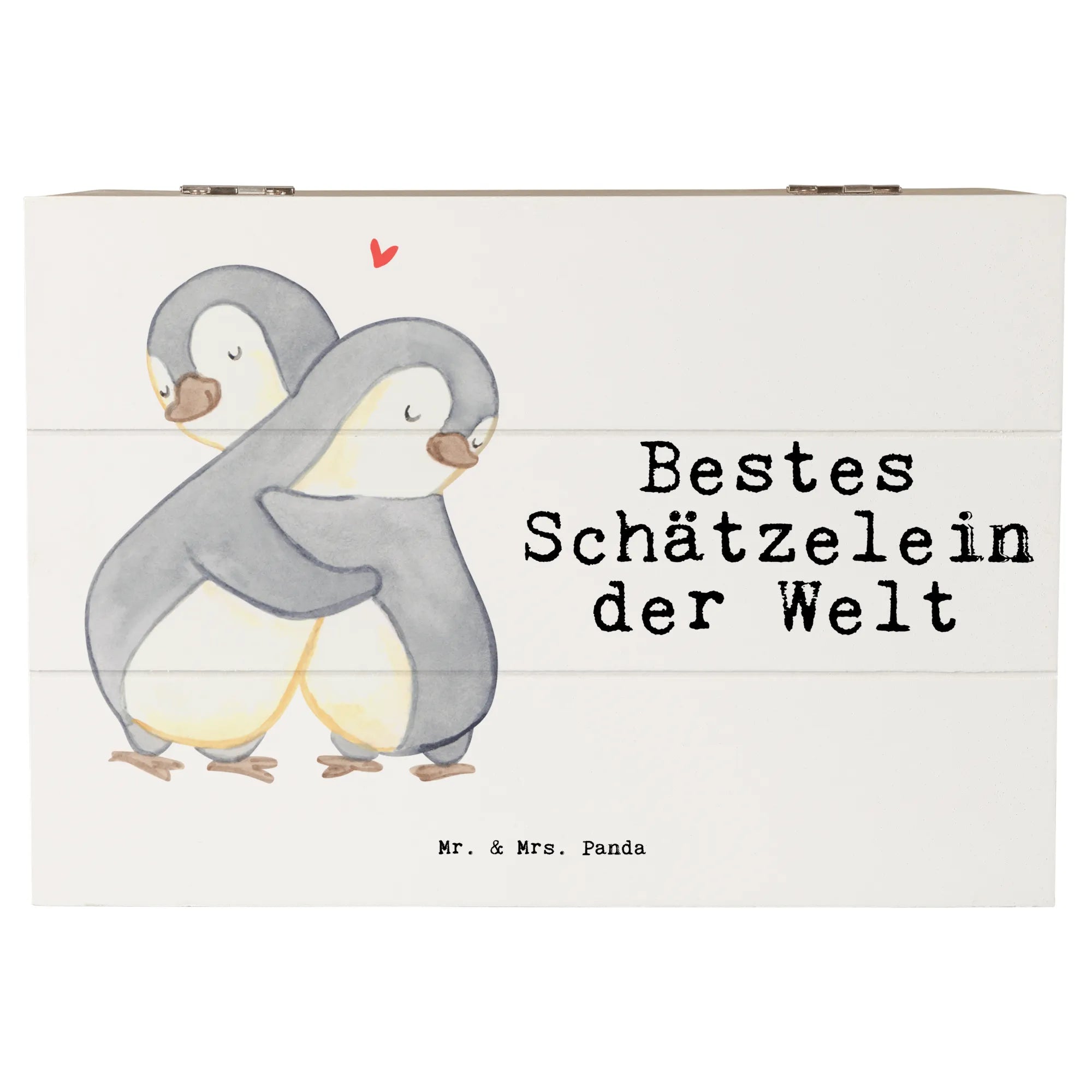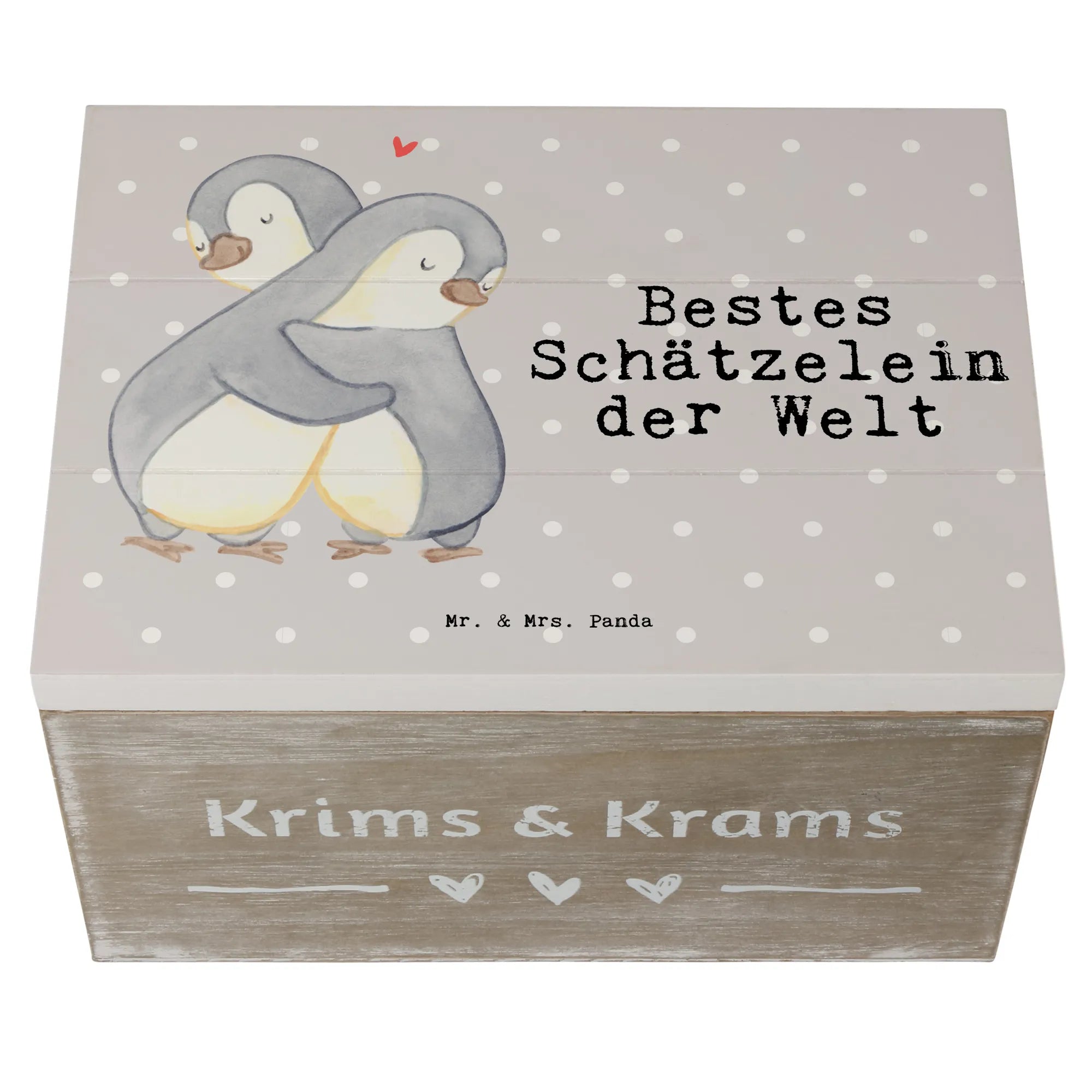 Entdecke die bezaubernde Holzkiste "Bestes Schätzelein der Welt" von Mr. & Mrs. Panda – ein ideales Geschenk für jeden Anlass! Diese wunderschöne Kiste ist mit einem liebevollen Pinguin-Motiv bedruckt, das nicht nur das Herz erwärmt, sondern sich auch perfekt als Aufbewahrungsort für all deine Schätze eignet.
