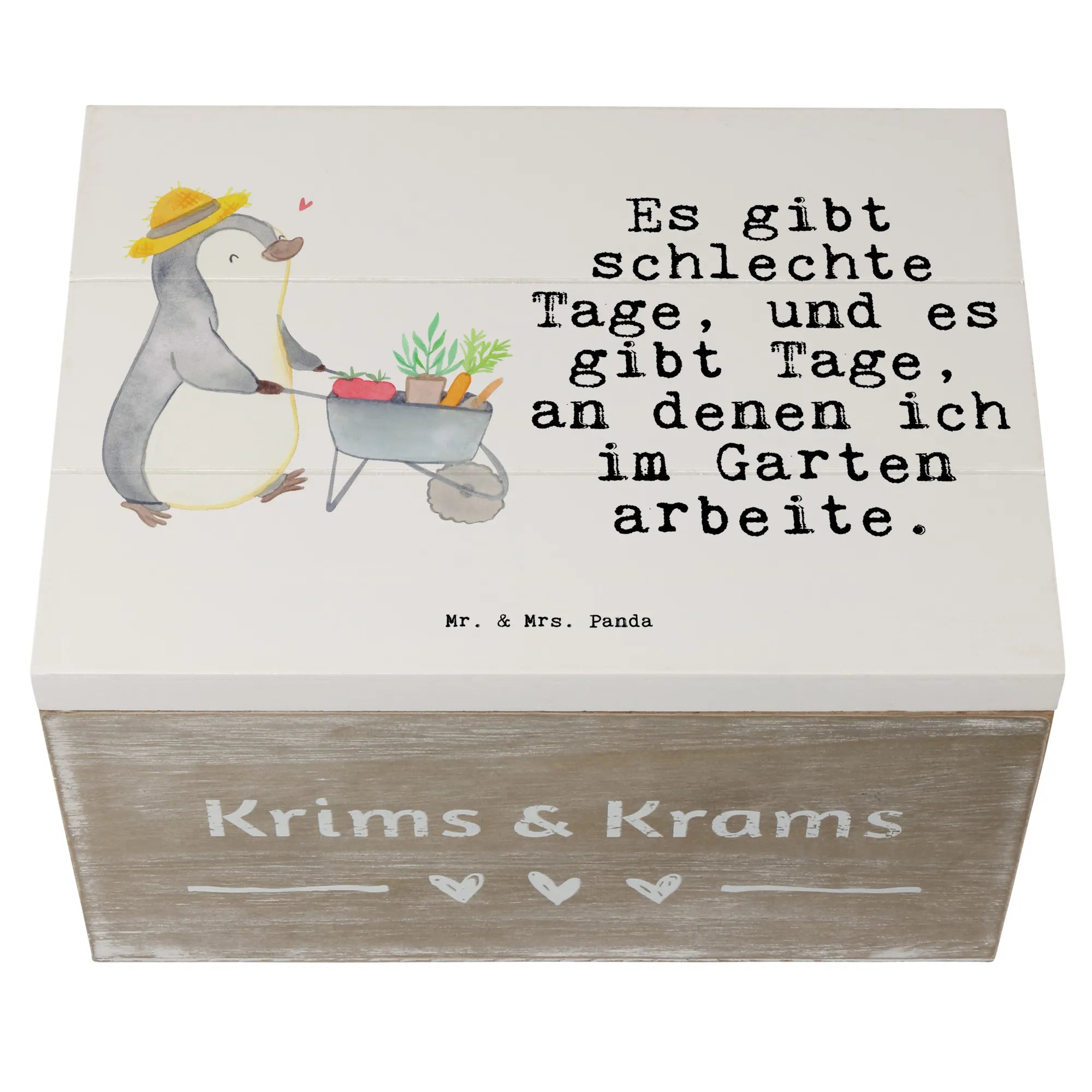Holzkiste „Pinguin Gartenarbeit Tage“ von Mr. & Mrs. Panda