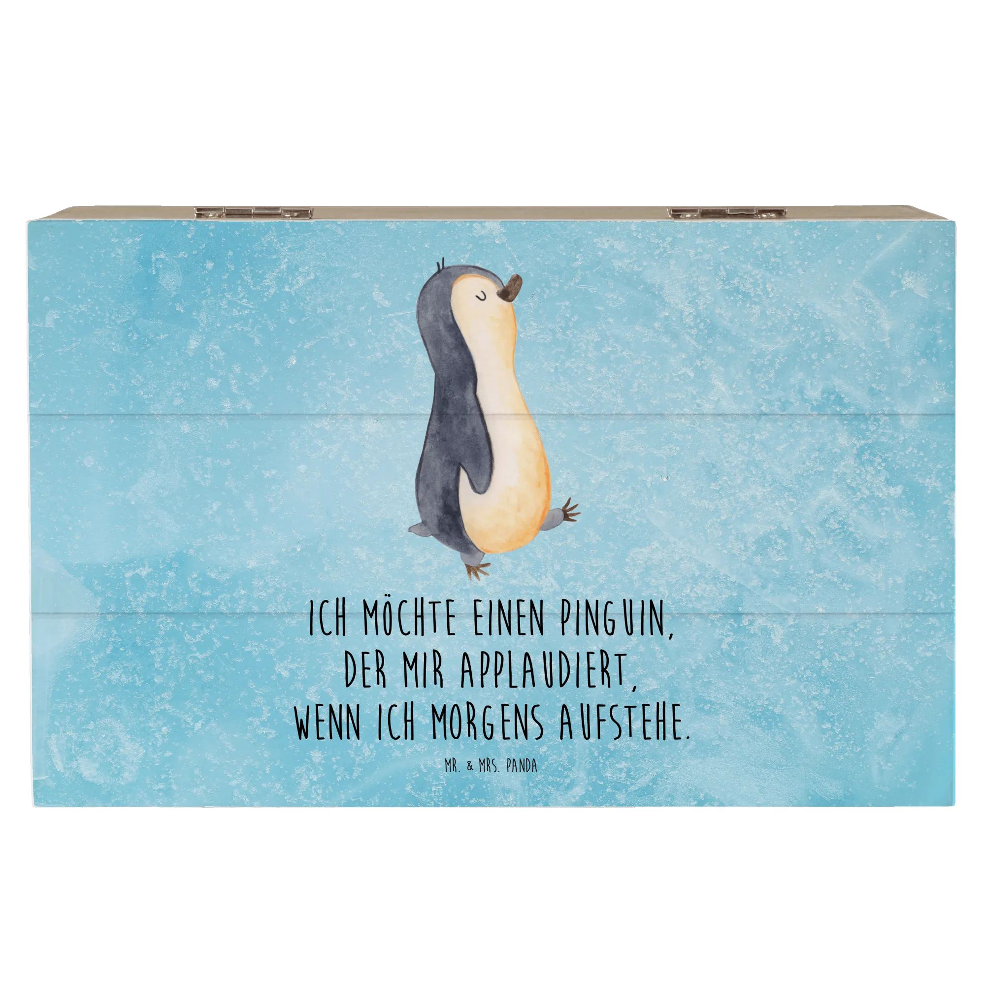 Mr. & Mrs. Panda Holzkiste „Pinguin marschierend“ – mehr als nur eine Aufbewahrungsbox. Der niedlich gezeichnete Pinguin mit dem herzlichen Spruch „Ich möchte einen Pinguin, der mir applaudiert, wenn ich morgens aufstehe.“ macht jede Erinnerung zu etwas Besonderem. Diese dekorative Holzbox ist perfekt als Erinnerungskiste, Geschenkbox oder Schatzkiste.