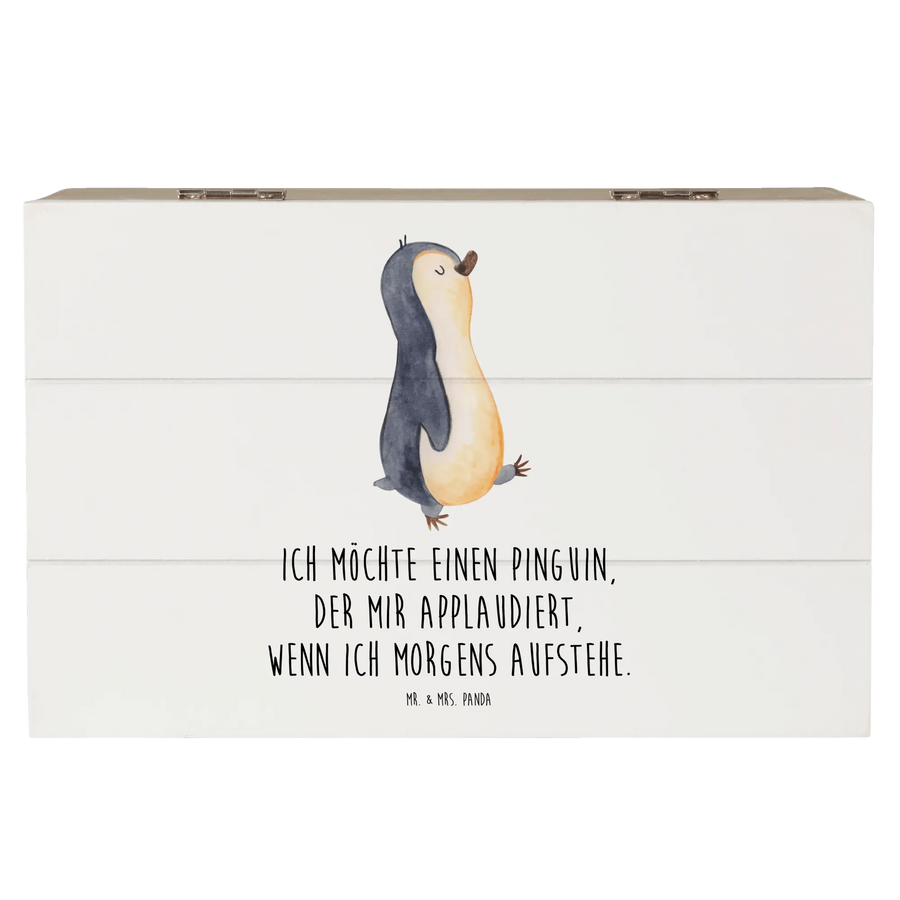 Mr. & Mrs. Panda Holzkiste „Pinguin marschierend“ – mehr als nur eine Aufbewahrungsbox. Der niedlich gezeichnete Pinguin mit dem herzlichen Spruch „Ich möchte einen Pinguin, der mir applaudiert, wenn ich morgens aufstehe.“ macht jede Erinnerung zu etwas Besonderem. Diese dekorative Holzbox ist perfekt als Erinnerungskiste, Geschenkbox oder Schatzkiste.