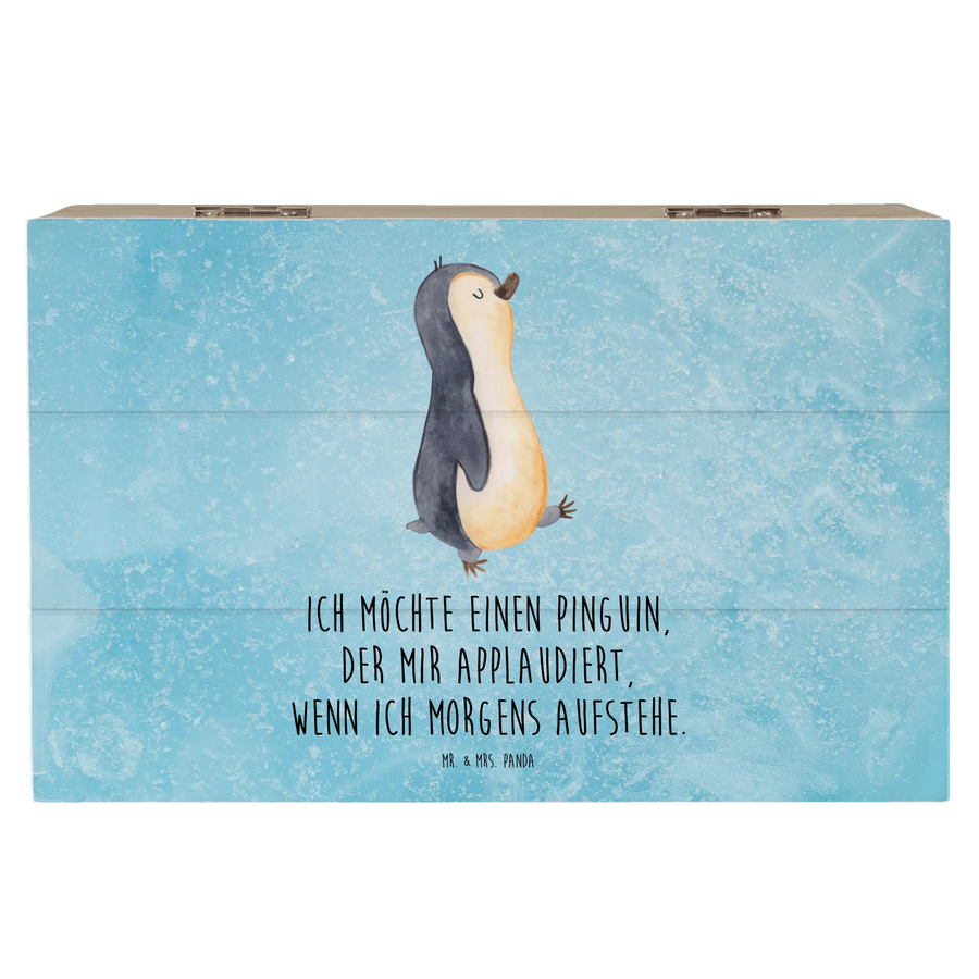Mr. & Mrs. Panda Holzkiste „Pinguin marschierend“ – mehr als nur eine Aufbewahrungsbox. Der niedlich gezeichnete Pinguin mit dem herzlichen Spruch „Ich möchte einen Pinguin, der mir applaudiert, wenn ich morgens aufstehe.“ macht jede Erinnerung zu etwas Besonderem. Diese dekorative Holzbox ist perfekt als Erinnerungskiste, Geschenkbox oder Schatzkiste.