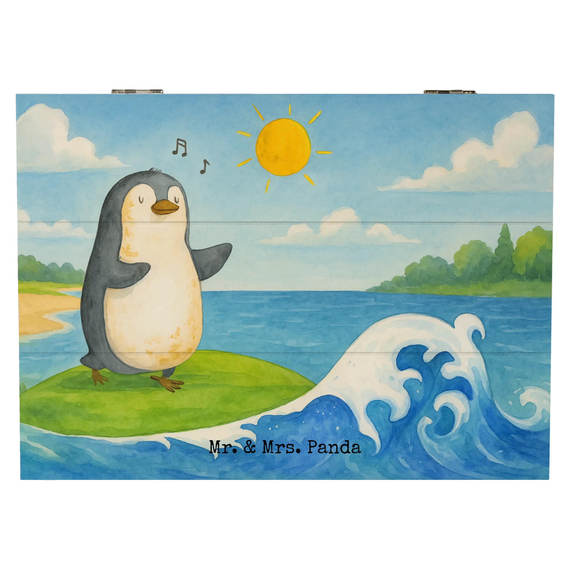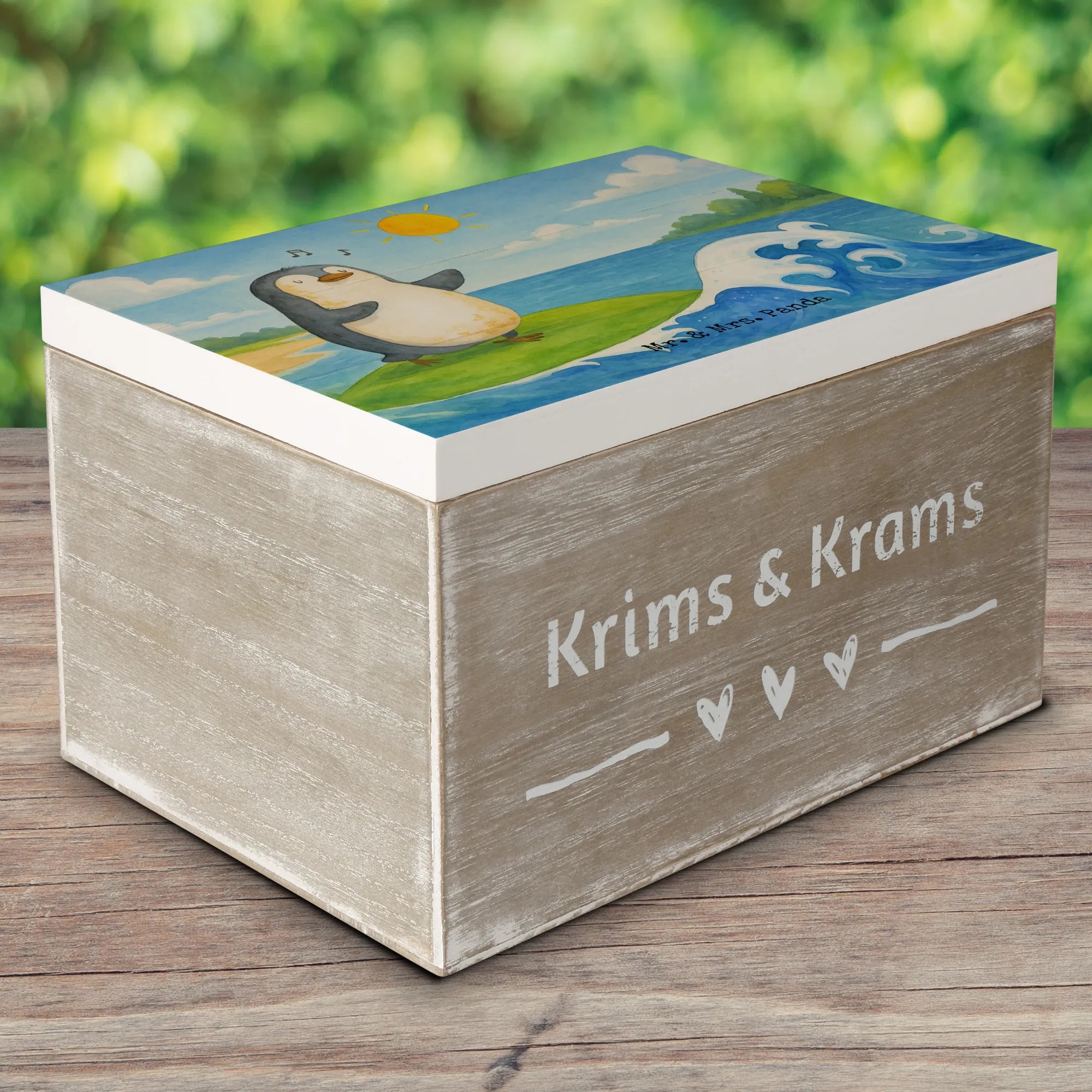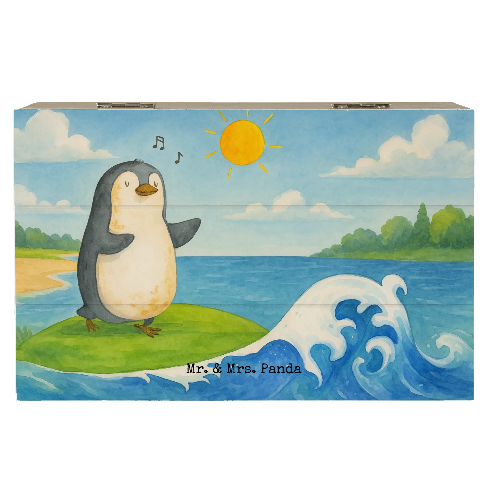Holzkiste Pinguin Surfer Design - 22 x 15 cm - mit Spruch
