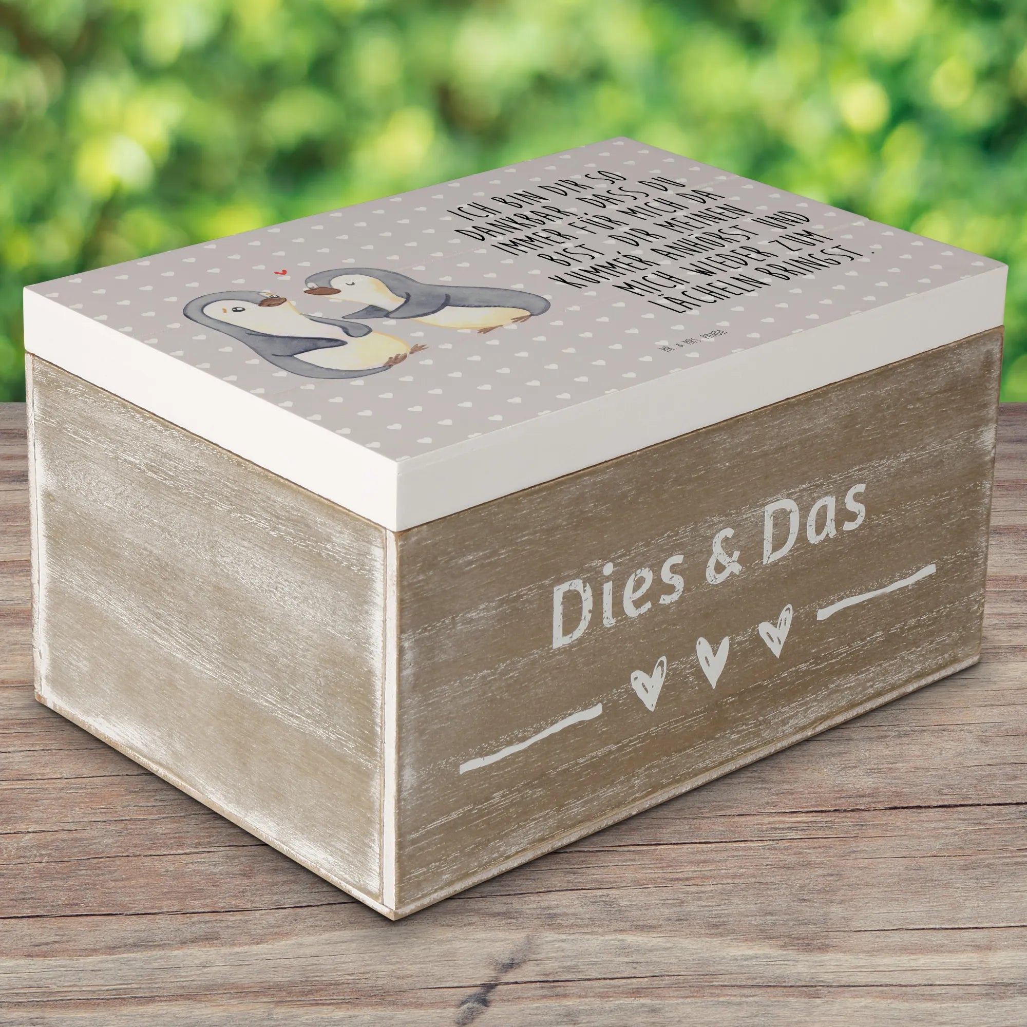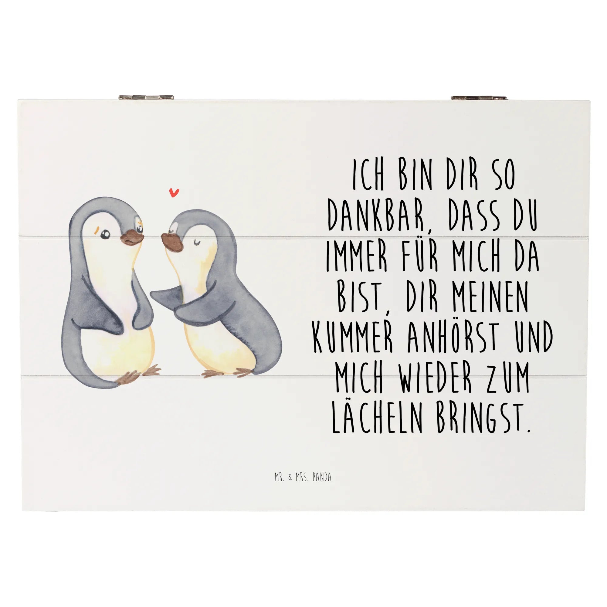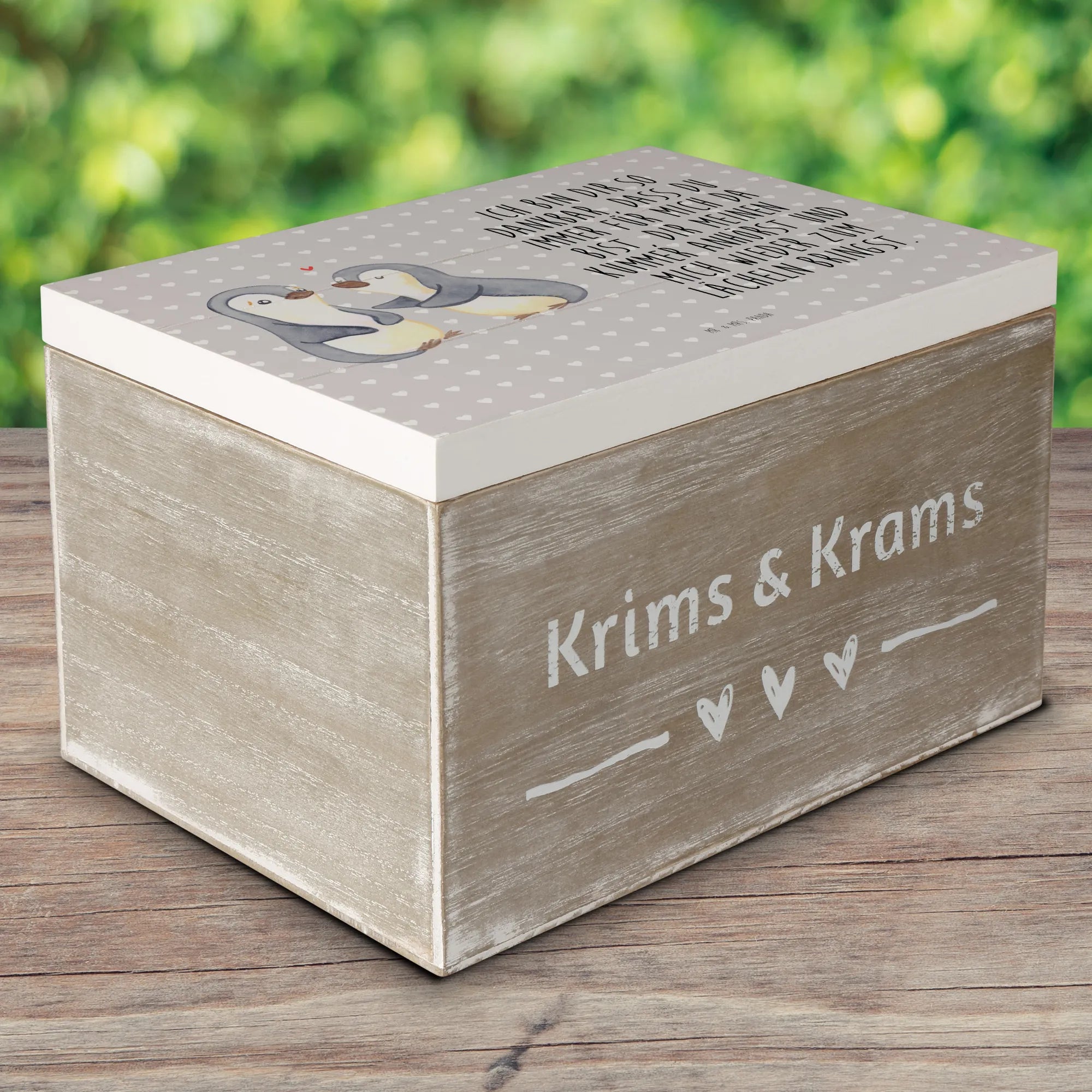 Die wunderschöne Holzkiste von Mr. & Mrs. Panda mit dem süßen Motiv 'Pinguine trösten' ist das perfekte Geschenk für all die lieben Menschen in deinem Leben. Egal ob zum Valentinstag, Hochzeitstag oder einfach als Liebesbeweis zwischendurch – diese Erinnerungskiste wird Herzen höher schlagen lassen!