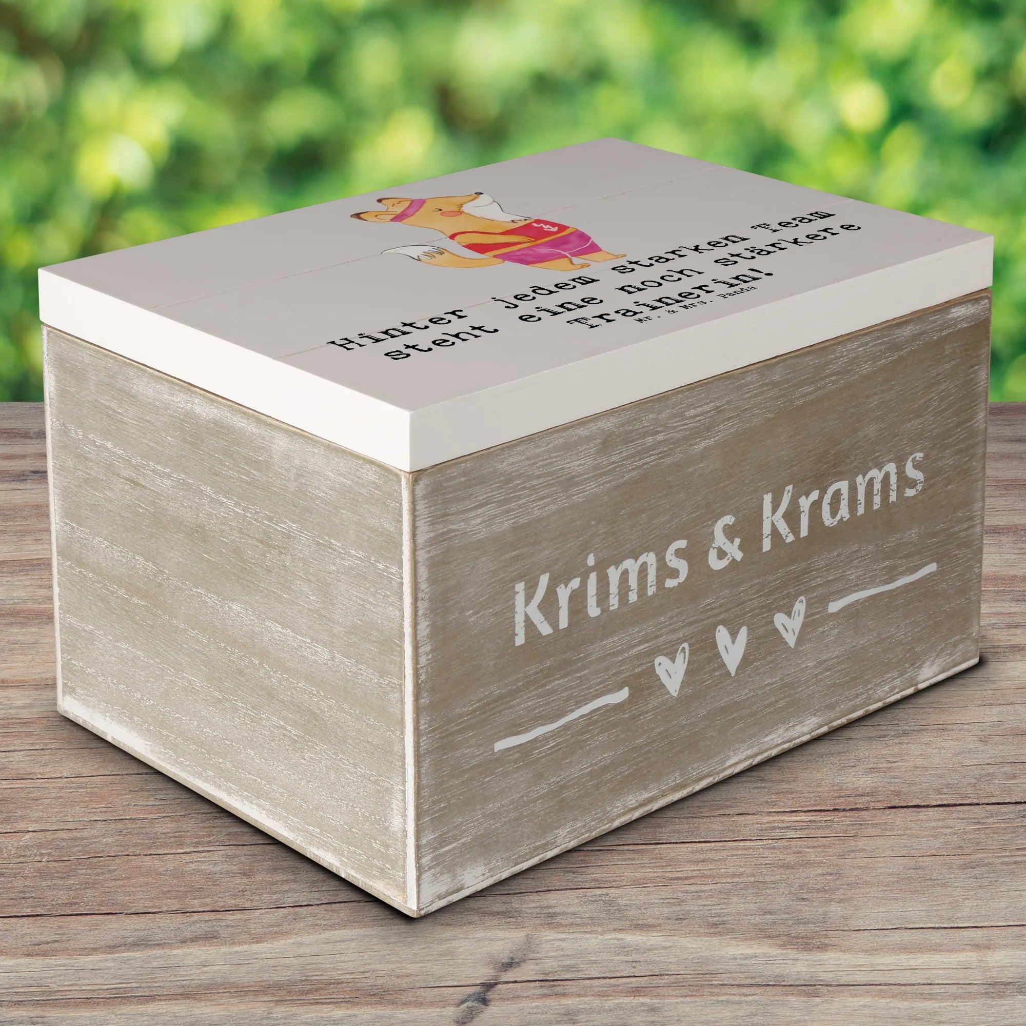 Starte heute noch, deine Trainerin zu überraschen und mit diesem besonderen Geschenk ein Lächeln ins Gesicht zu zaubern! Die Holzkiste ist nicht nur praktisch, sondern auch ein echter Hingucker und passt perfekt in jedes Zuhause. Mit der Mr. & Mrs. Panda Kollektion schenkst du nicht nur ein Produkt, sondern auch Liebe und Anerkennung.