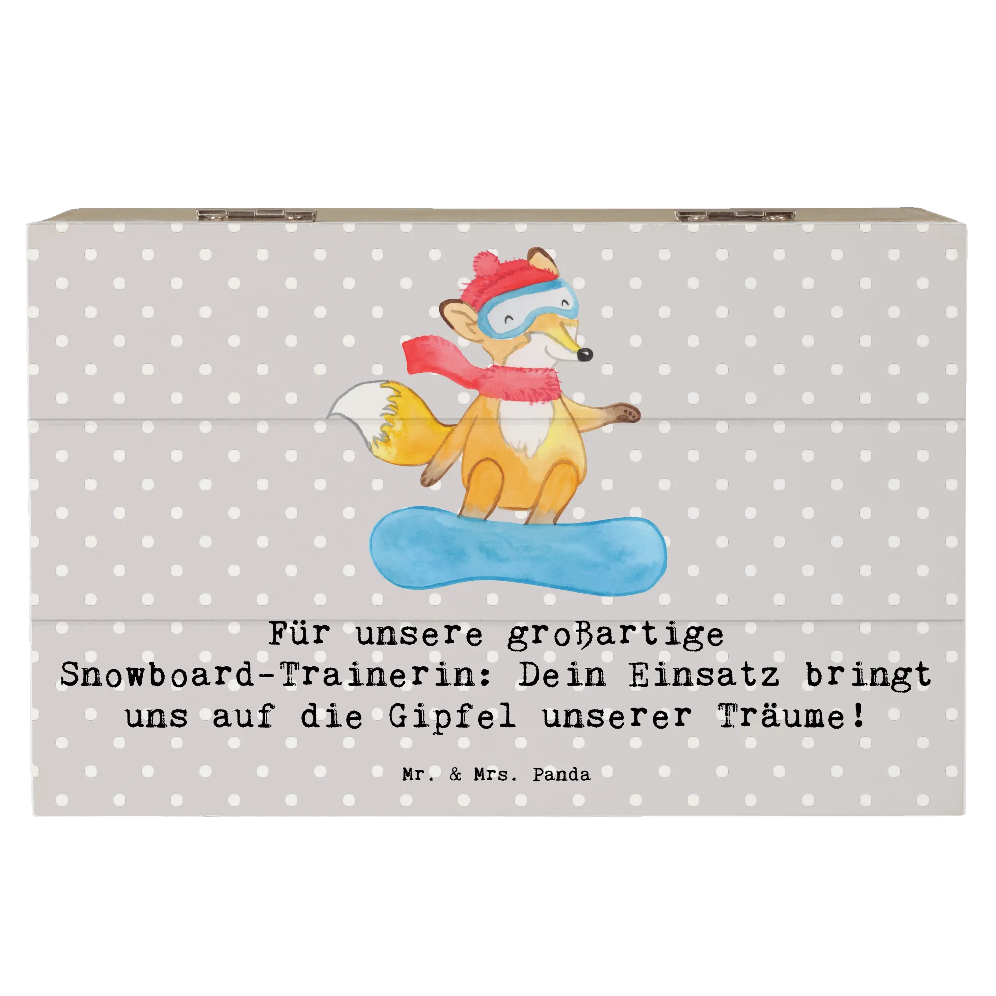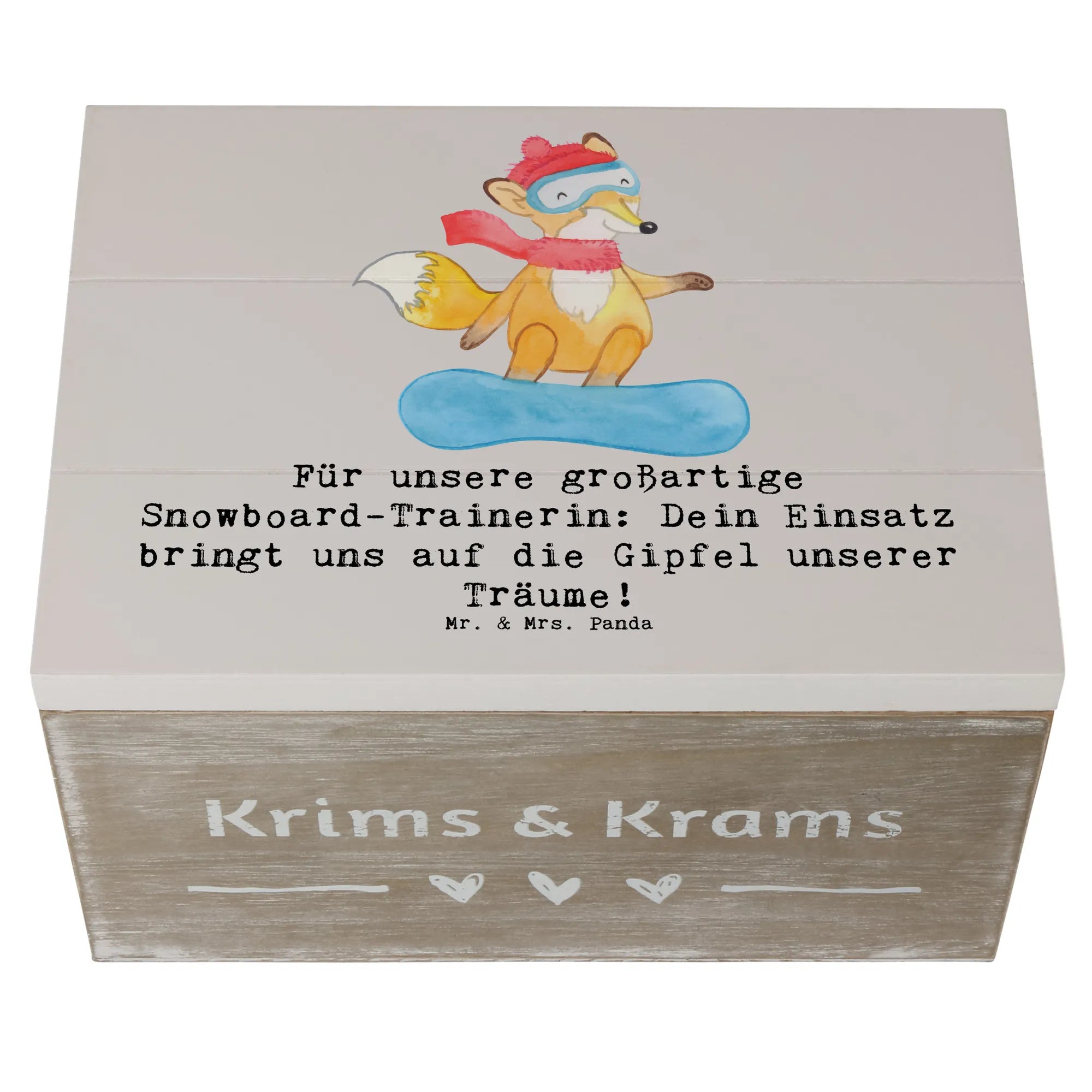 Suchst du das perfekte Geschenk für deine Snowboard-Trainerin? Dann ist unsere traumhaft schöne Holzkiste von Mr. & Mrs. Panda genau das Richtige! Diese entzückende Kiste ist nicht nur ein stylischer Aufbewahrungsort, sondern gehört auch zu unserer besonderen Kollektion "Sportarten Trainerin" und ist liebevoll mit dem Spruch "Für unsere großartige Snowboard-Trainerin: Dein Einsatz bringt uns auf die Gipfel unserer Träume!" gestaltet.